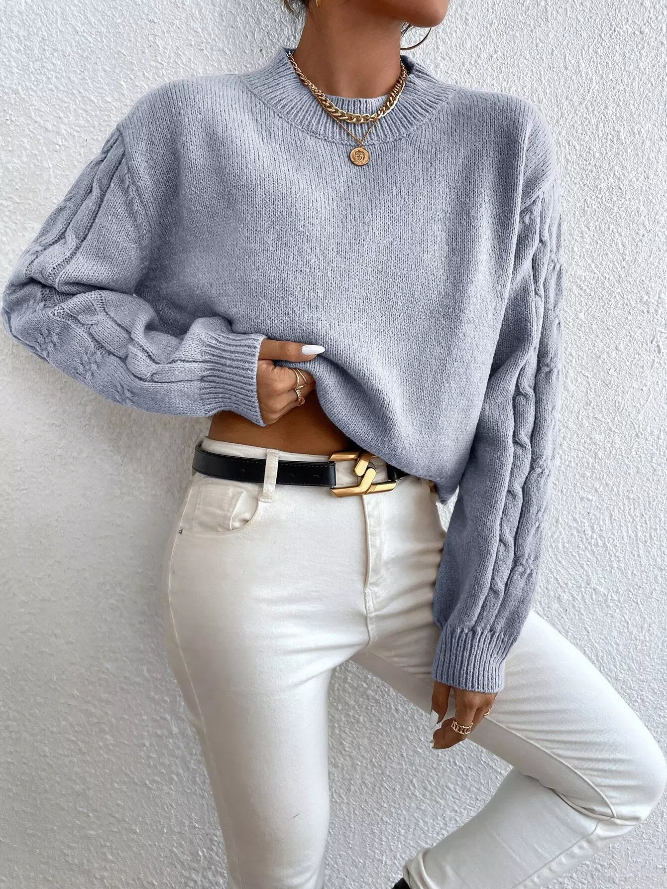 سترة سادة منسدلة الكتفين متماسكة بكابل محبوكة