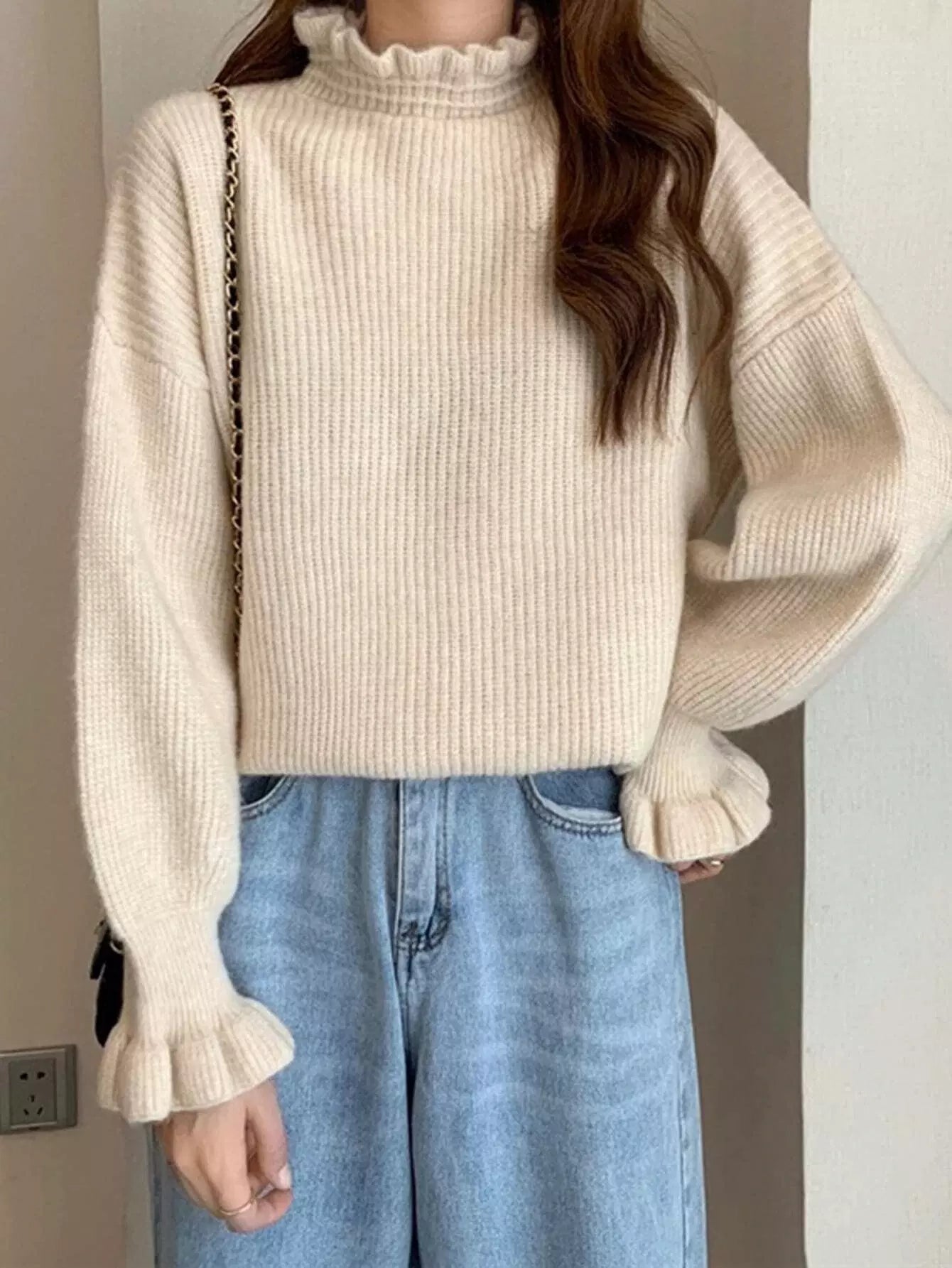 سترة ذات أكتاف منسدلة وحواف كشكش سادة