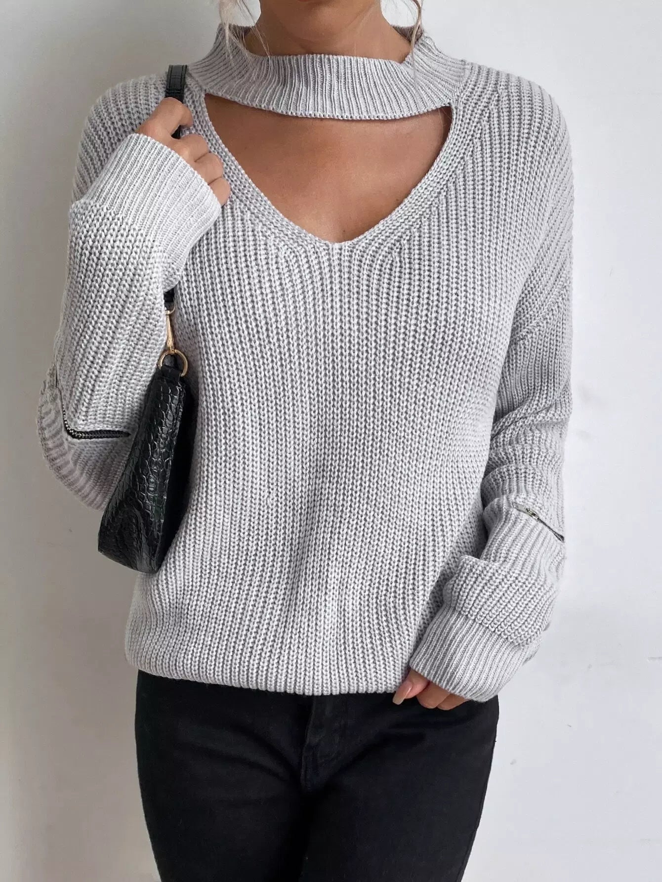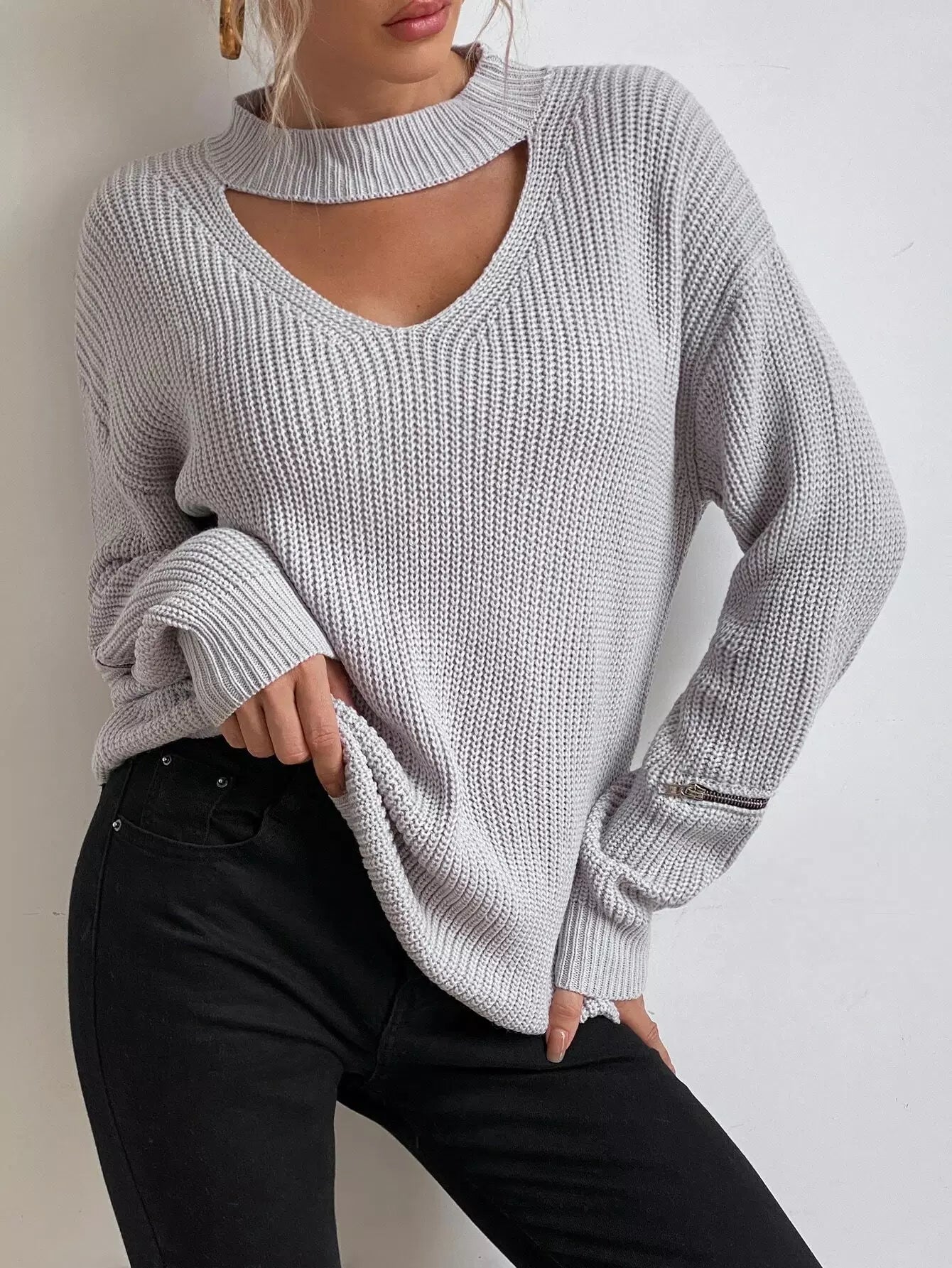 سترة سادة بفتحة رقبة على شكل ثقب المفتاح وأكتاف منسدلة