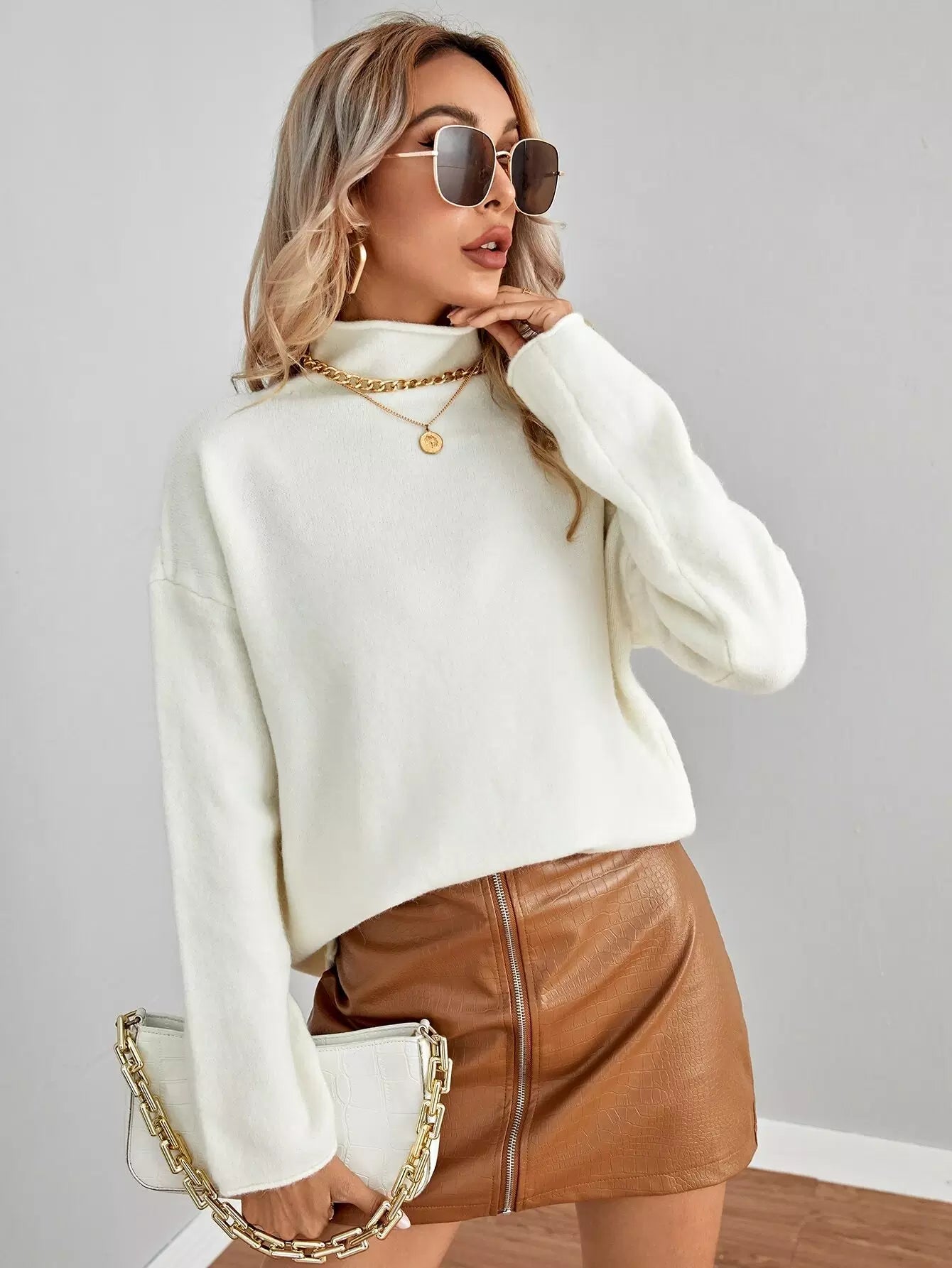 سترة سادة برقبة سادة برقبة منسدلة الكتفين