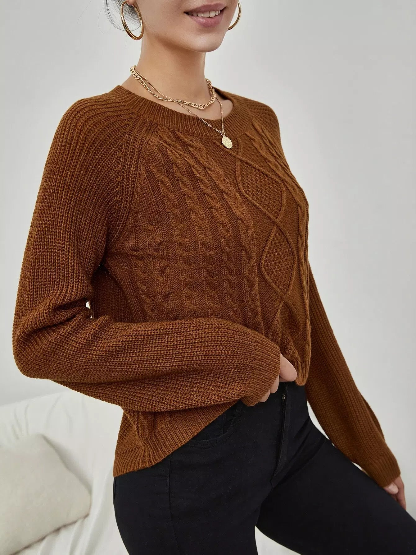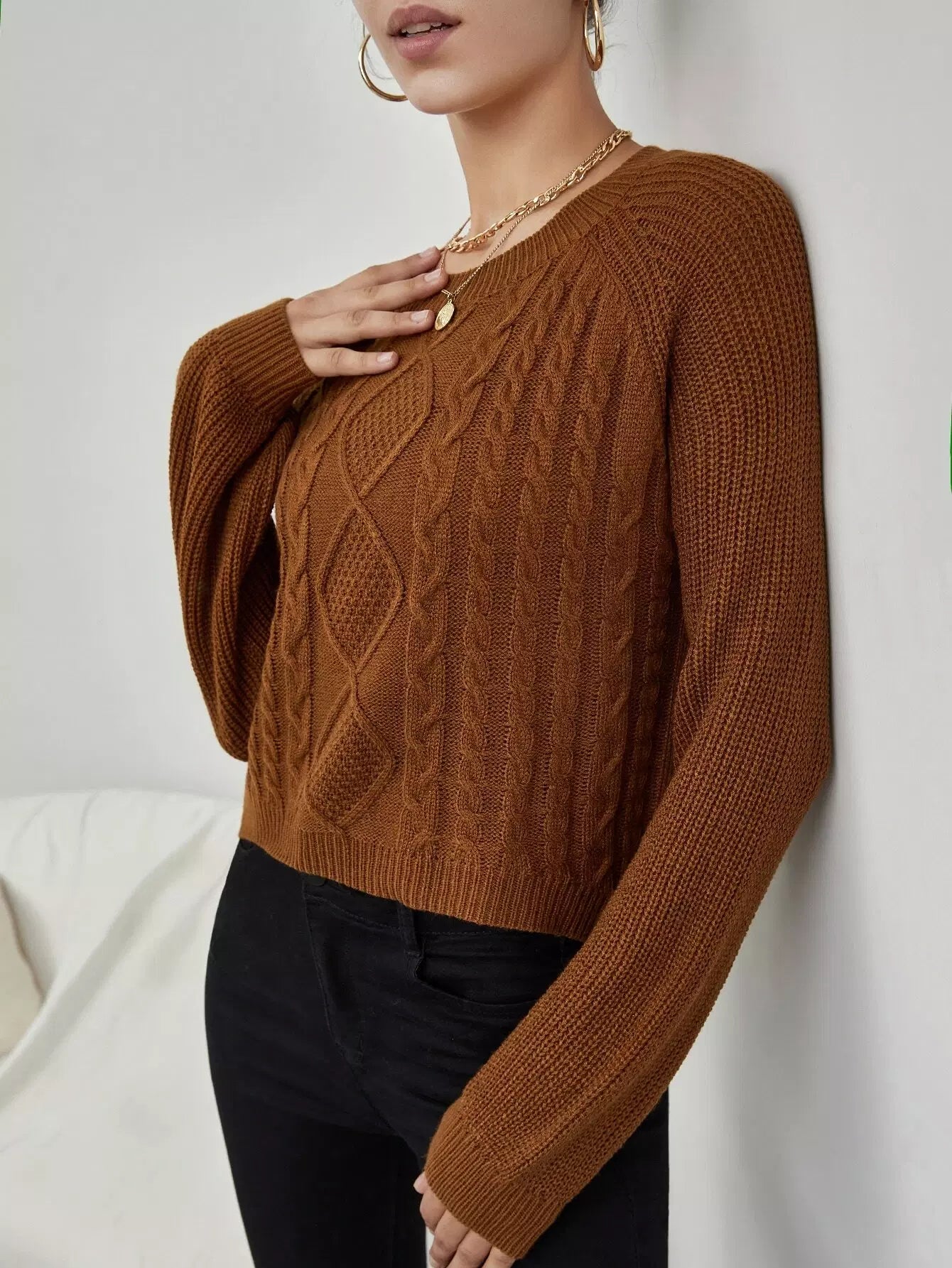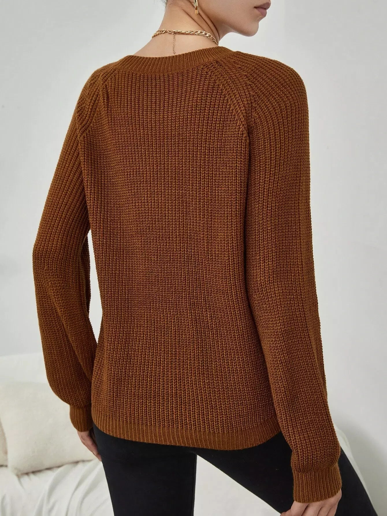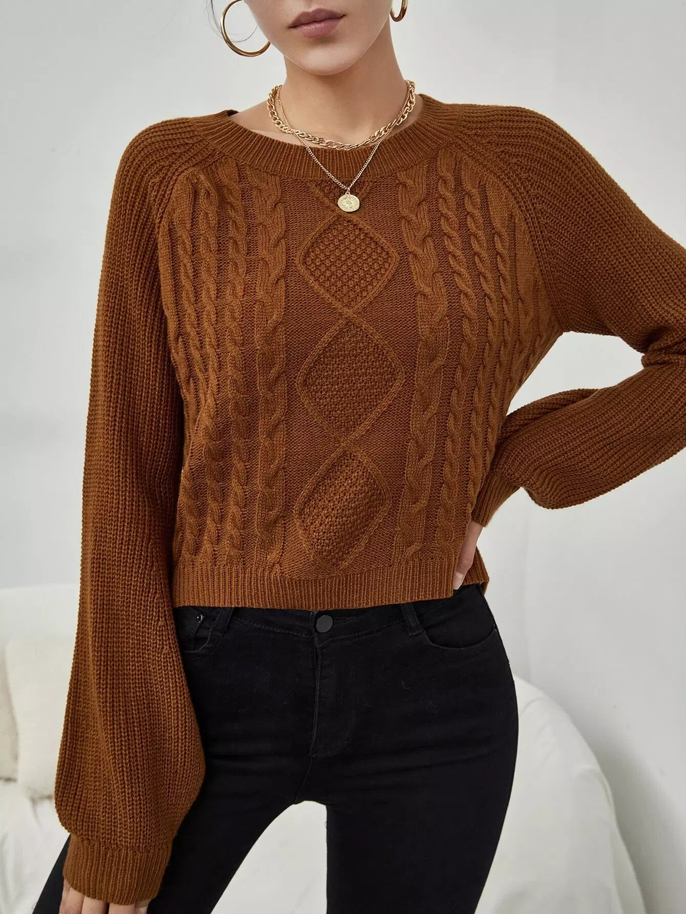 كنزة بأكمام راجلان سادة بأكمام كبلية محبوكة
