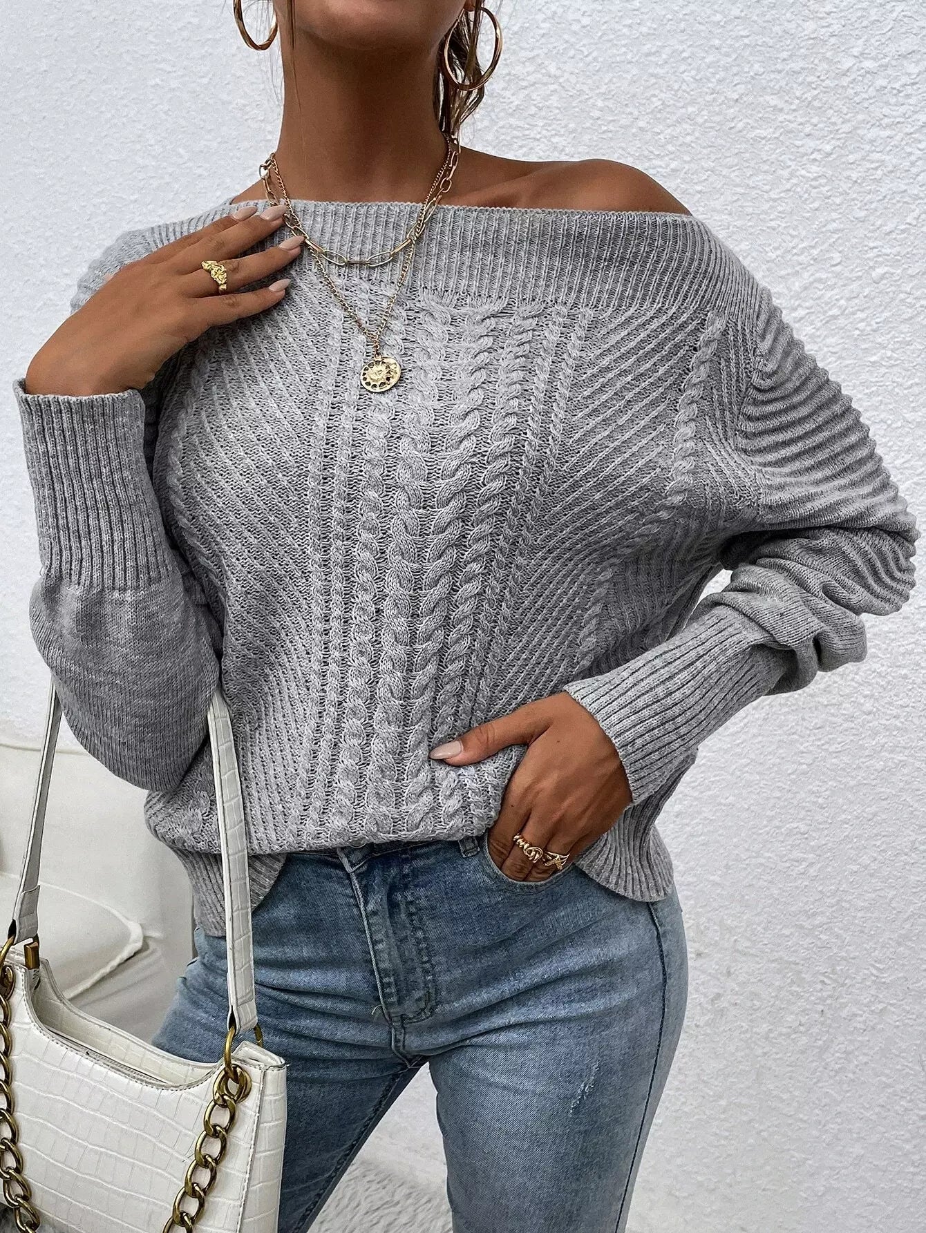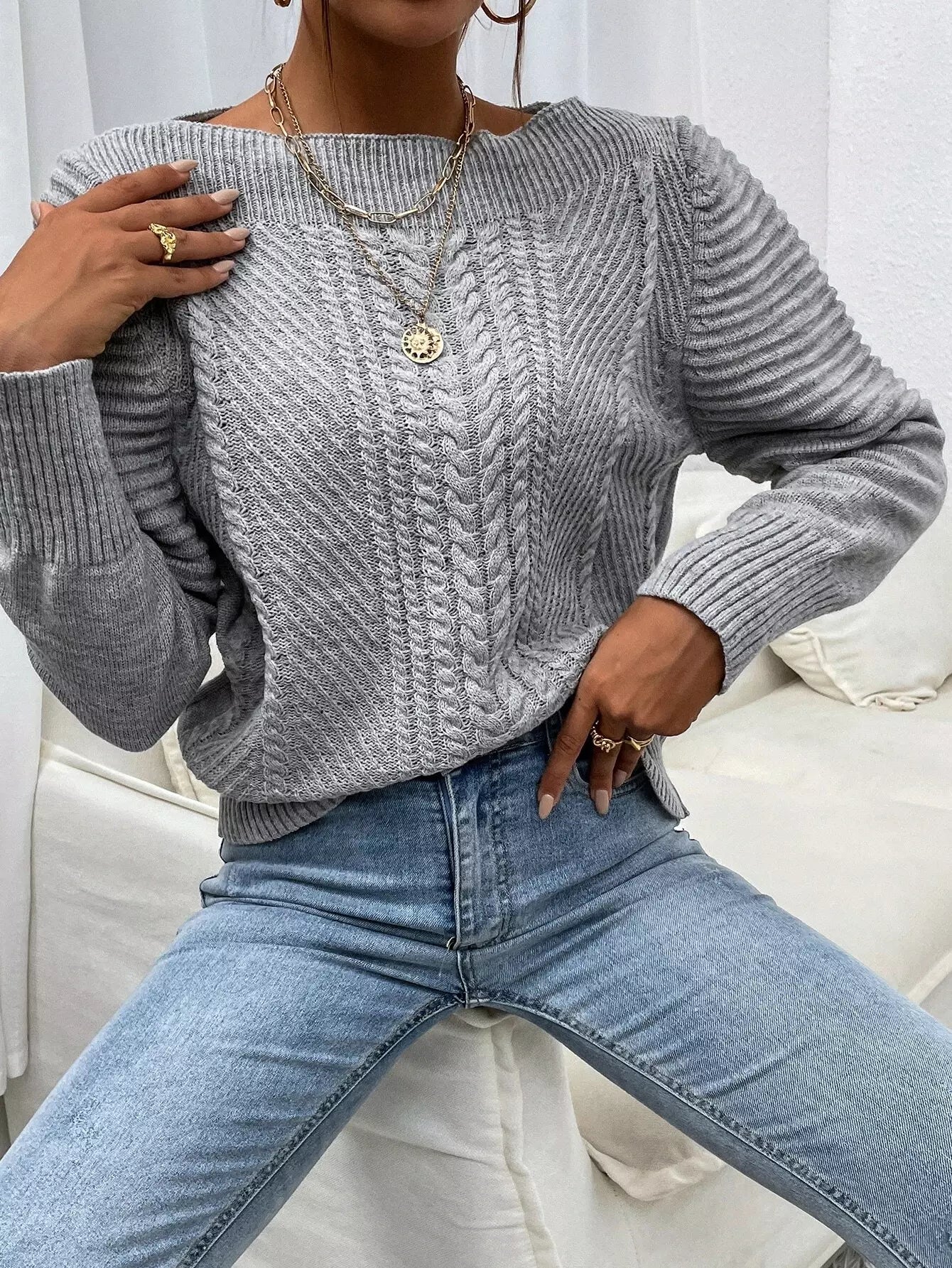 كنزة صلبة مضلعة ومحبوكة بكابل
