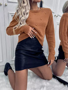 كنزة صوفية سادة مضلعة متماسكة مضلعة