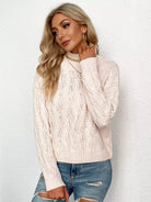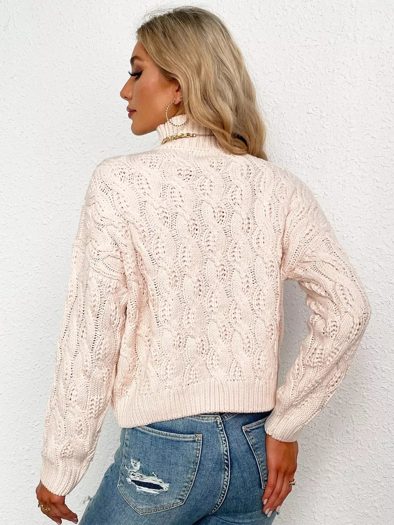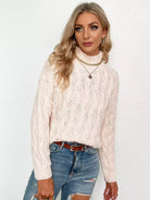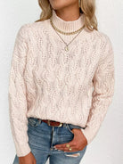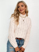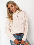 سترة سادة برقبة سادة برقبة منسدلة الكتفين محبوكة بكابل محبوكة