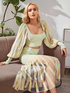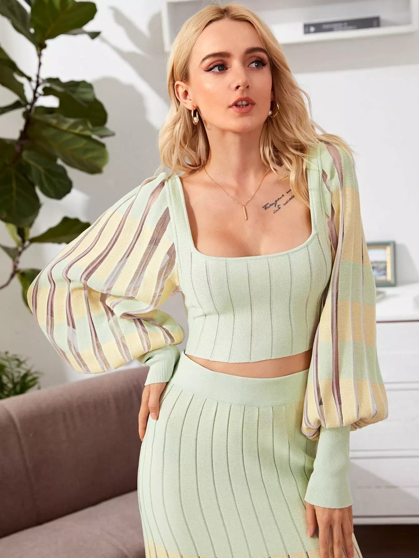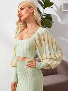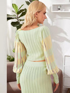 للنساء - سترة قصيرة برقبة مربعة وأكمام واسعة