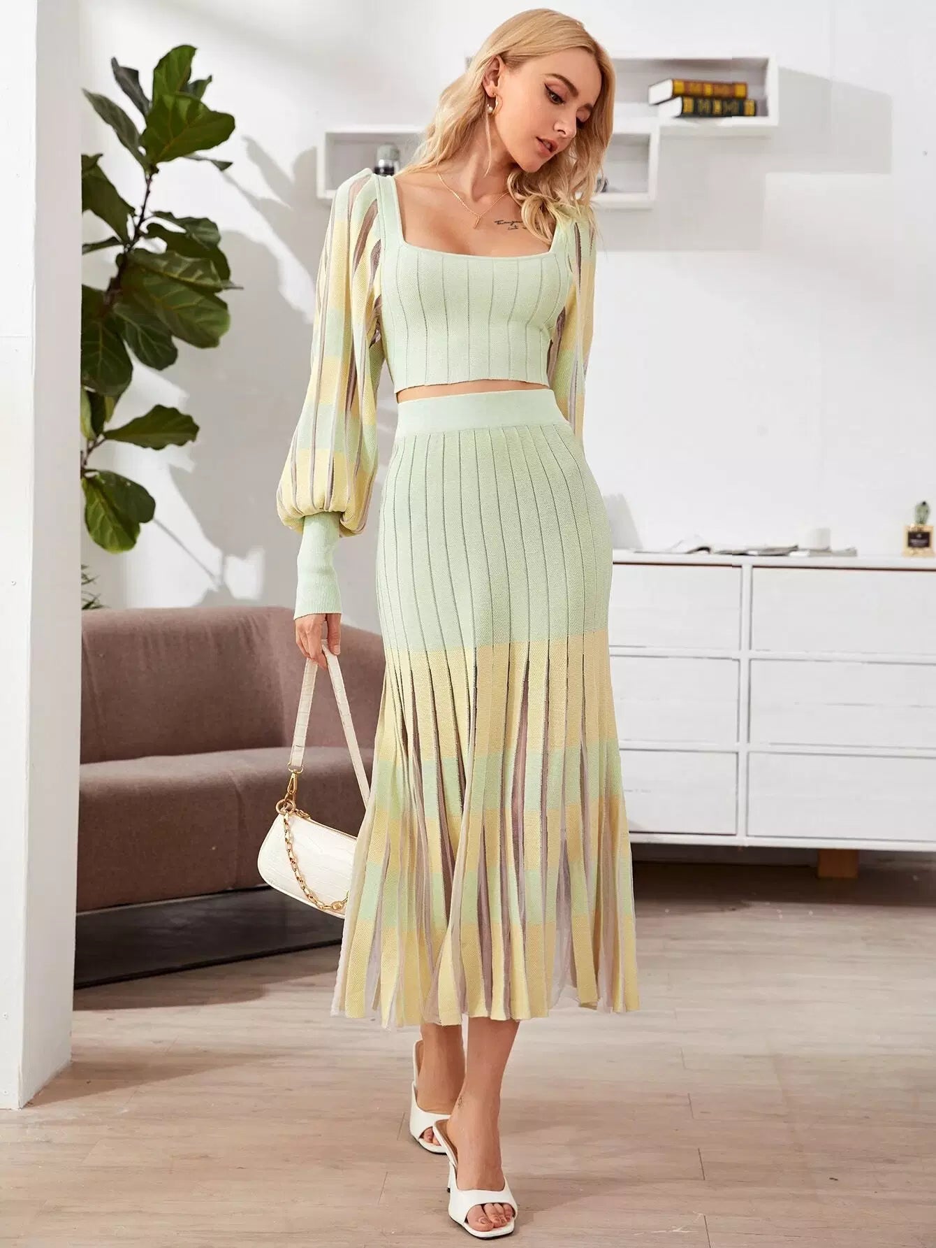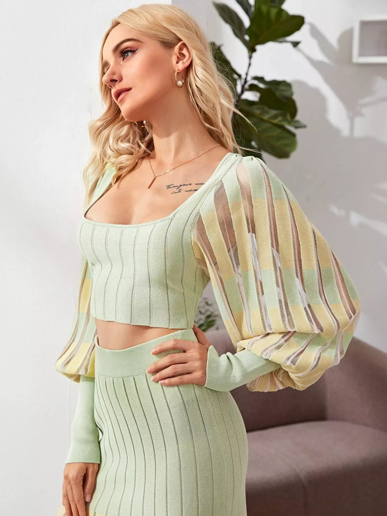 كنزة بأكمام مربعة برقبة مربعة بفتحة أكمام مربعة