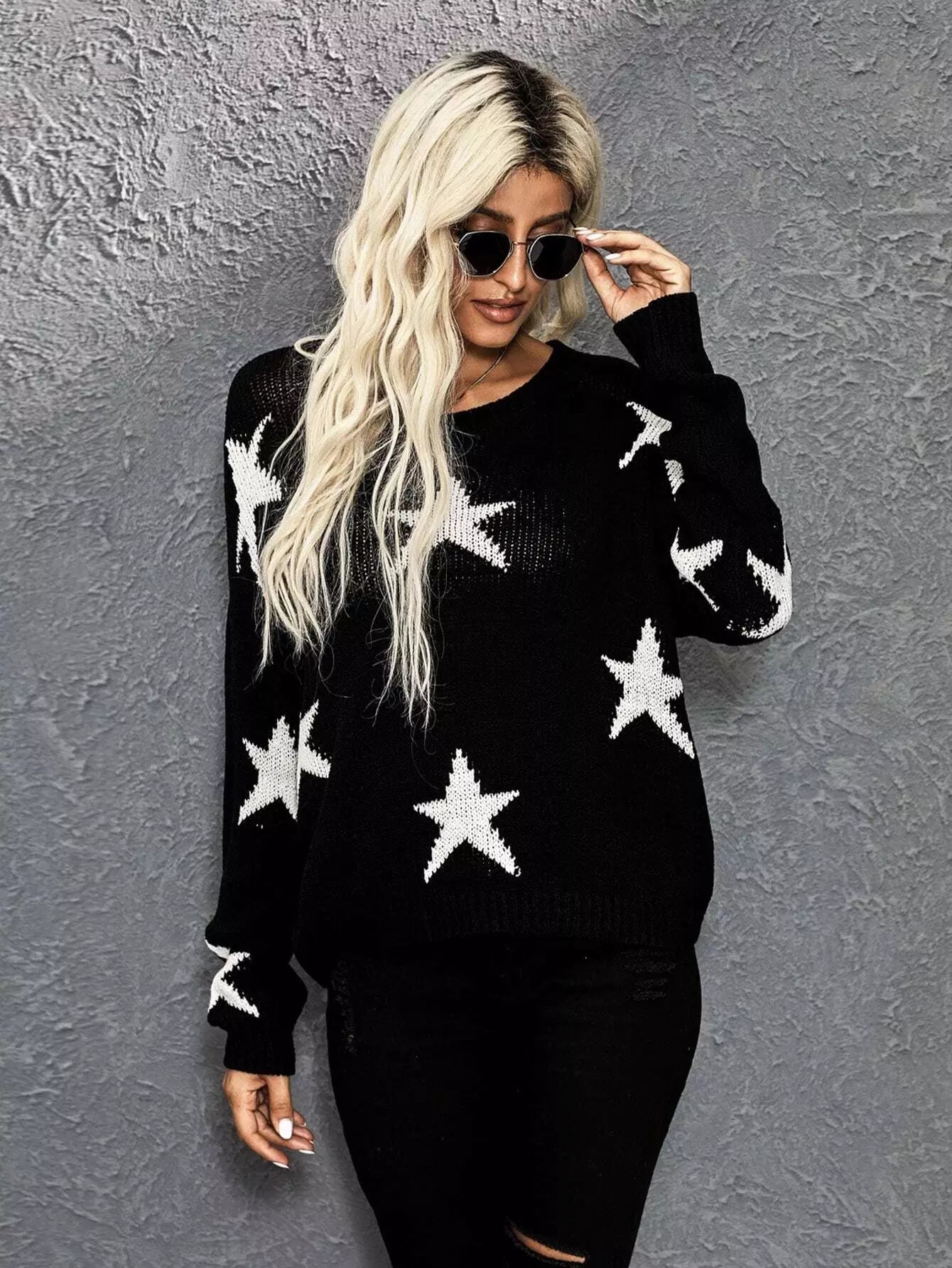 سترة منسدلة على الكتف بنقشة نجمة