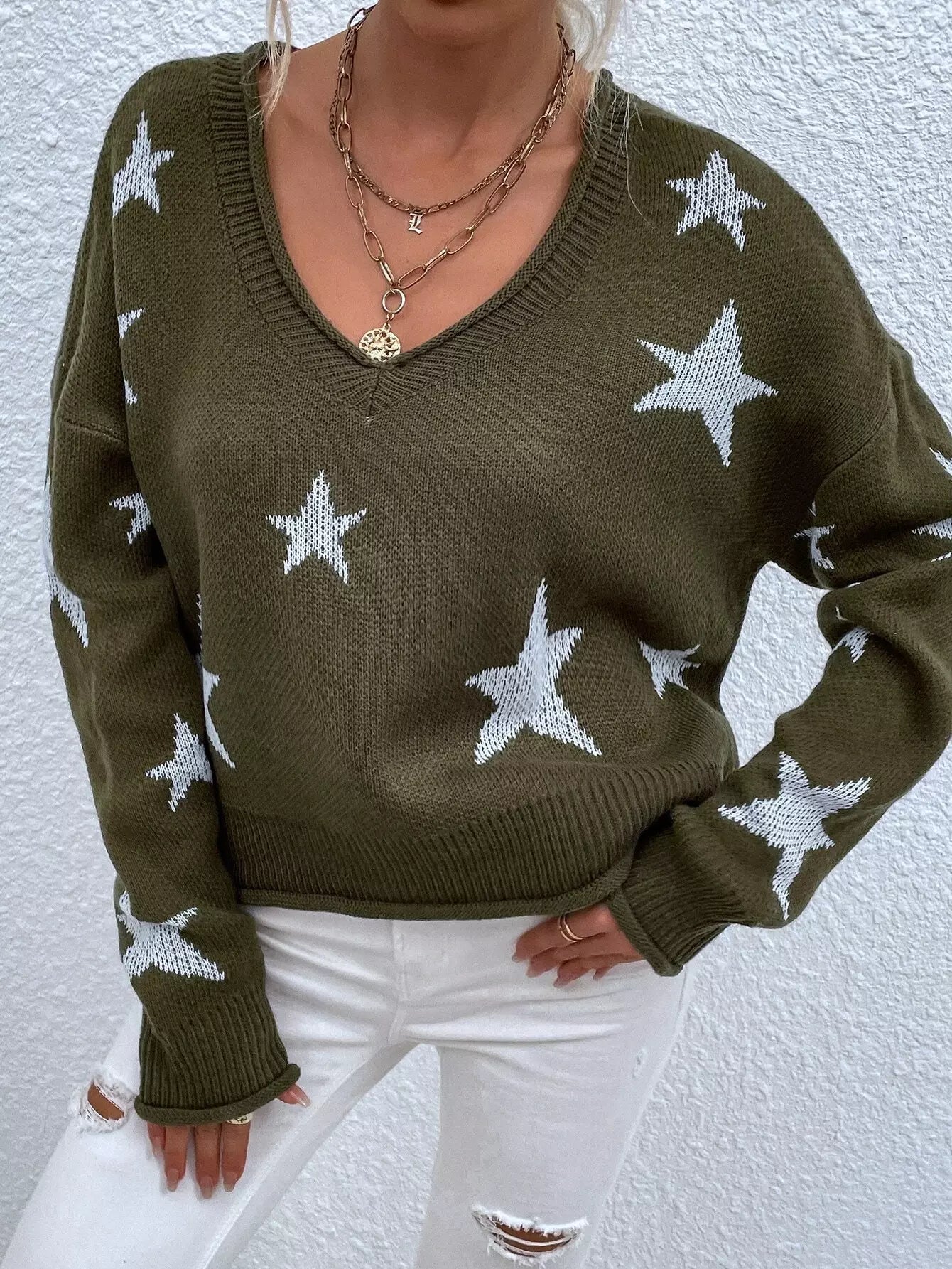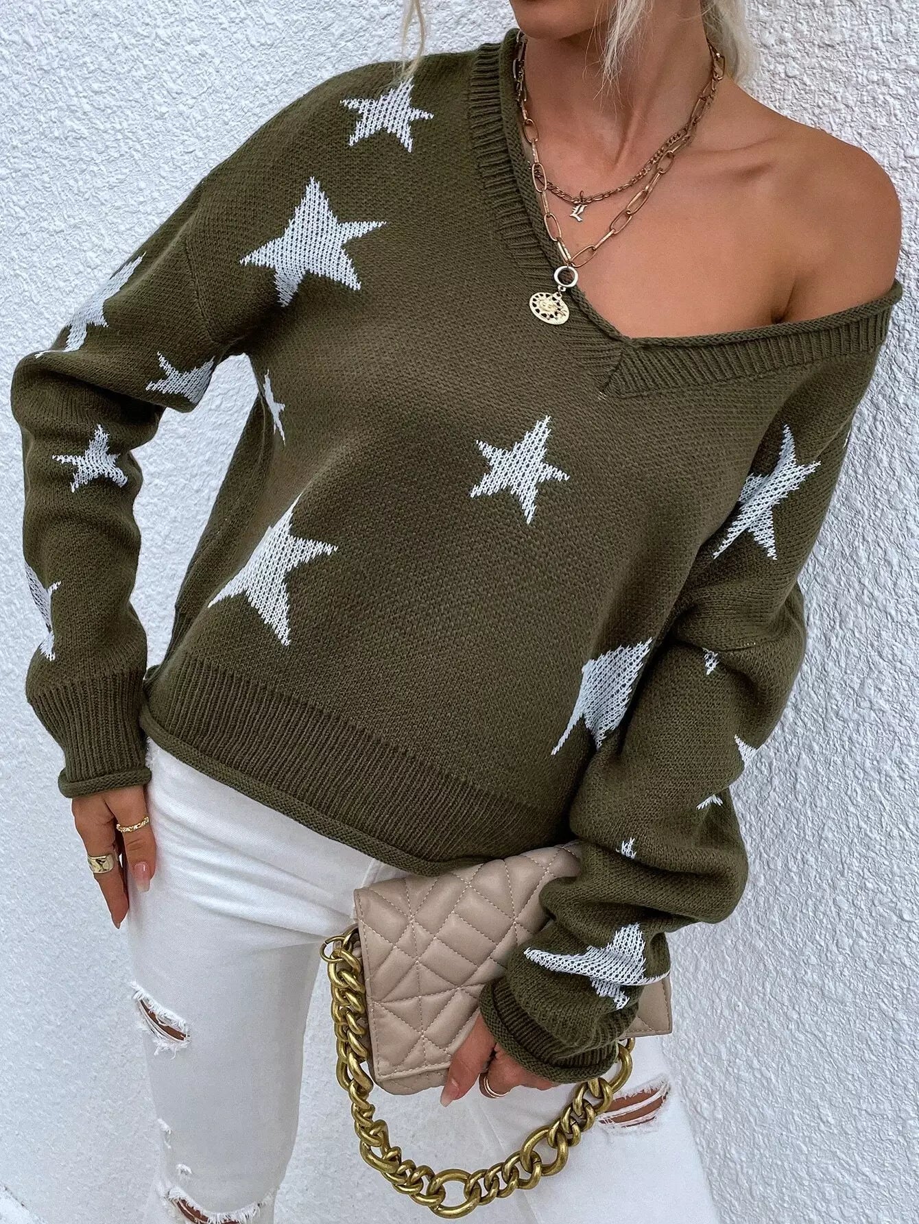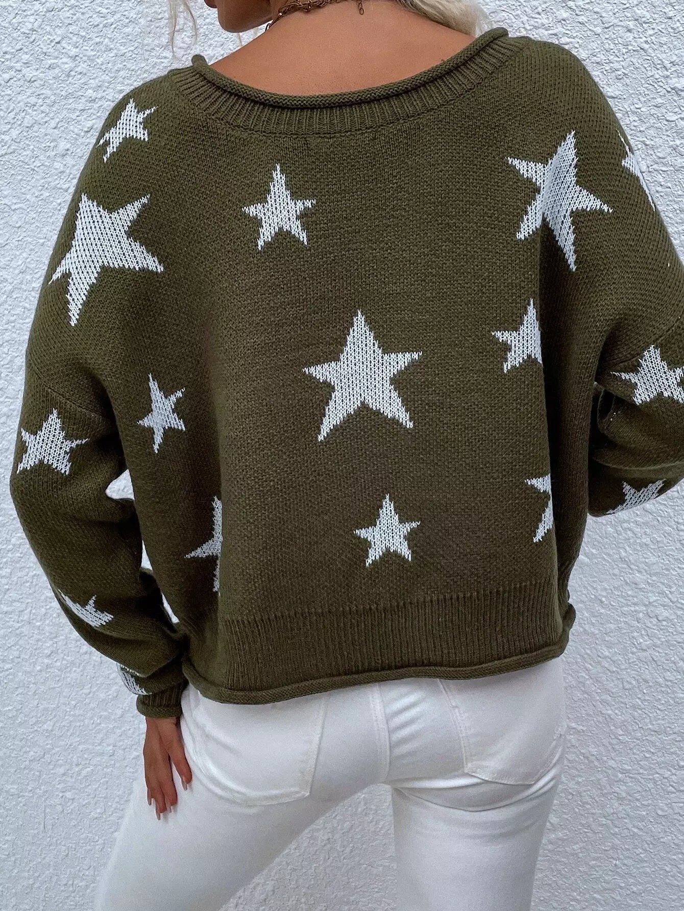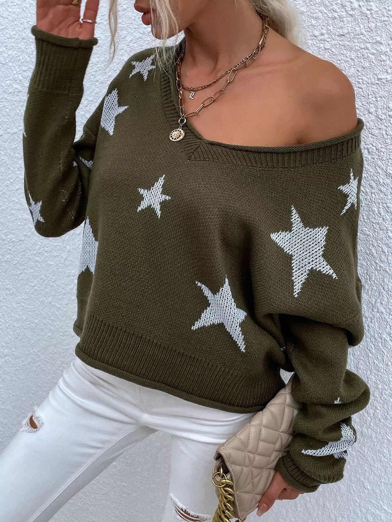 للنساء - سترة بكتف منسدل بنمط نجمة