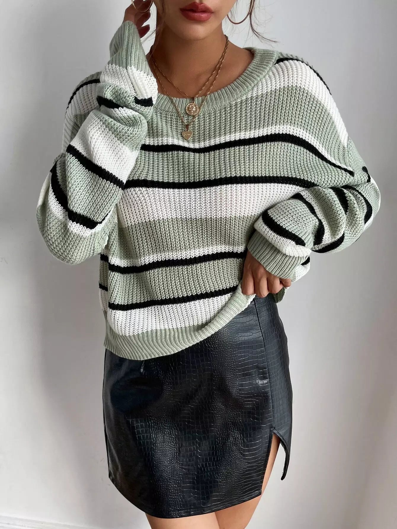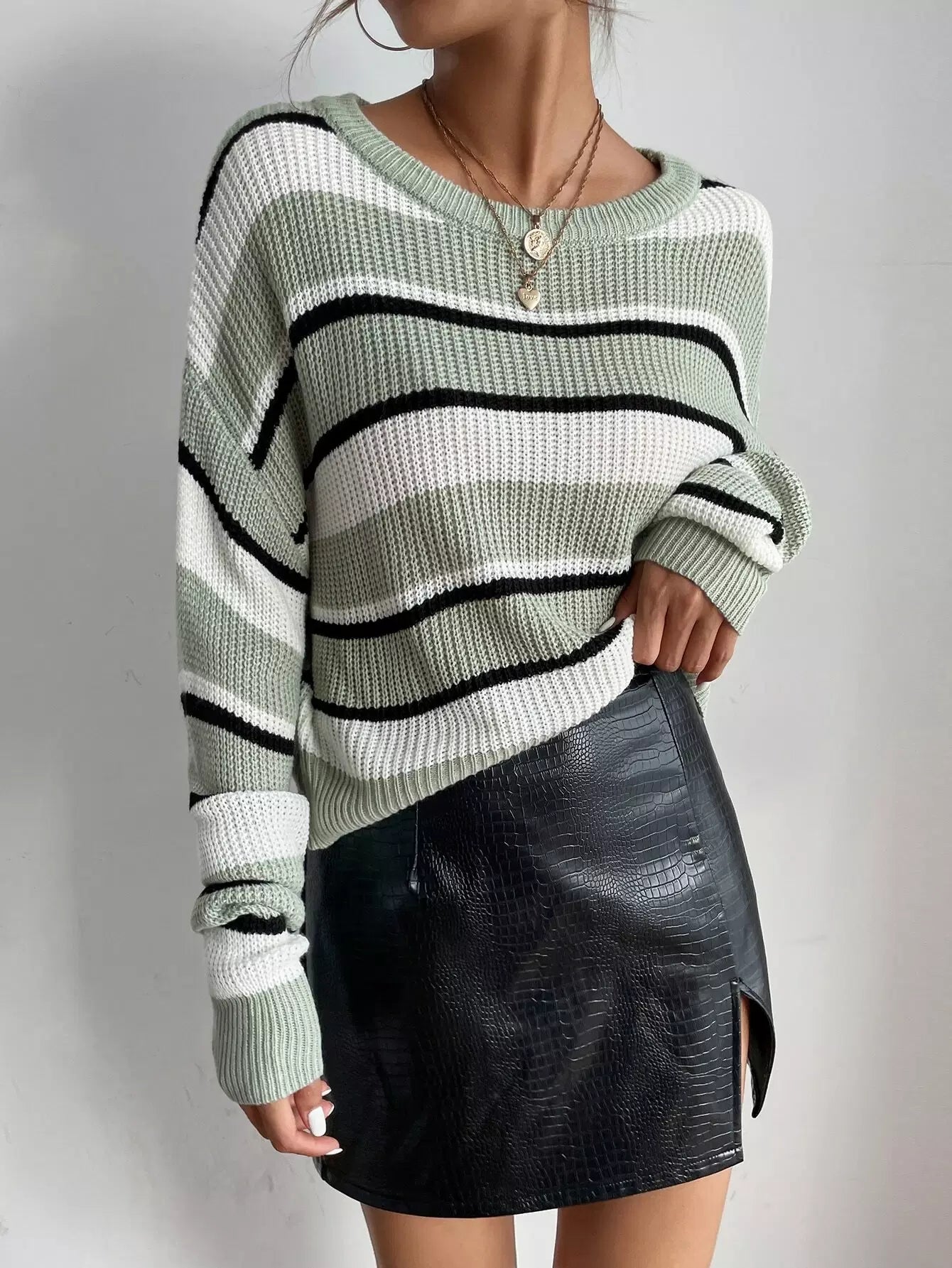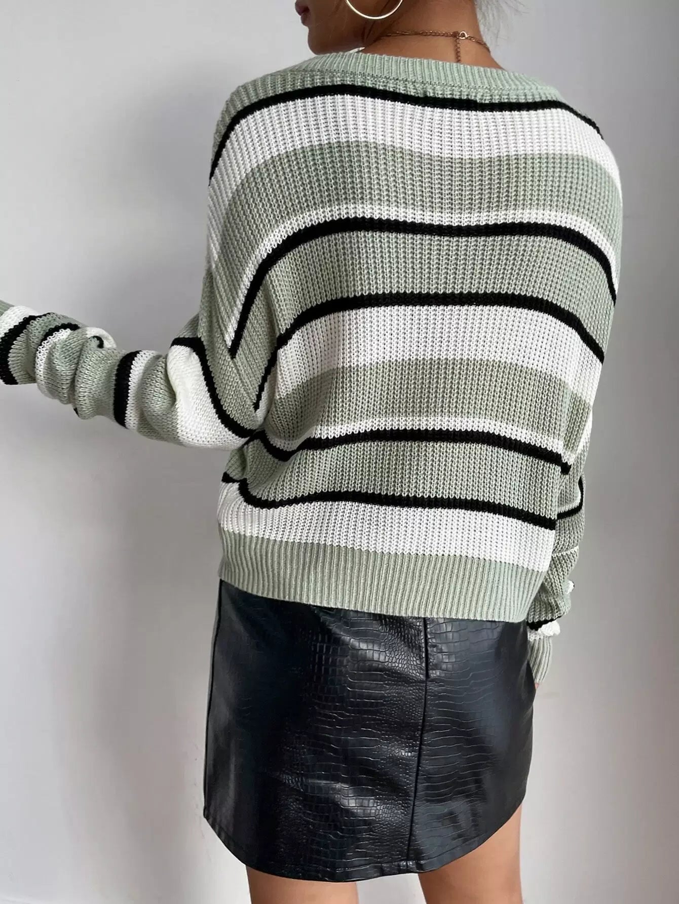 سترة منسدلة الكتف مخططة بنقشة منسدلة