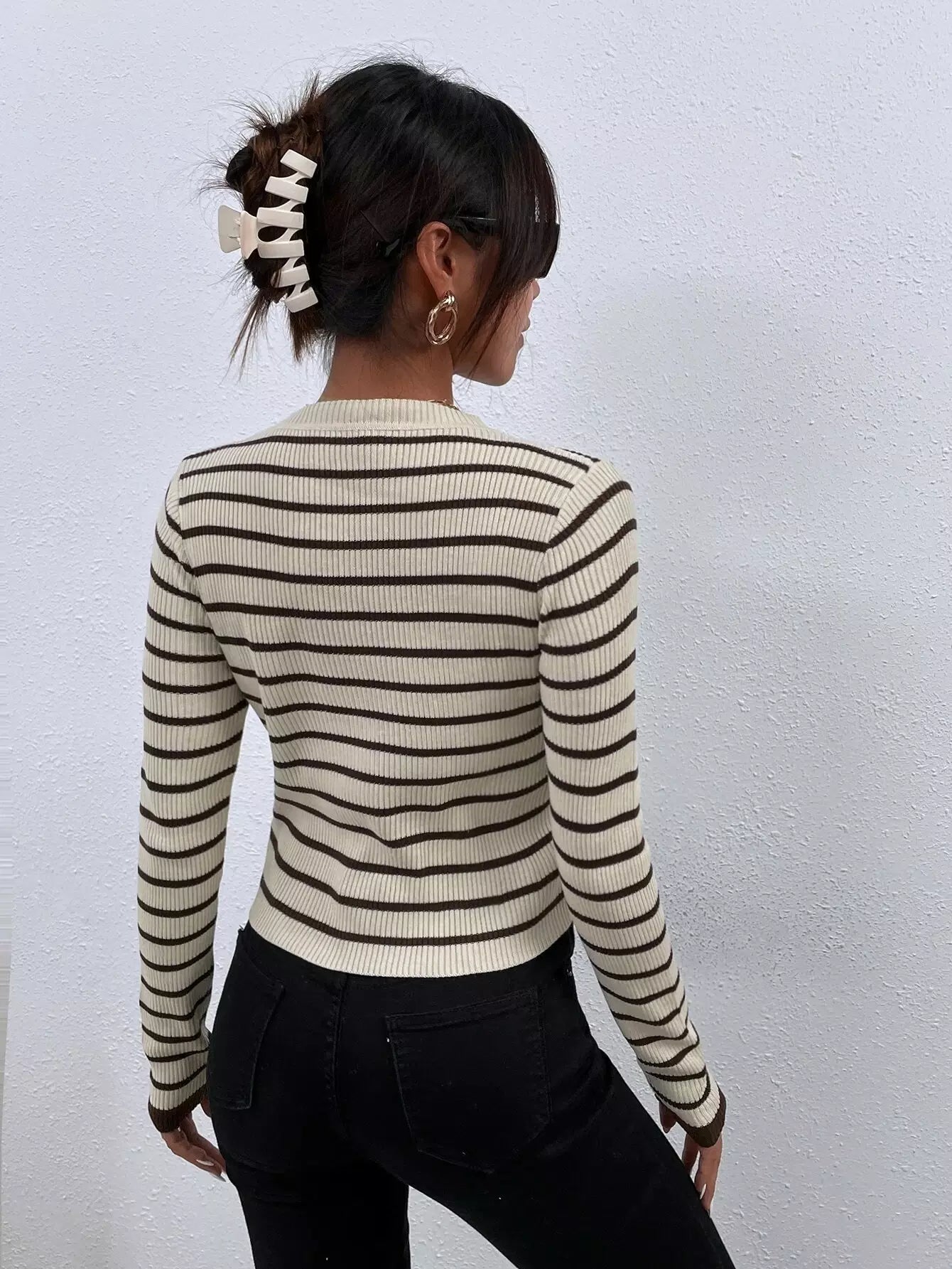 سترة مخططة بنقشة مضلعة مضلعة محبوكة