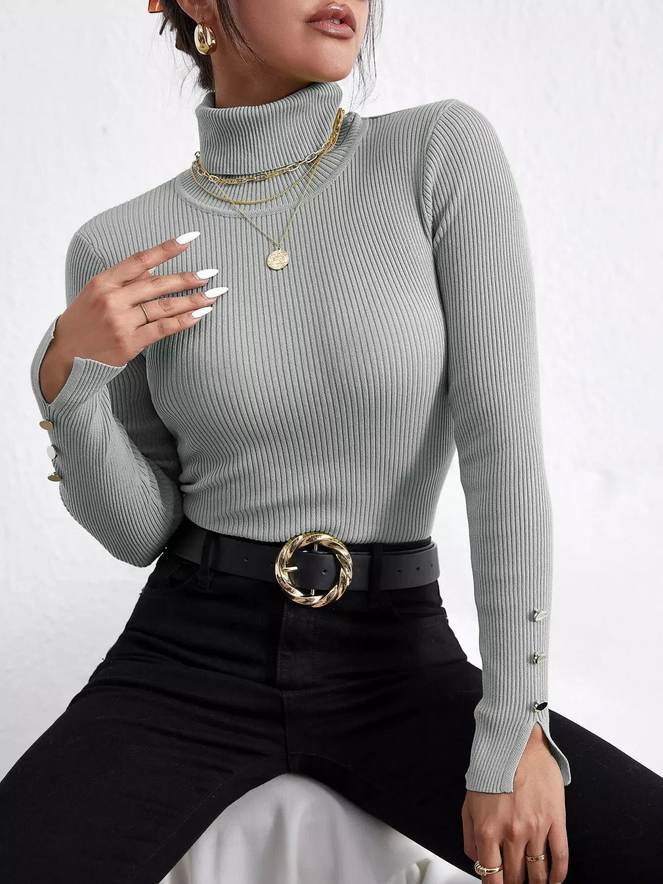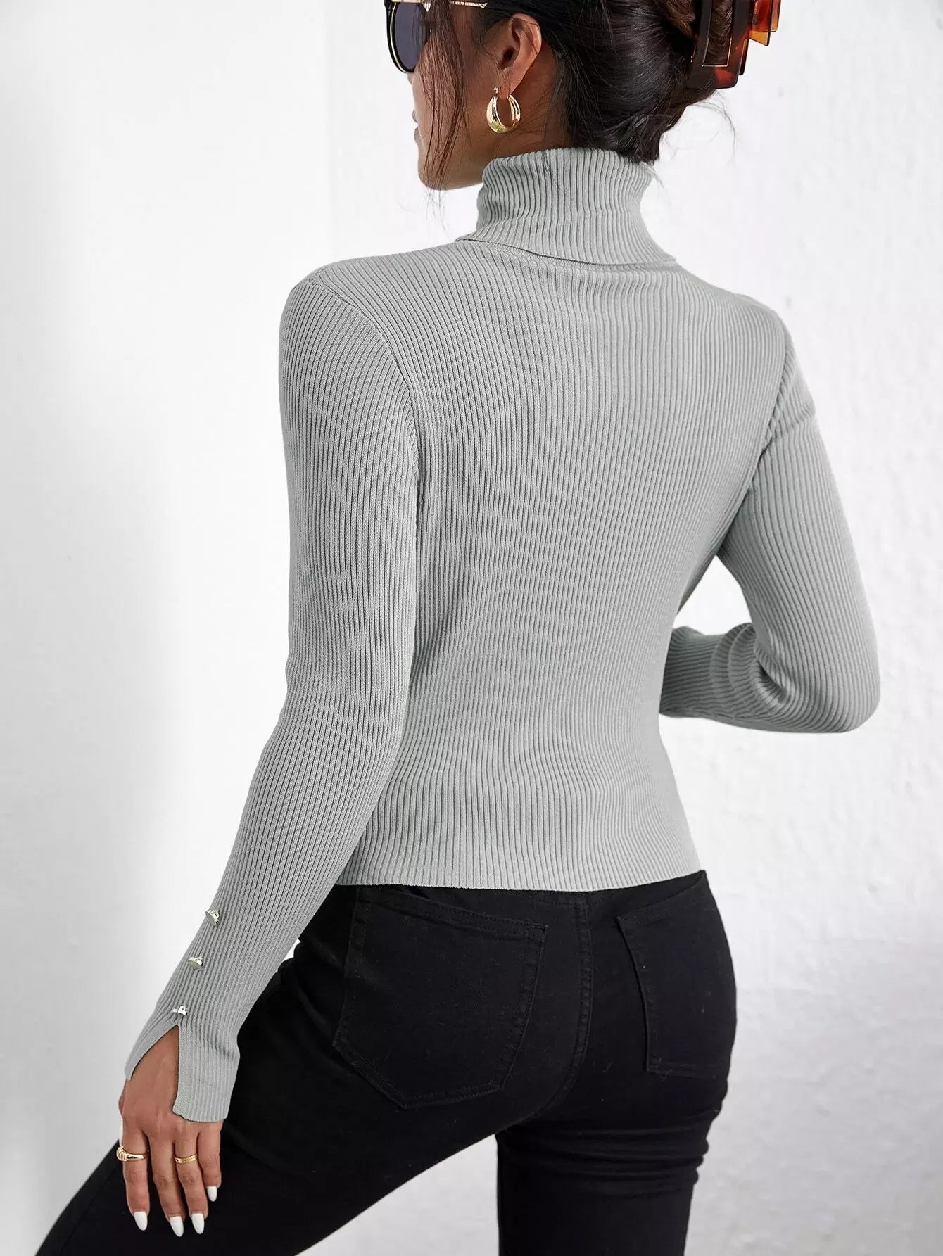 كنزة برقبة سلحفاة مضلعة مضلعة محبوكة