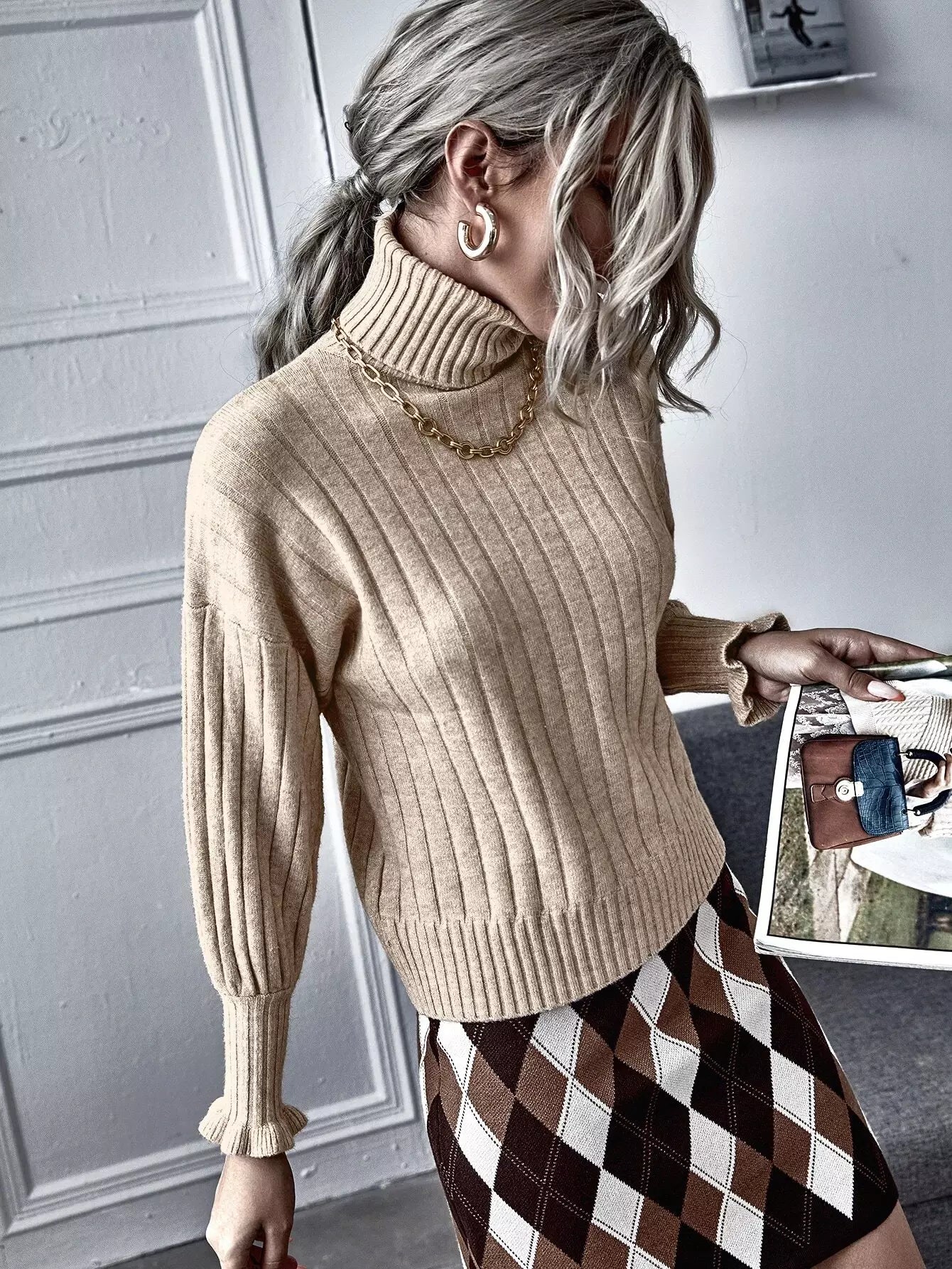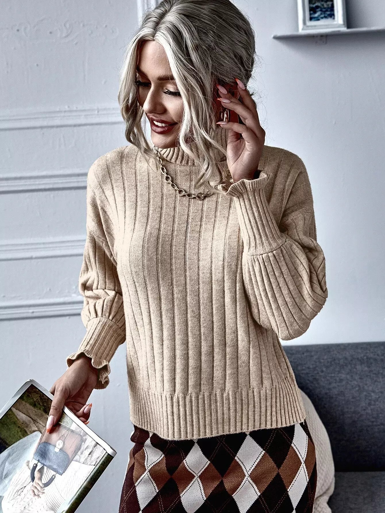 سترة محبوكة ذات رقبة مدورة وأكتاف منسدلة