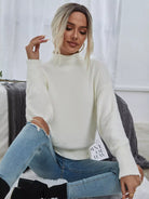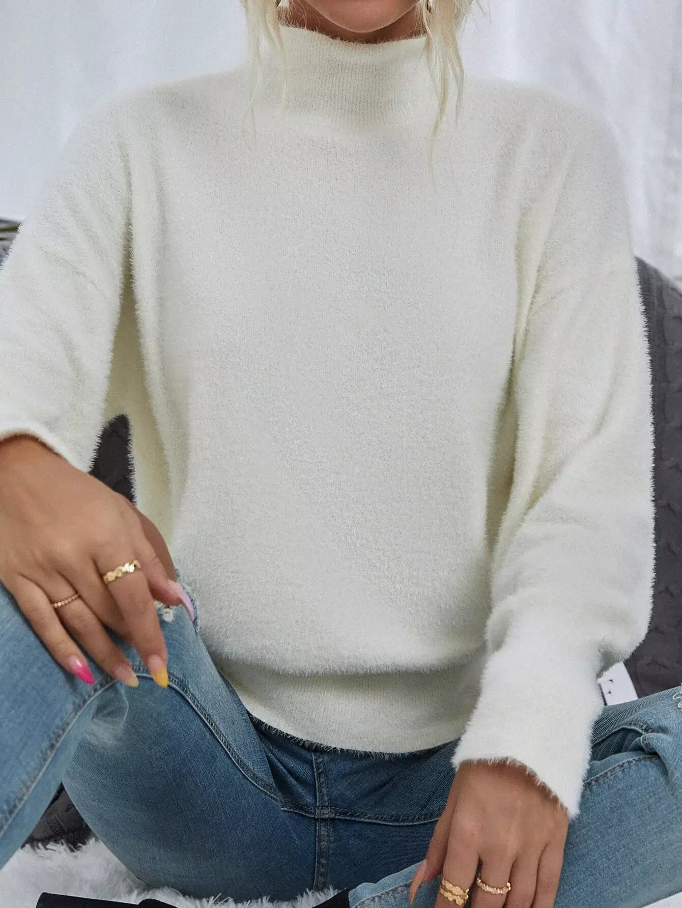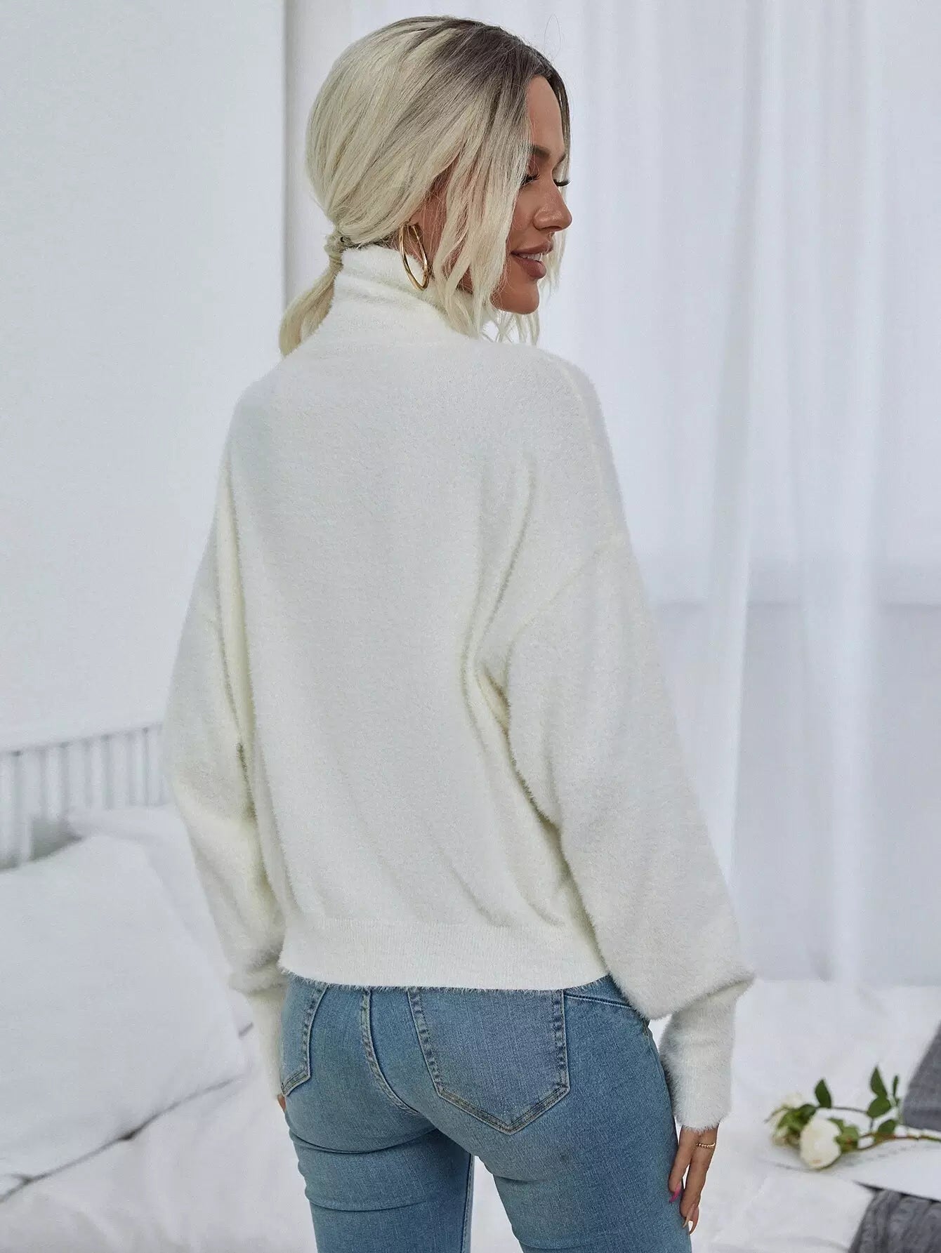 للنساء - سترة ذات ياقة مدورة منفوشة وأكتاف منسدلة