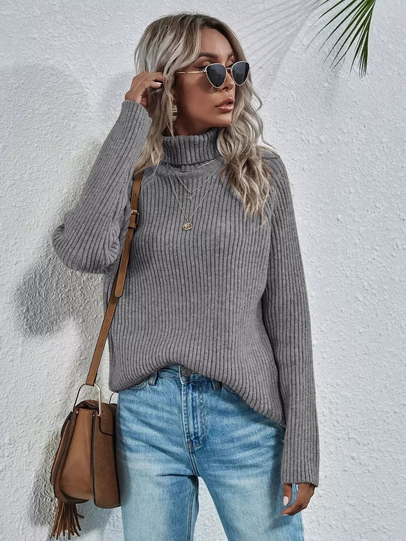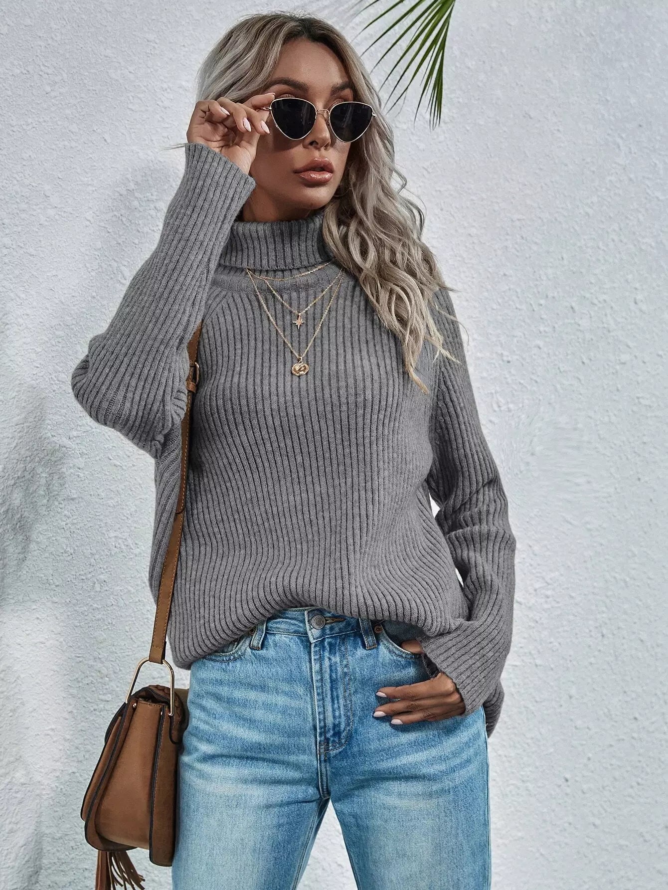 كنزة محبوكة مضلعة ذات ياقة مدورة