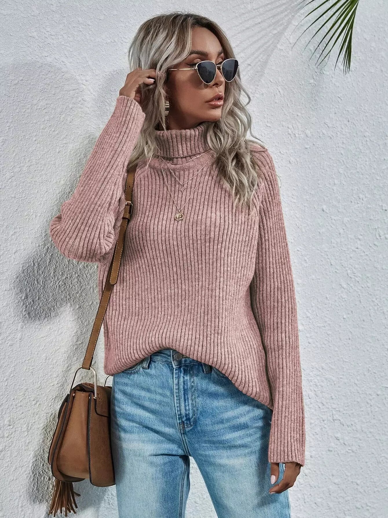 كنزة محبوكة مضلعة ذات ياقة مدورة