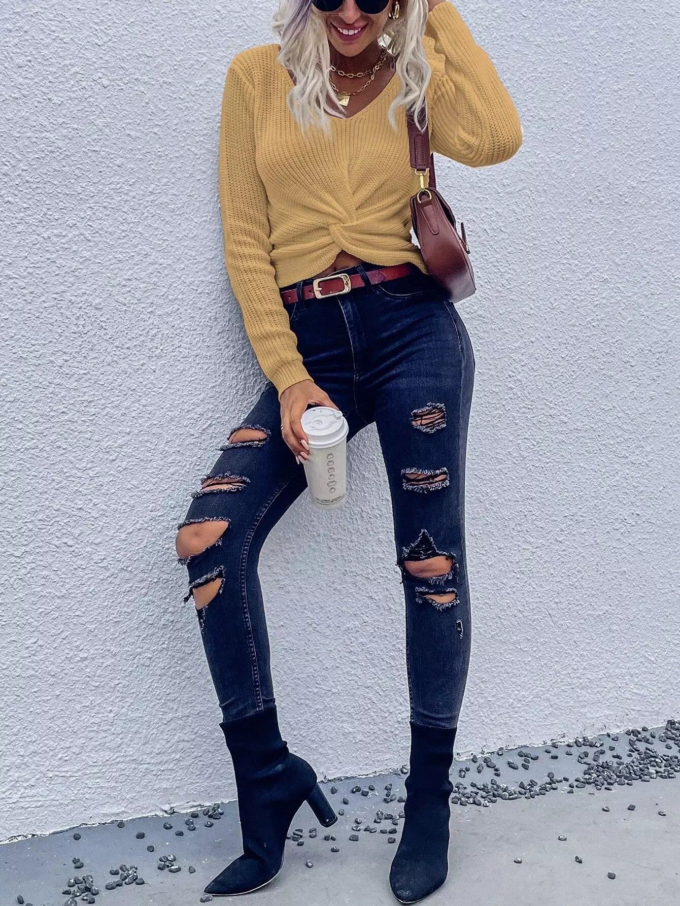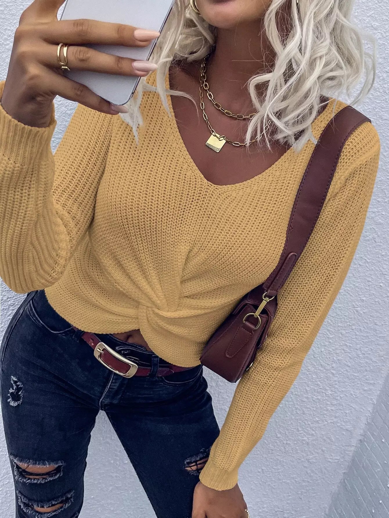 سترة تويست أمامية مضلعة مضلعة محبوكة