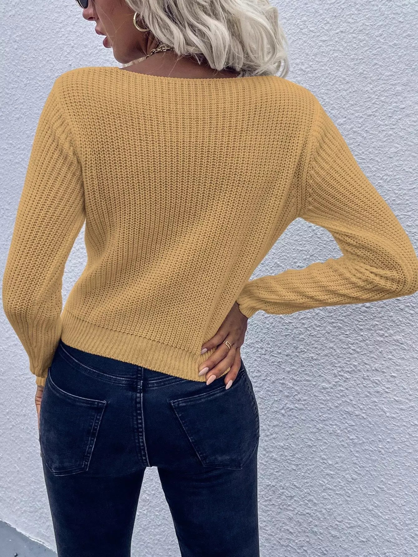 النساء - سترة متماسكة مضلعة أمامية ملتوية