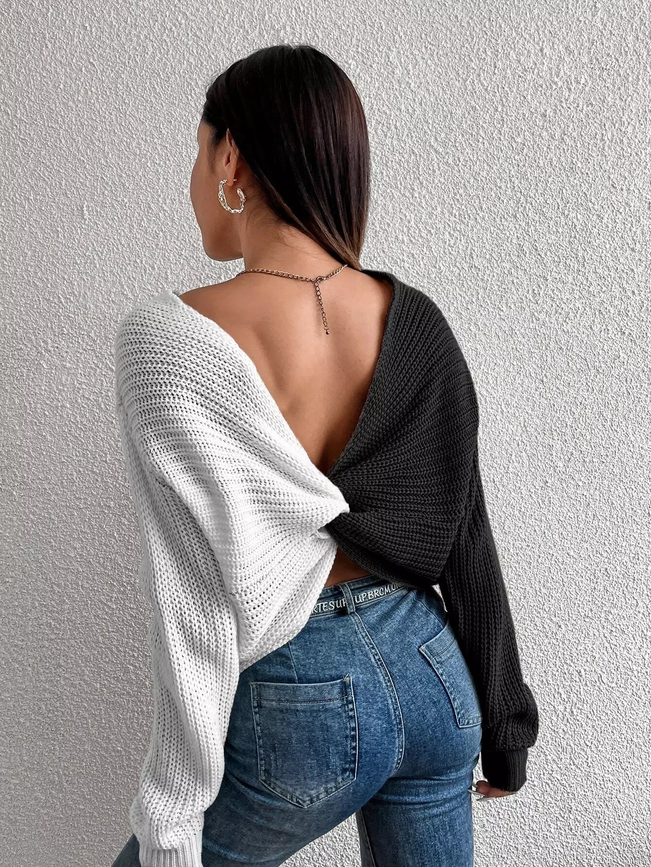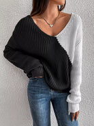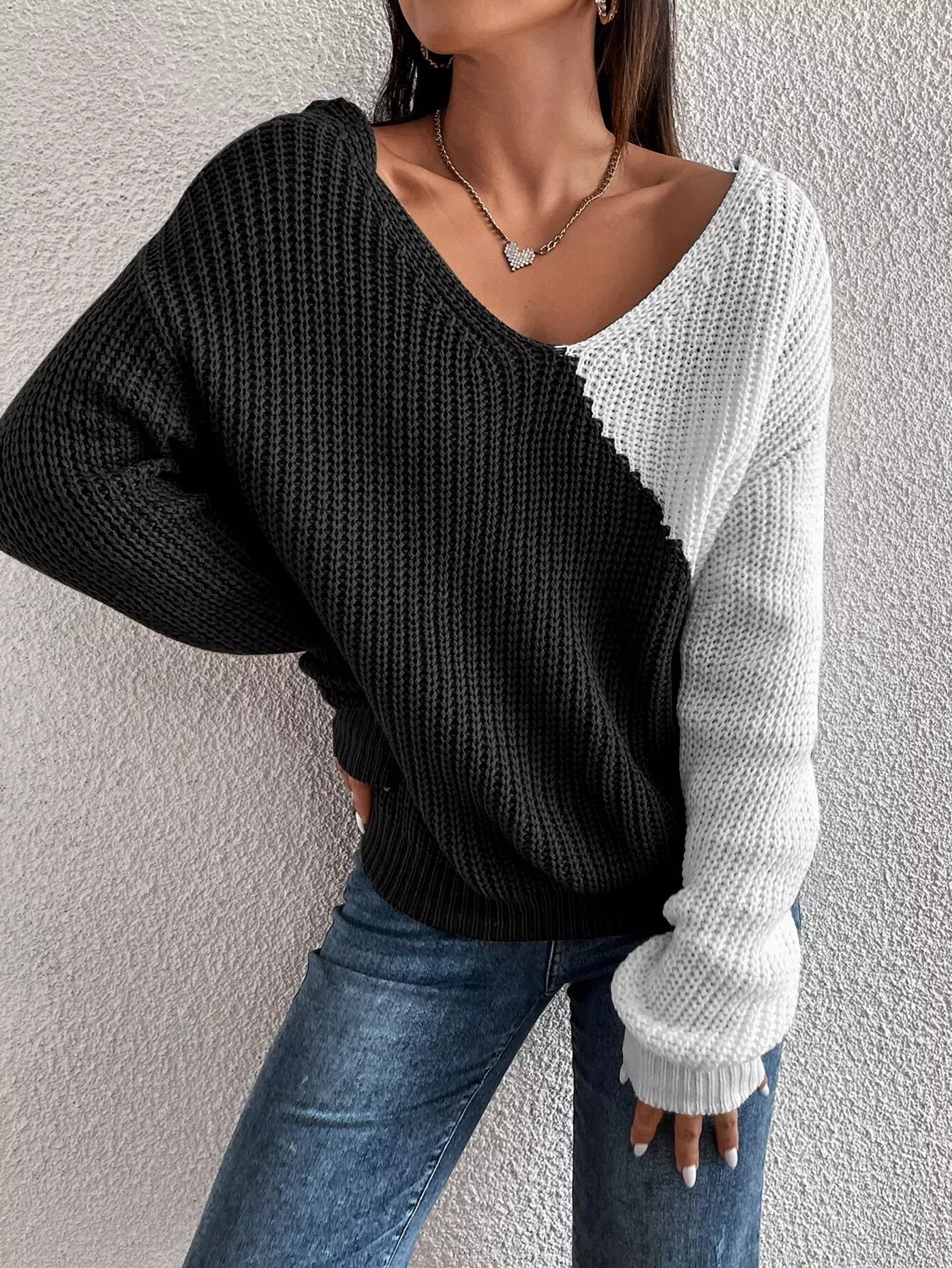 سترة منسدلة الكتفين بلونين بلونين على شكل حرف V بظهر على شكل حرف V