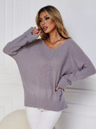 سترة بأكمام على شكل حرف V برقبة على شكل حرف V
