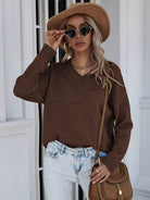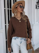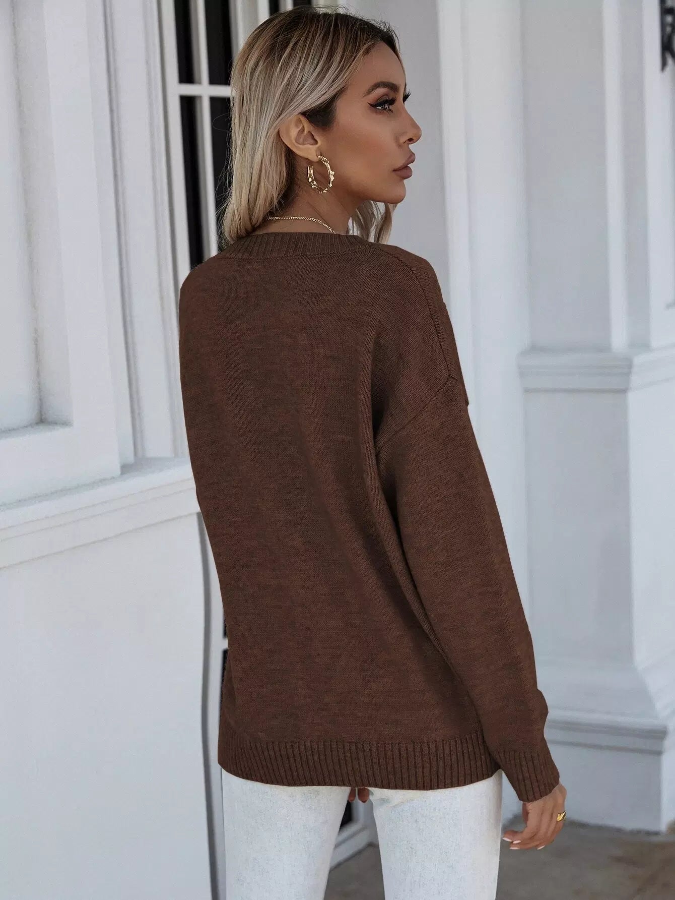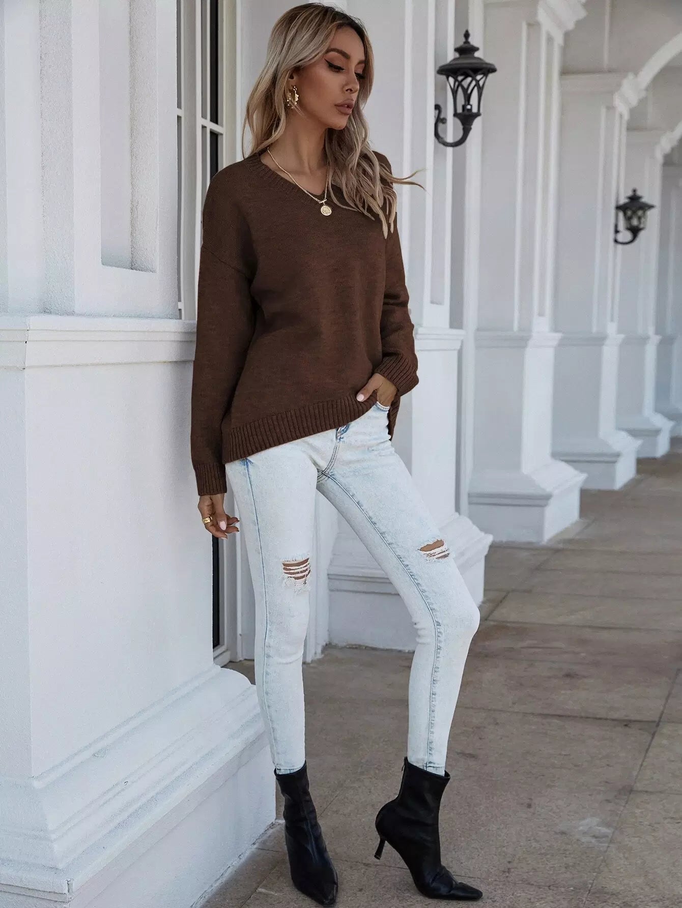 كنزة برقبة على شكل حرف V منسدلة الكتفين