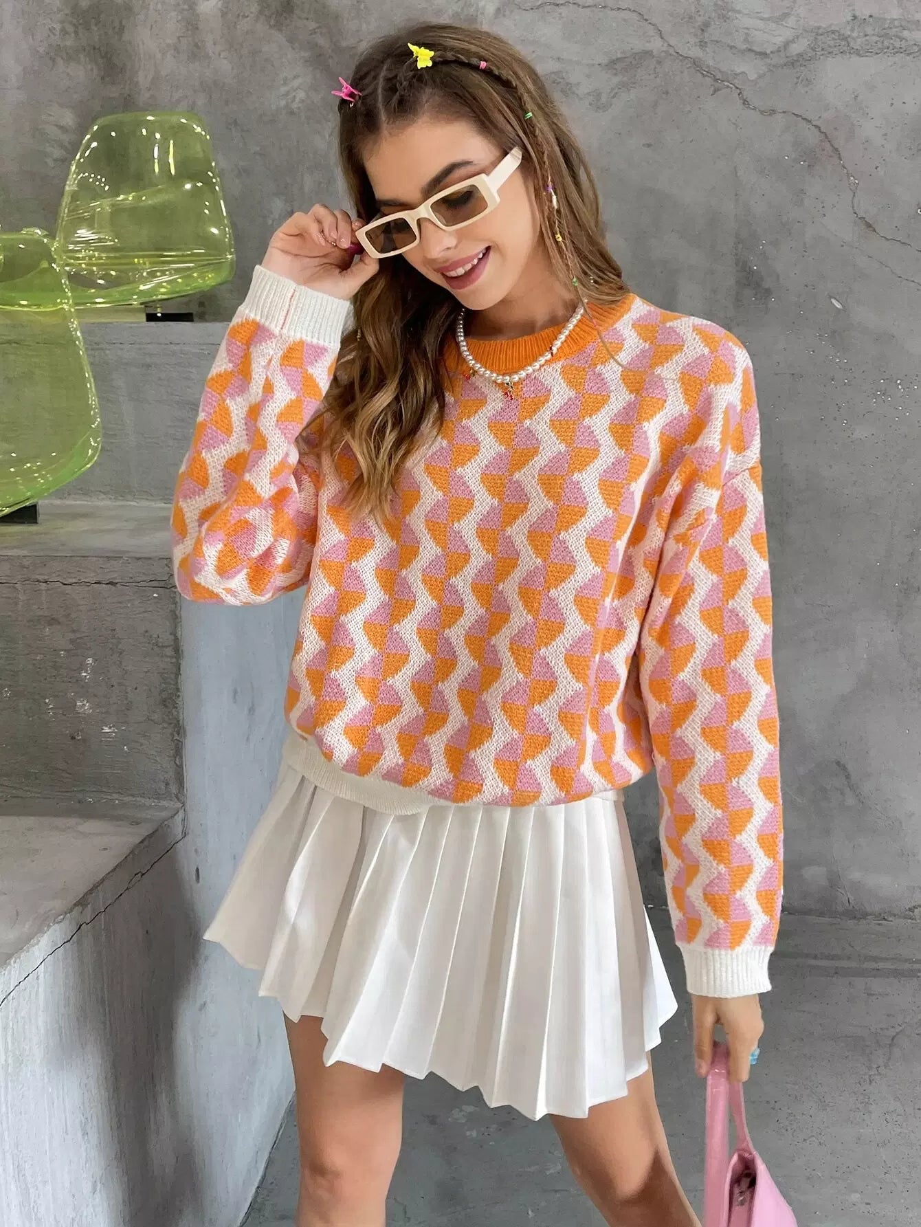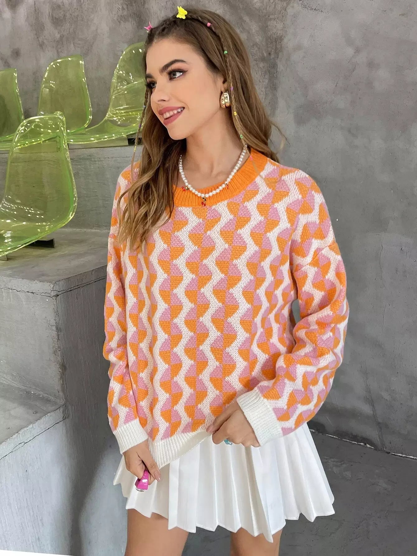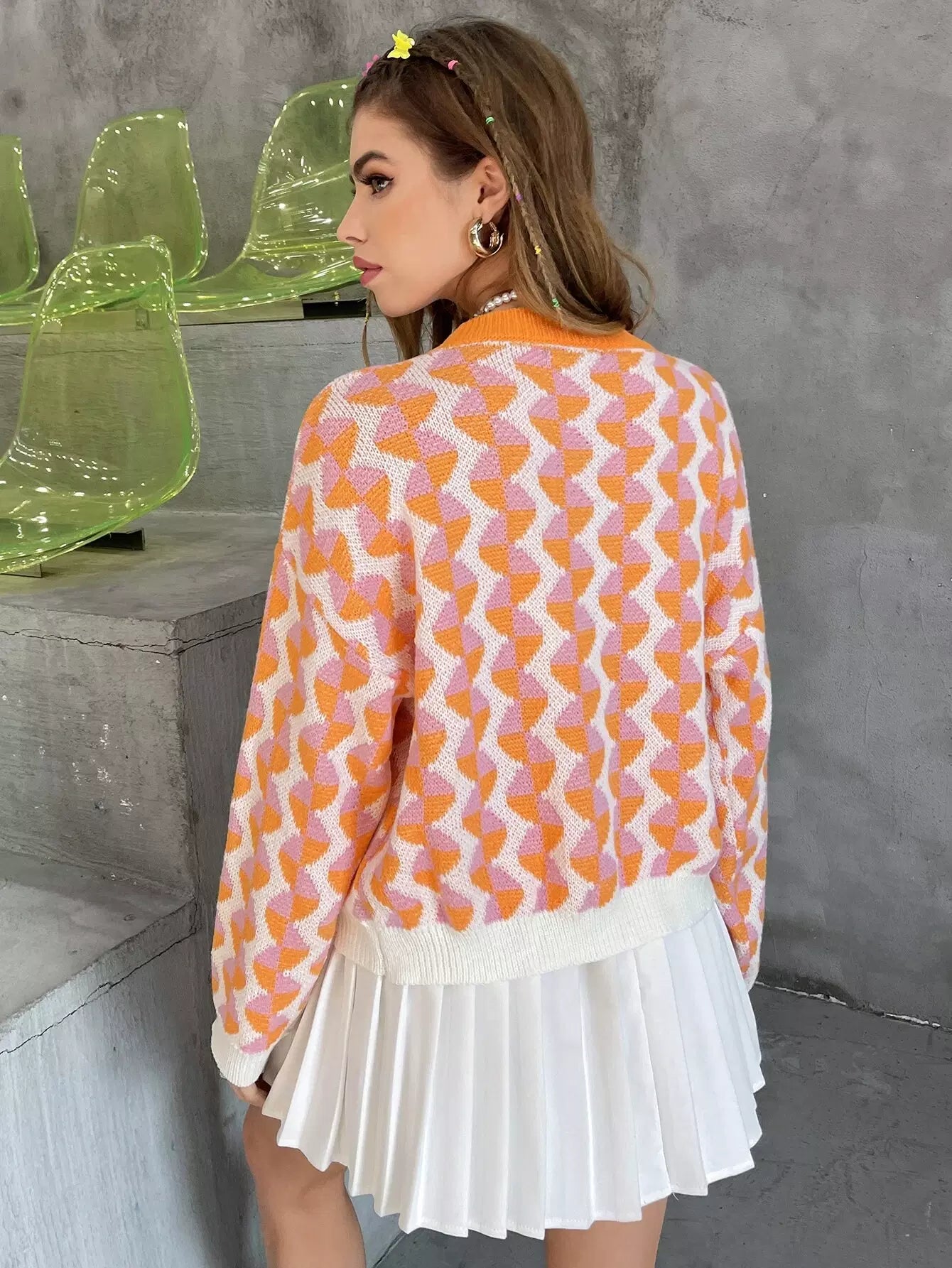 سترة منسدلة الكتفين بنقشة موجية