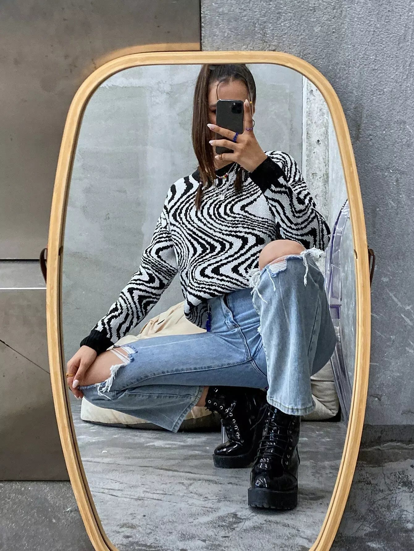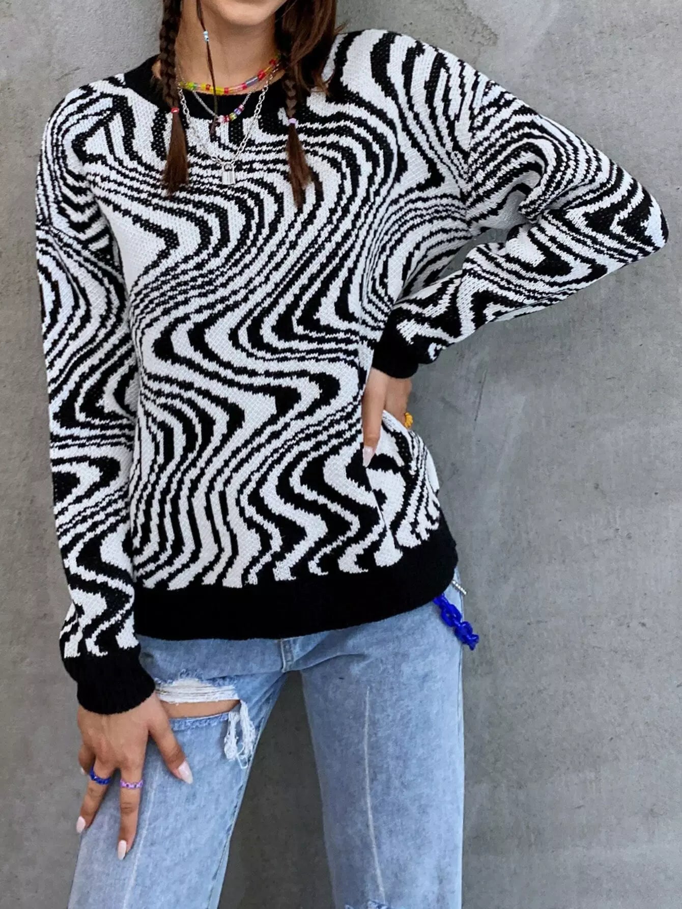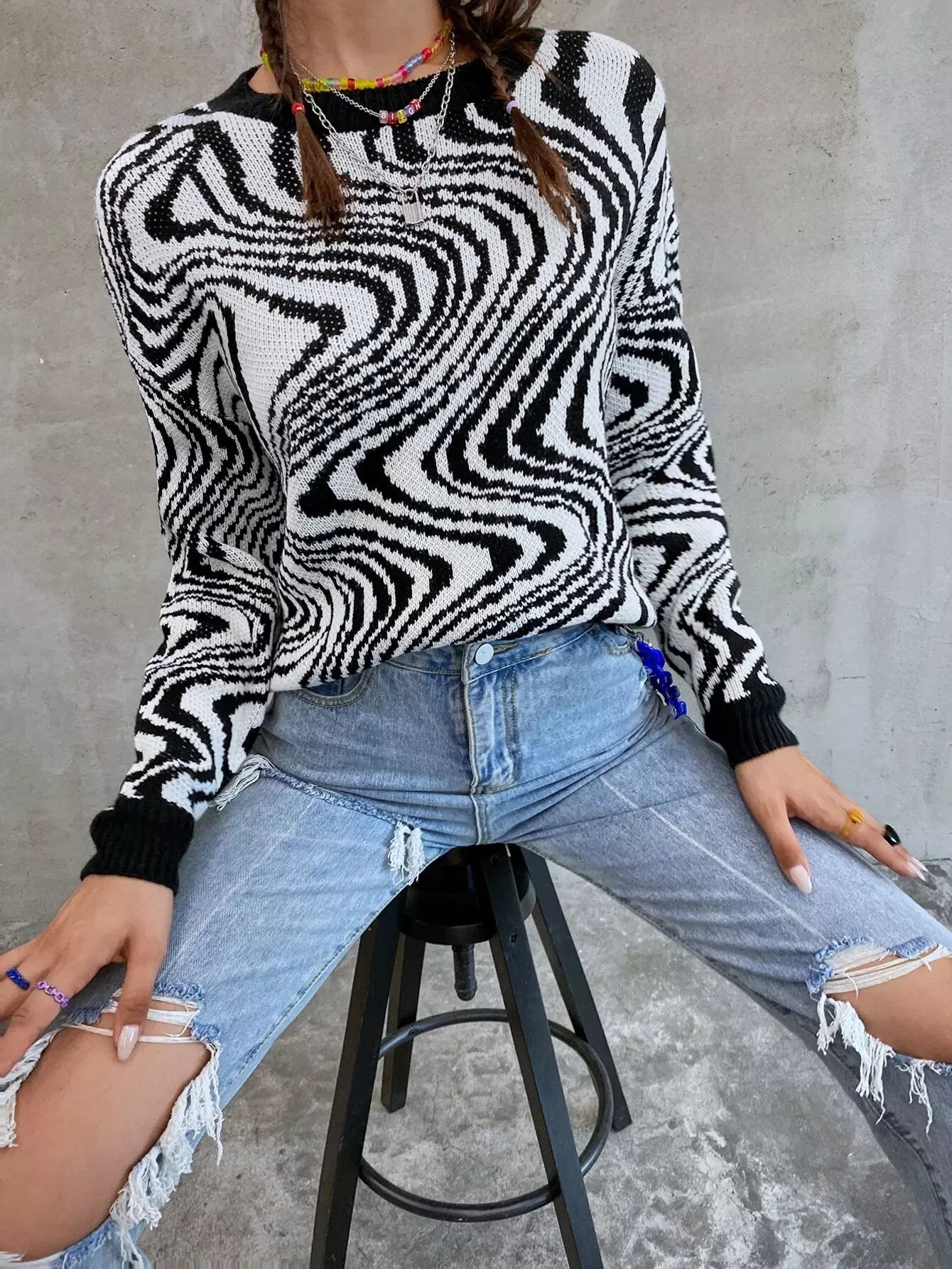 سترة منسدلة الكتفين مخططة بخطوط زيبرا