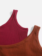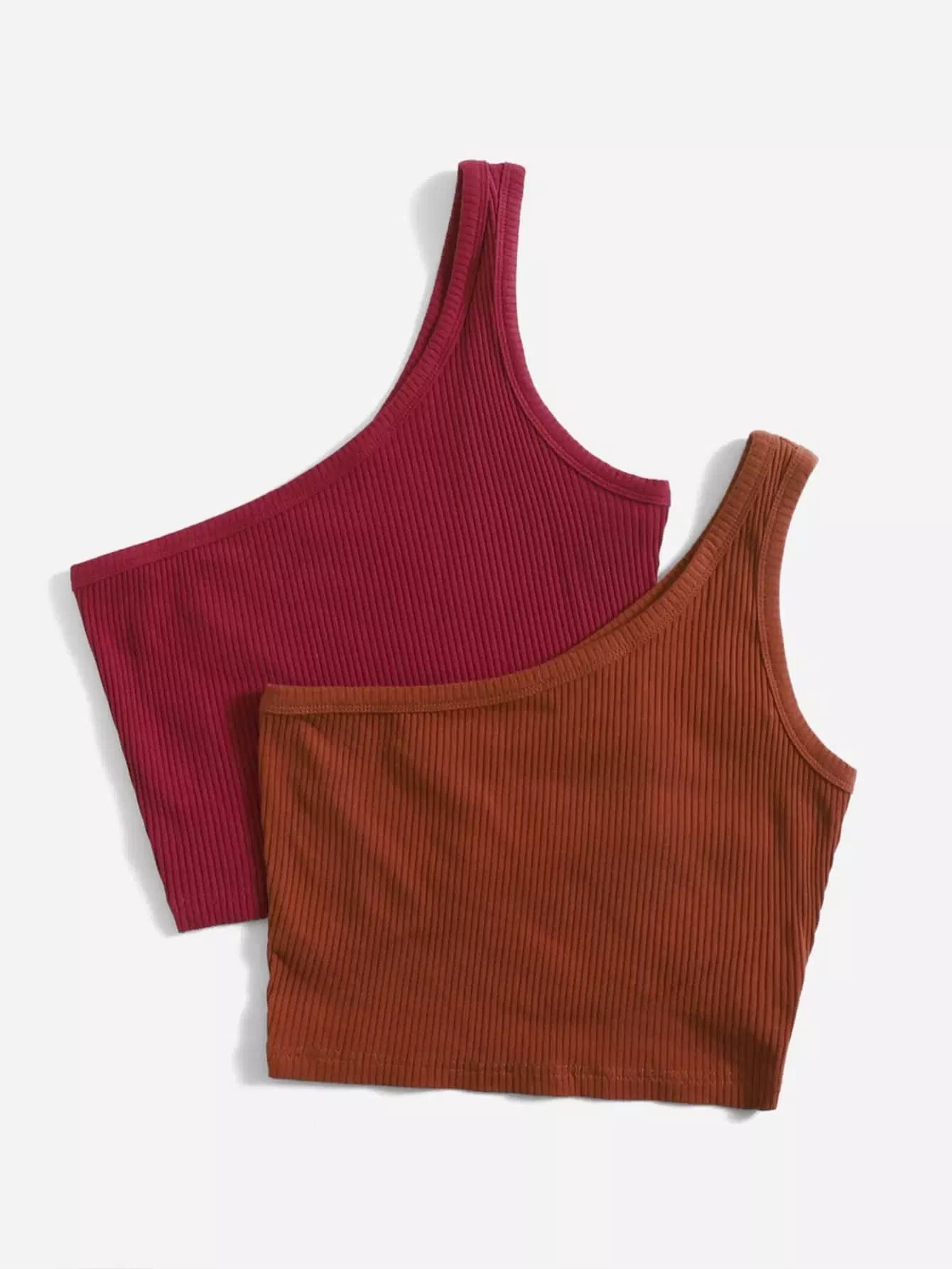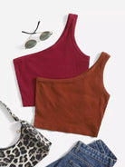 2 قطعة بلوزة سادة بكتف واحد علوي سادة 2 قطعة