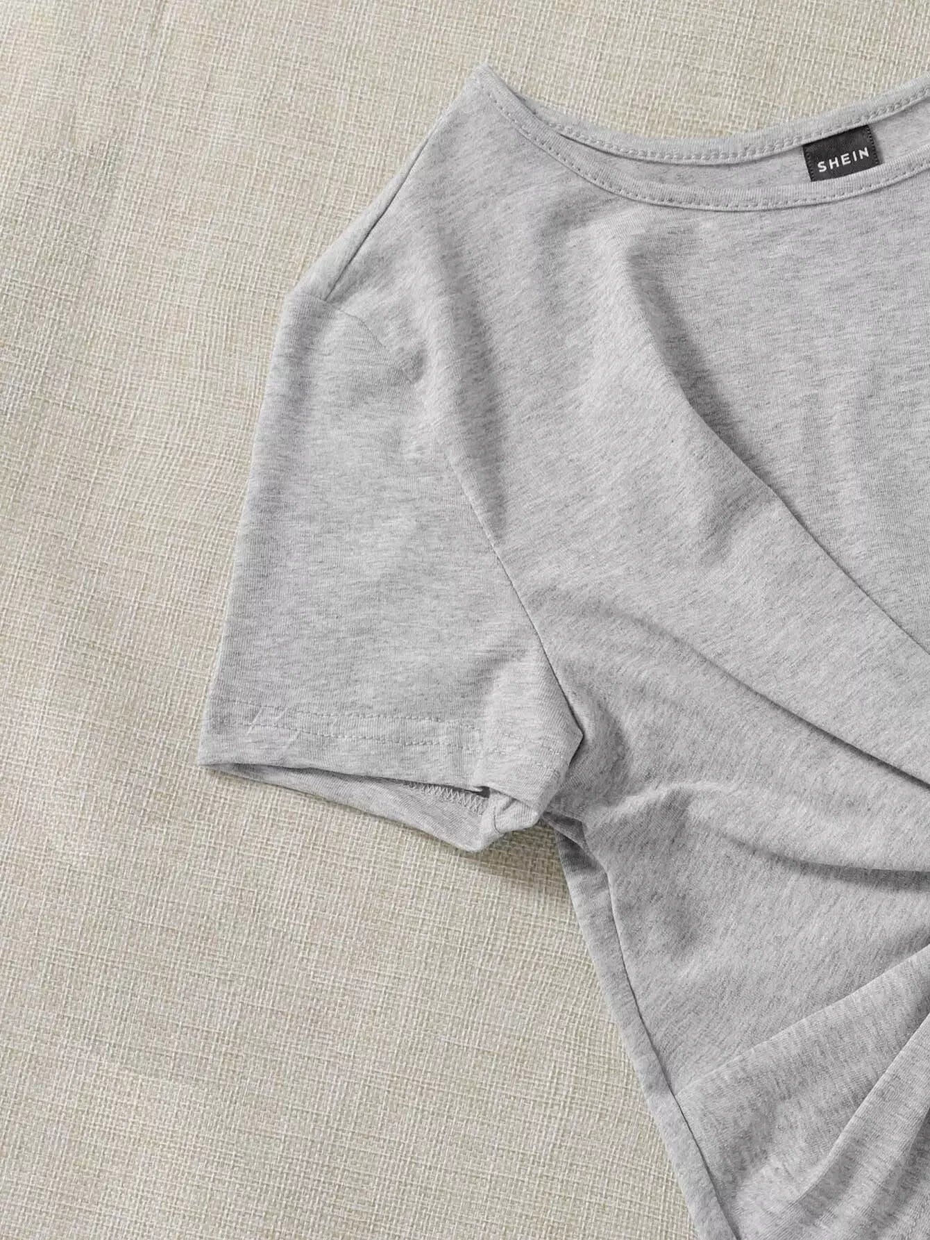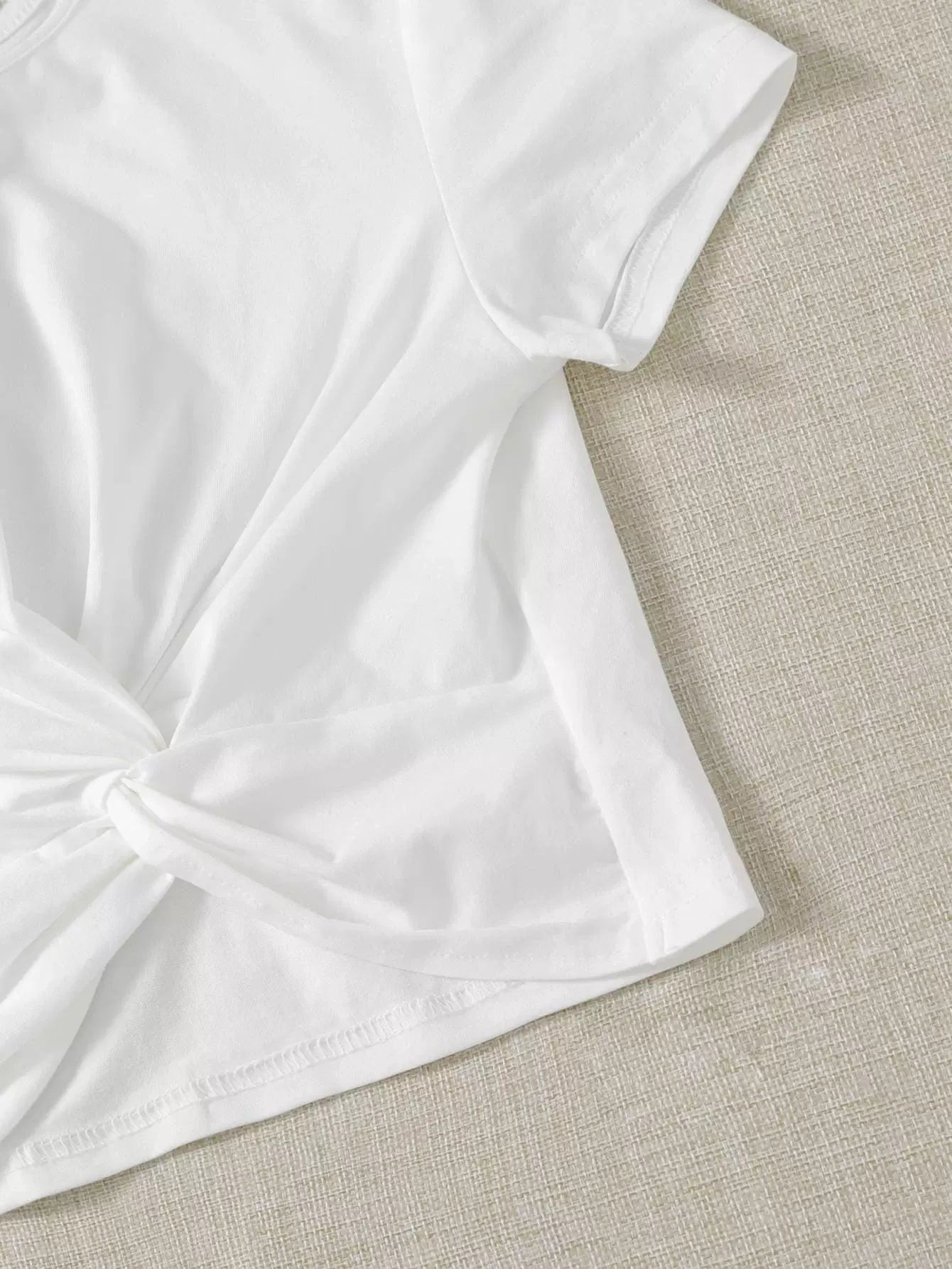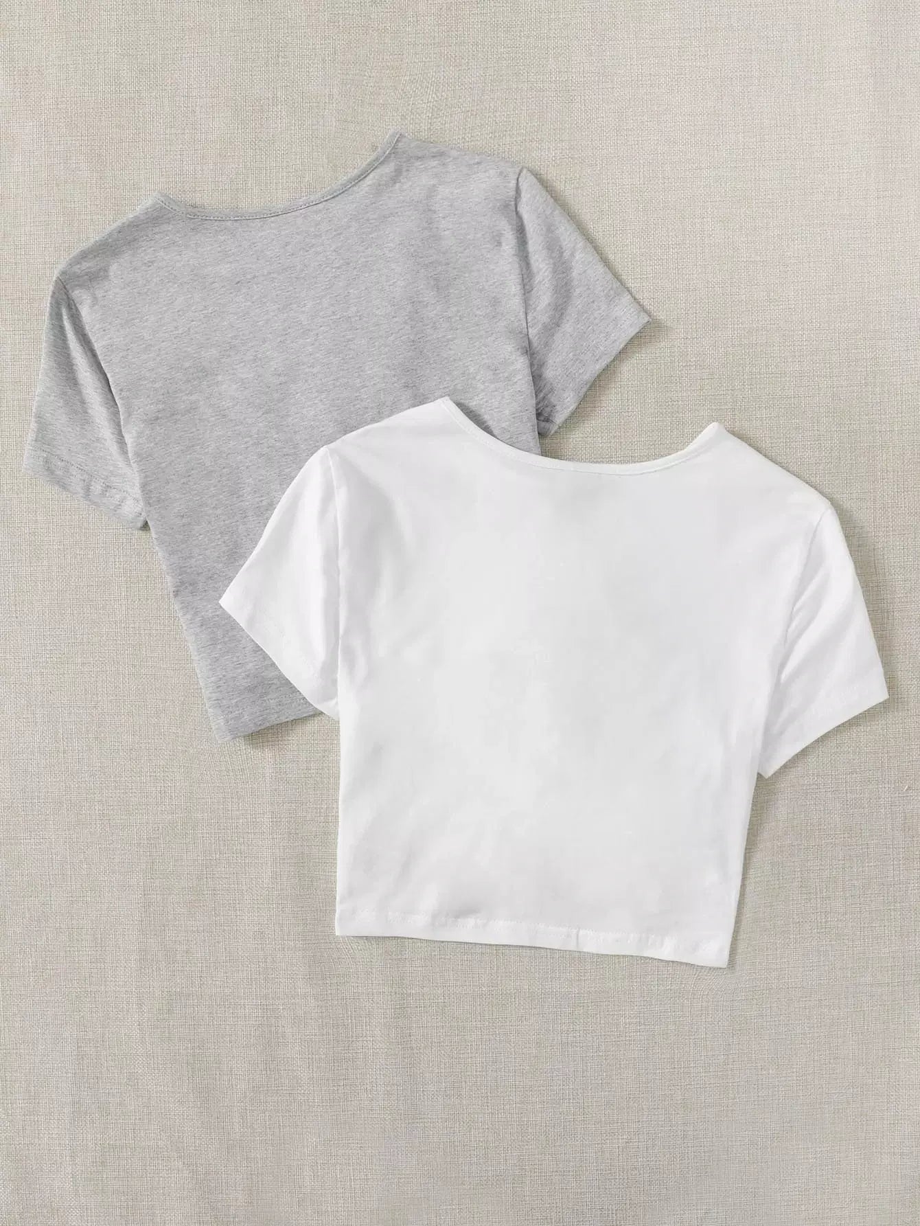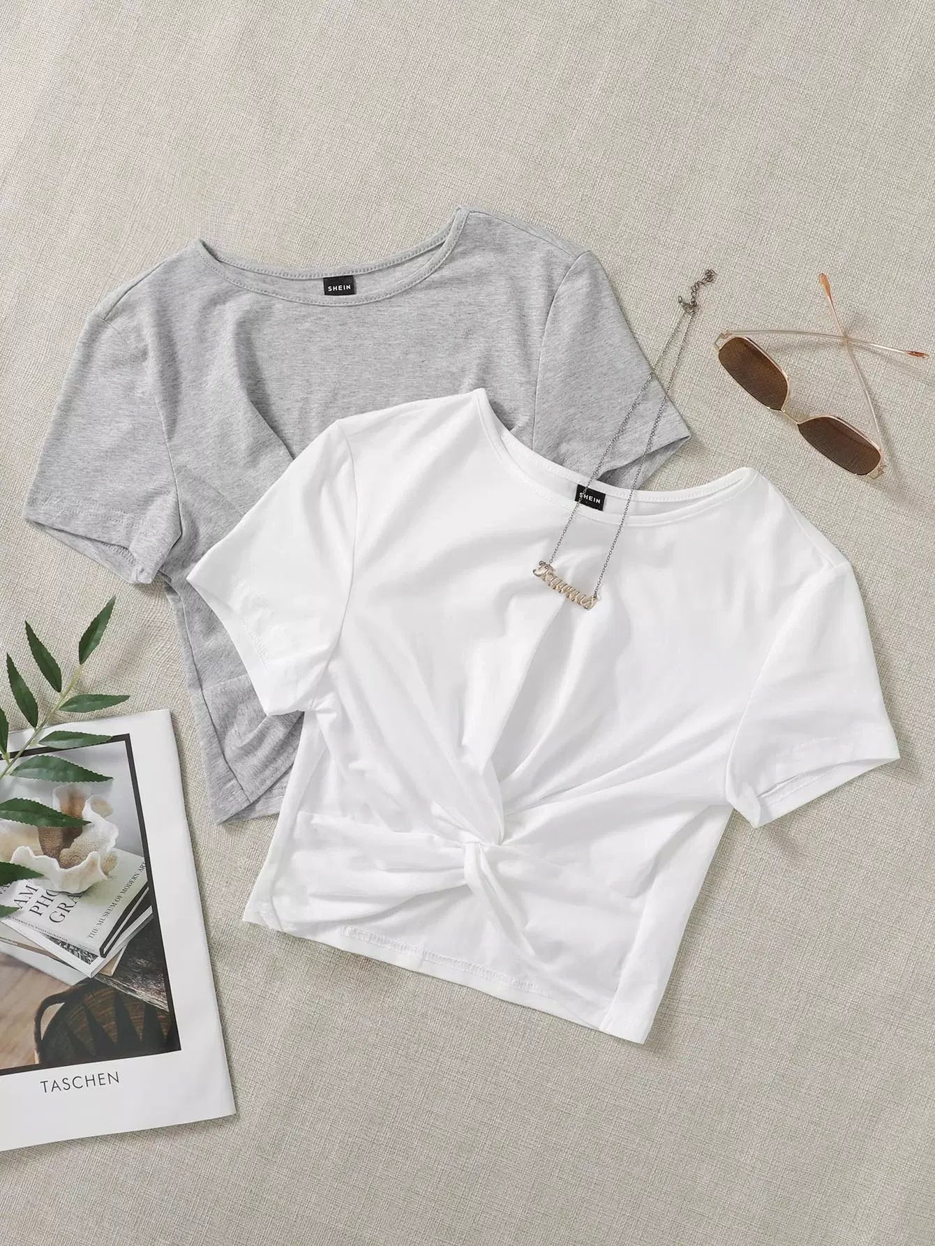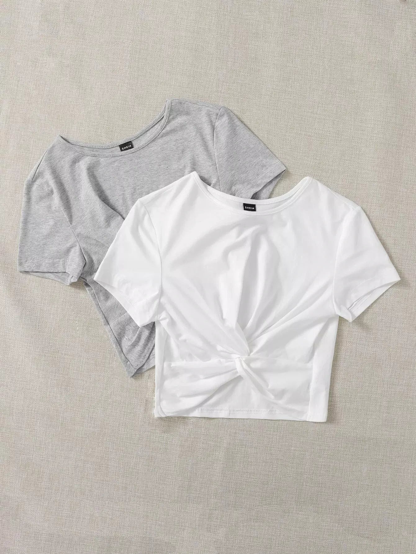 قطعتان من التي شيرت الملتوية الصلبة من الأمام