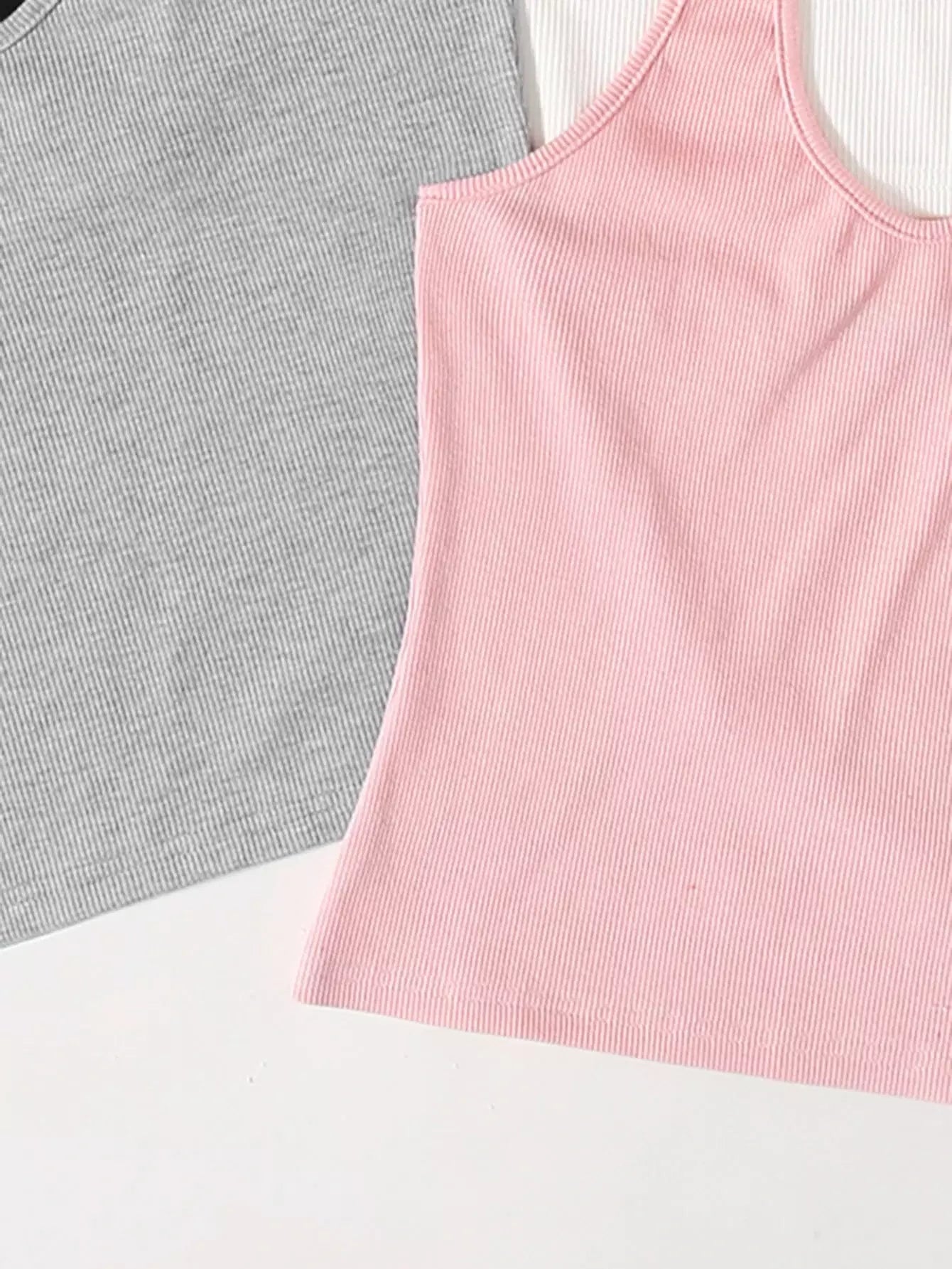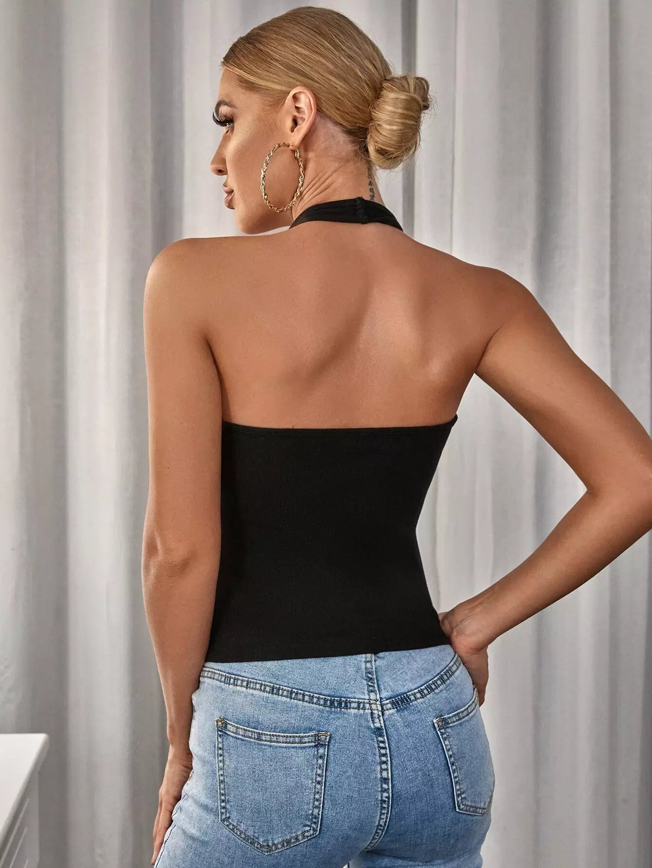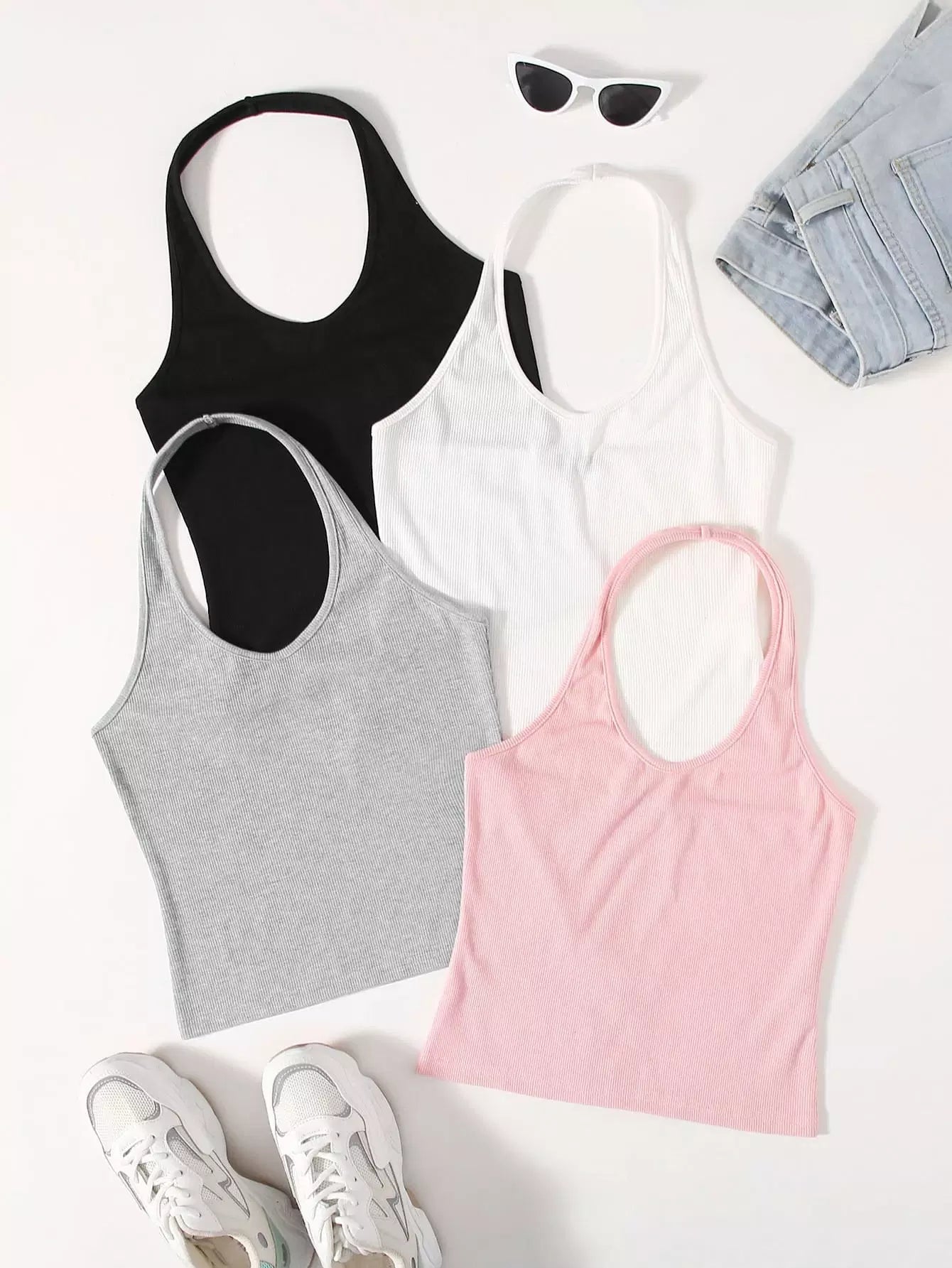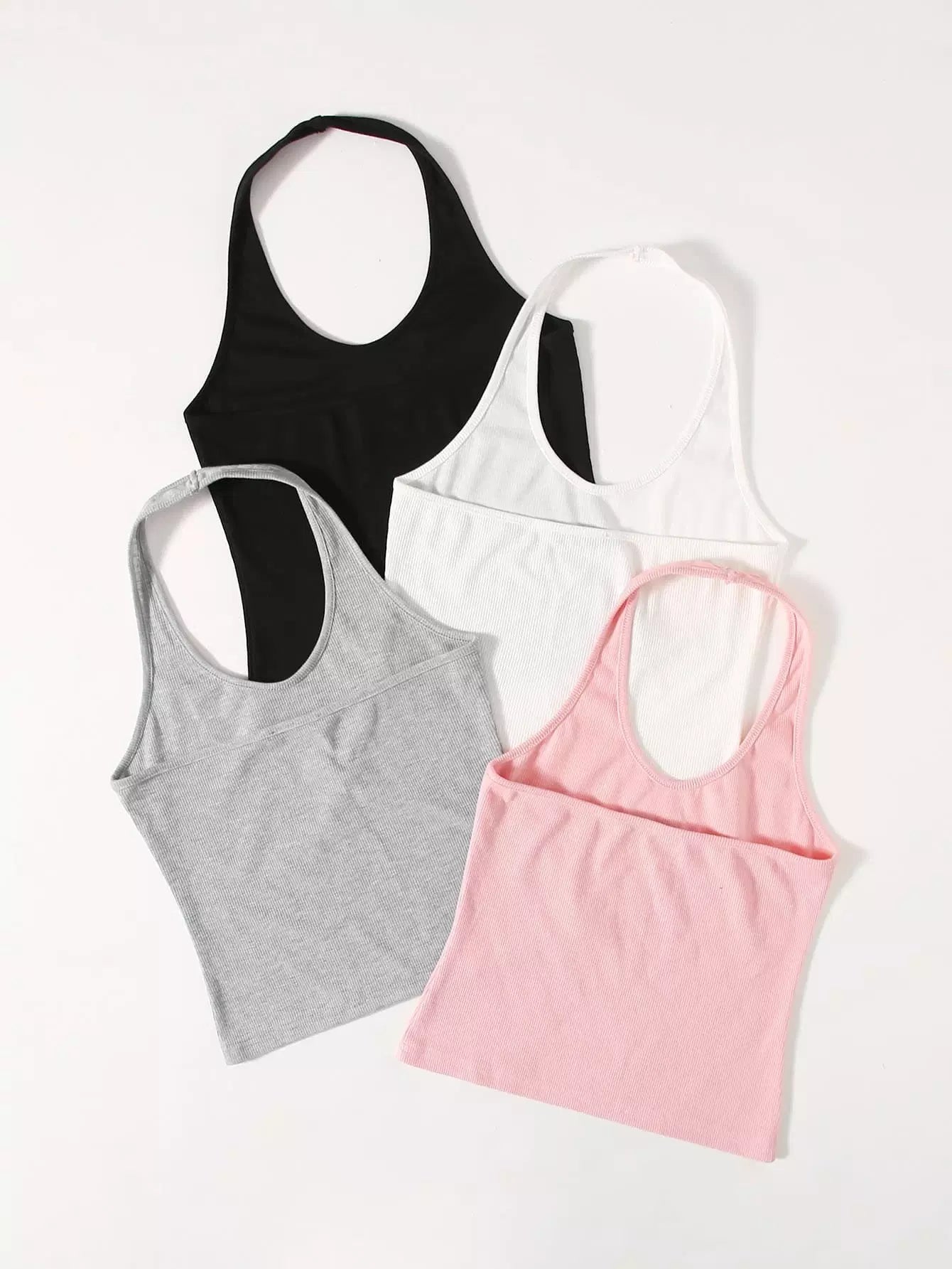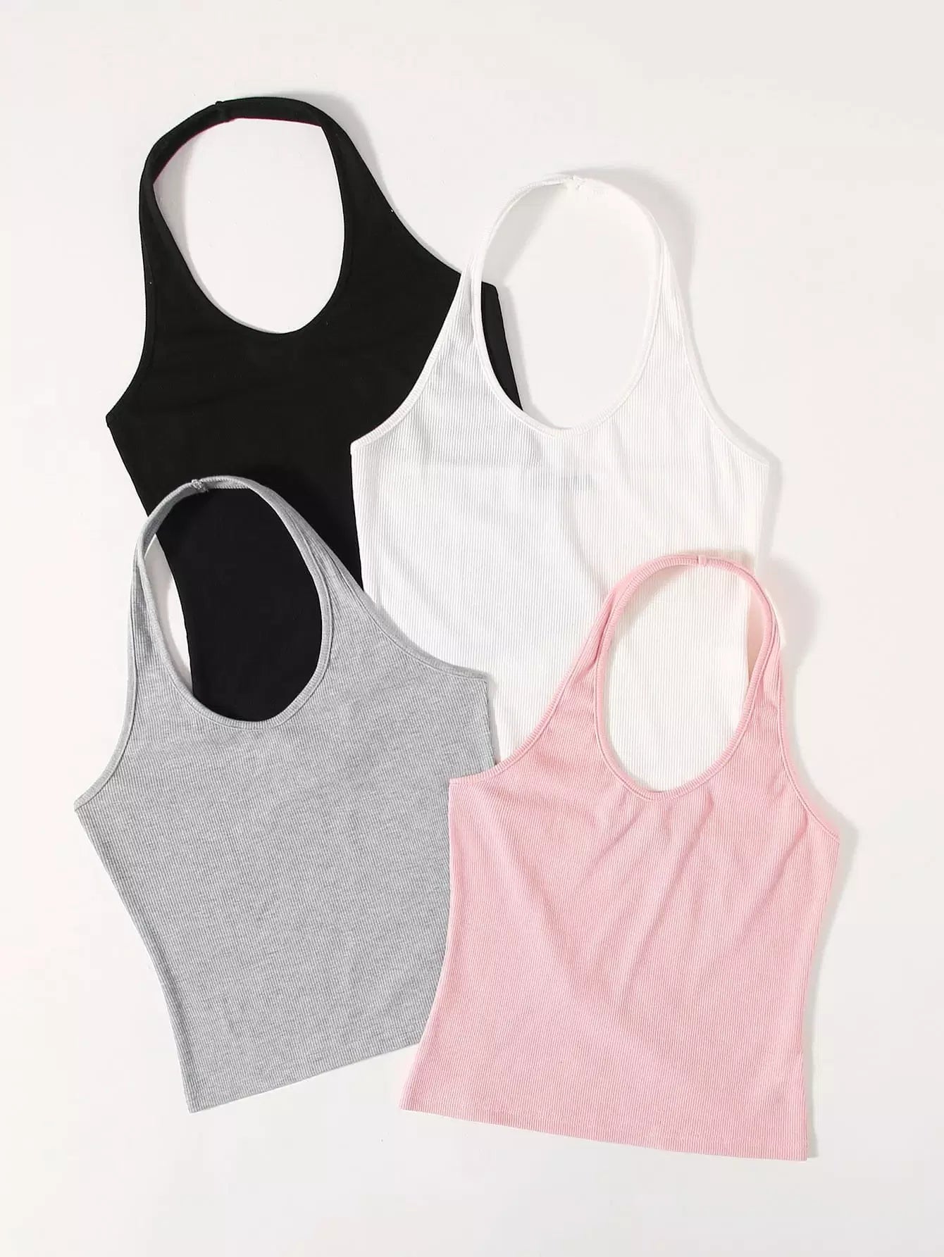 مجموعة من 4 قطع من قمصان الهالتر ذات الحياكة المضلعة