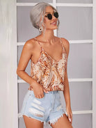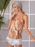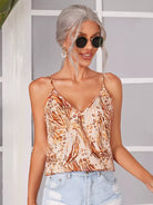بلوزة كامي برقبة مزدوجة على شكل حرف V مطبوع عليها بالكامل
