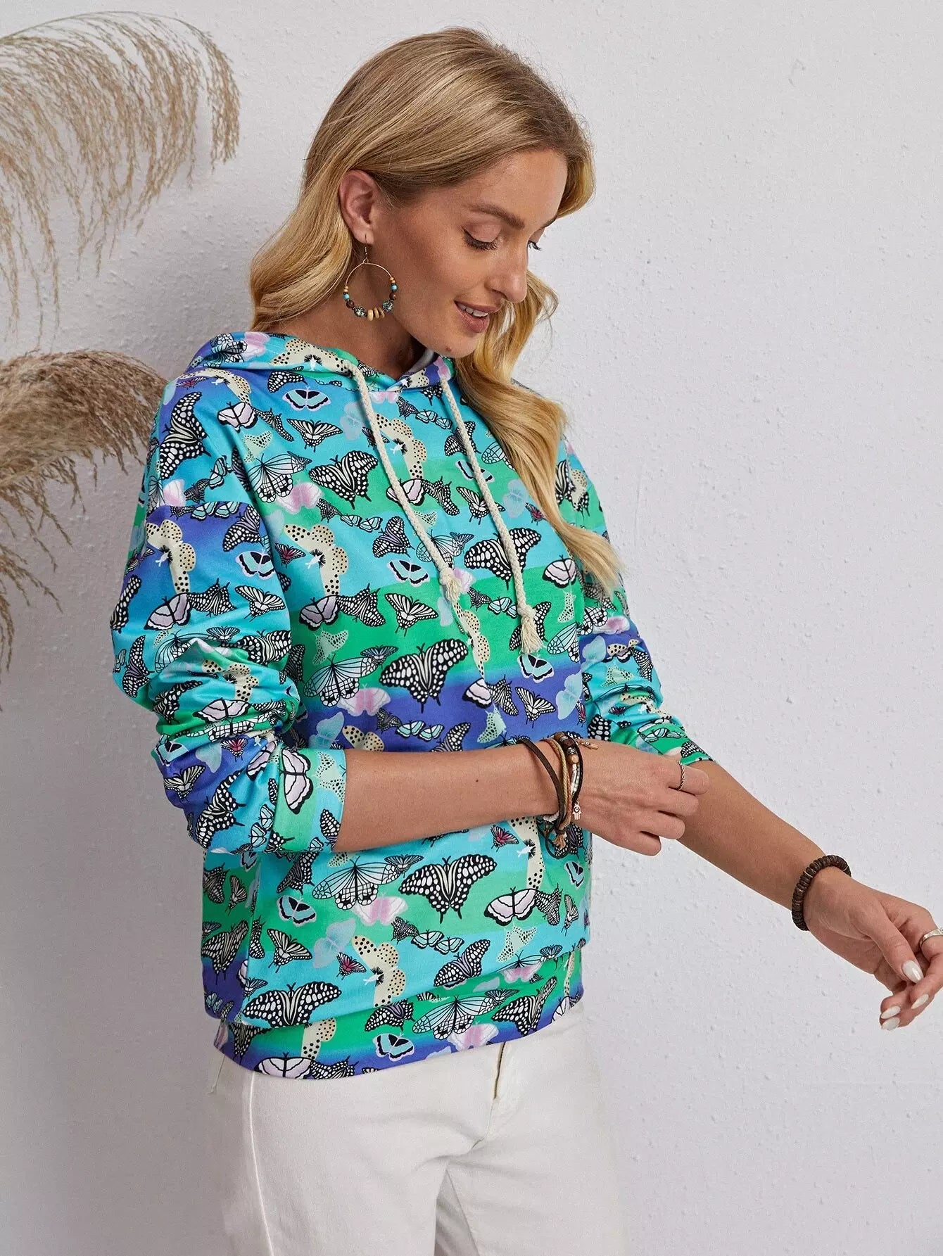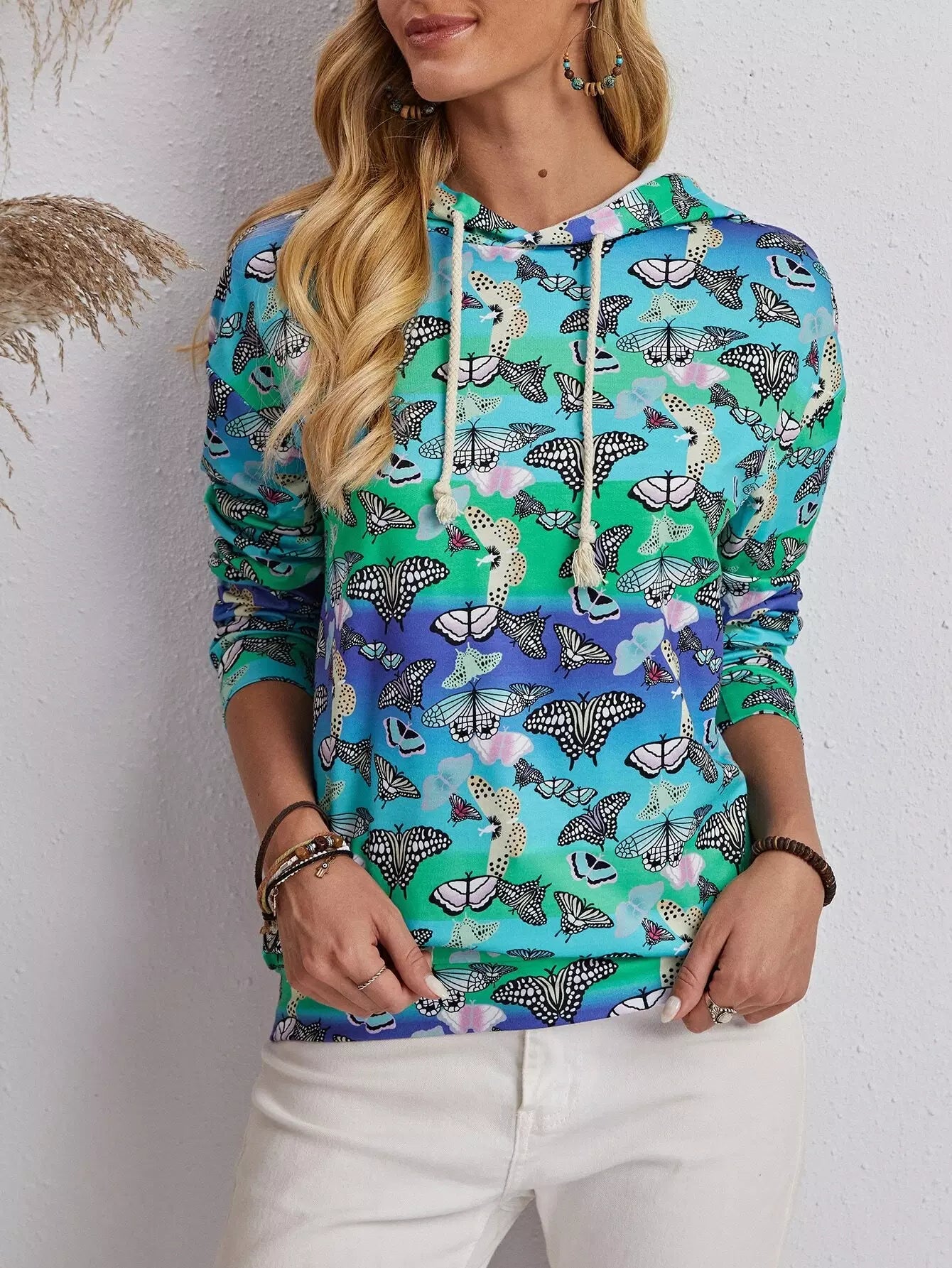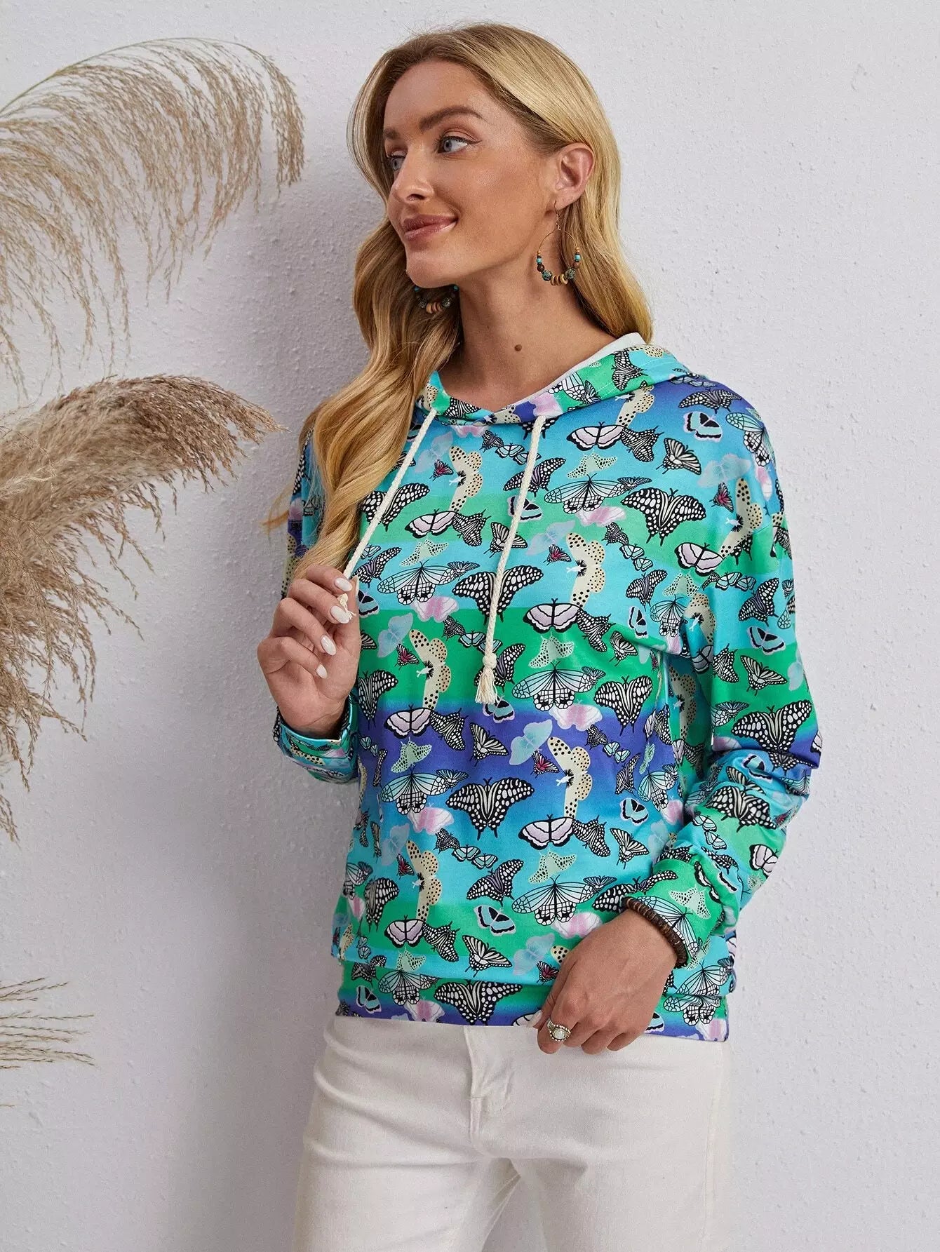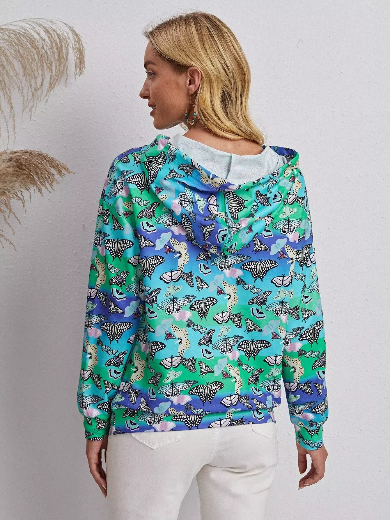 هودي مزين بطبعة فراشات مطبوع عليه رباط بقلنسوة