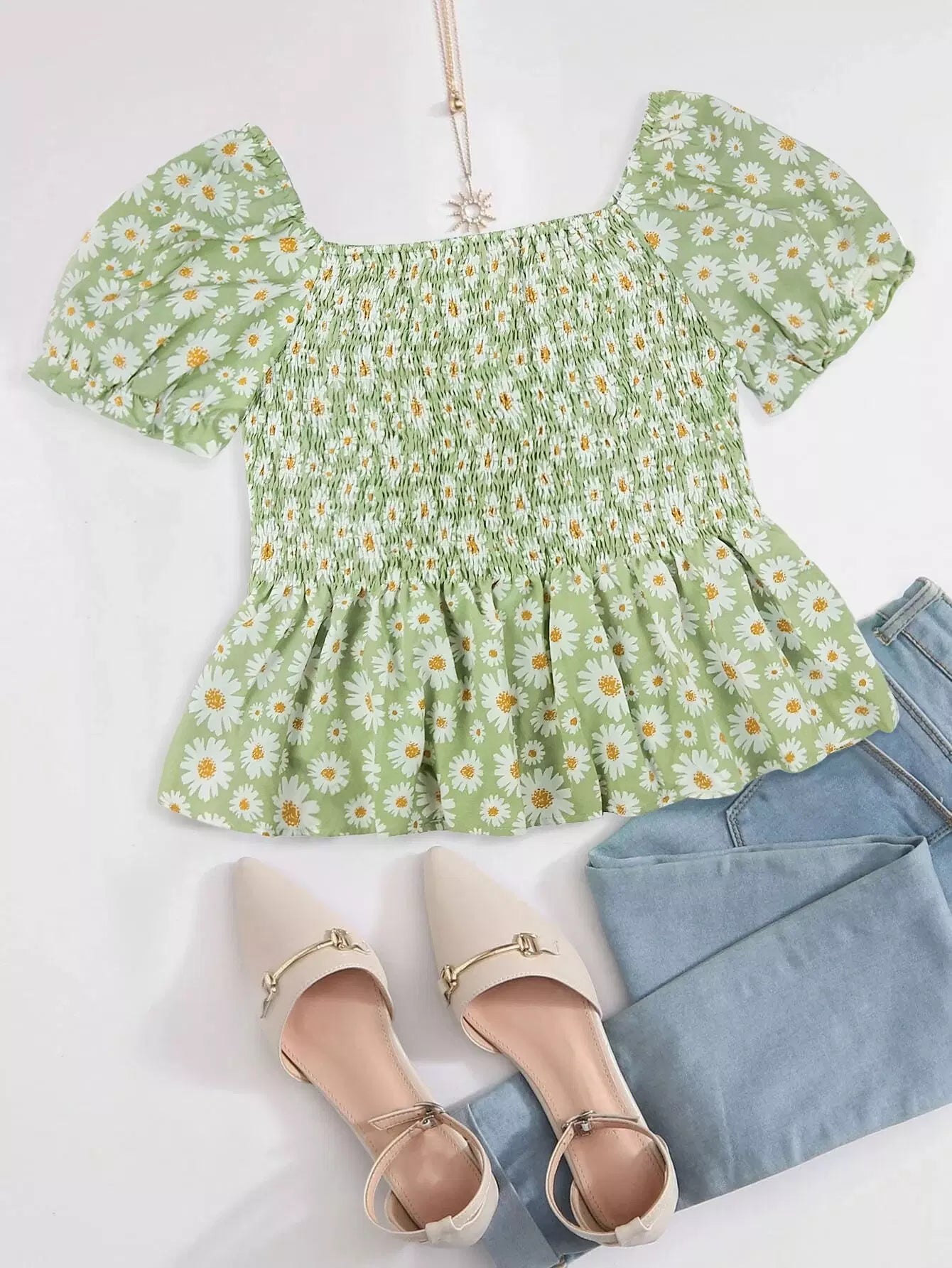 بلوزة بطبعة أقحوان مطبوع عليها زهور الأقحوان بالكامل