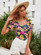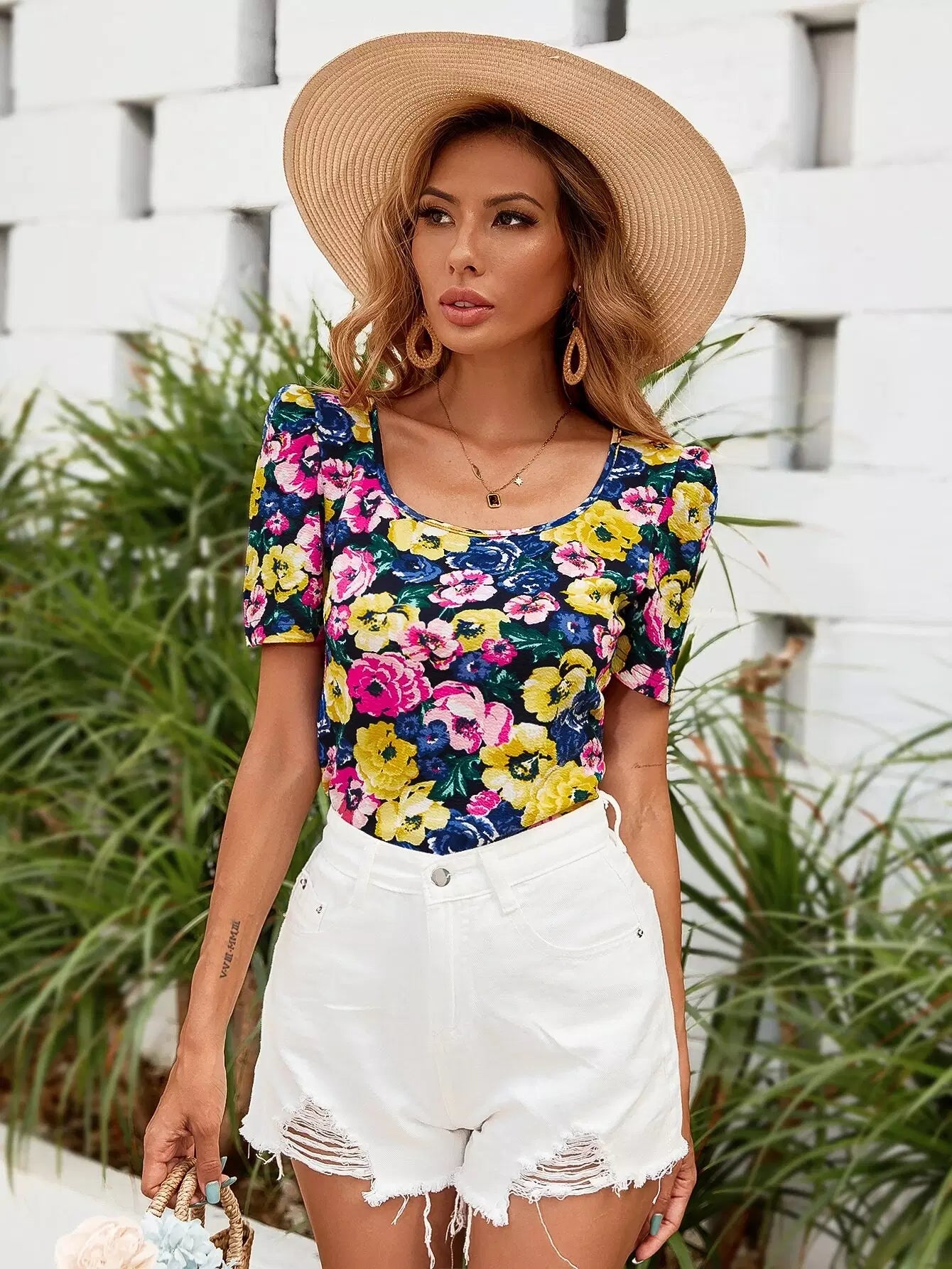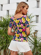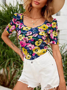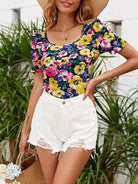 تي شيرت بأكمام منفوشة بأزهار منفوشة بالكامل