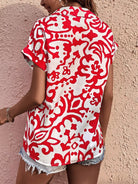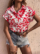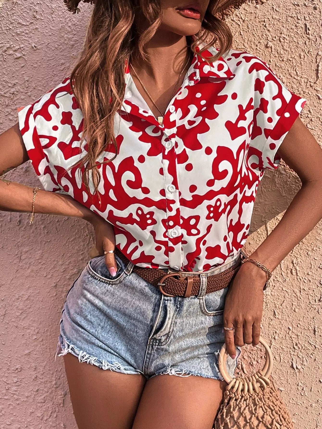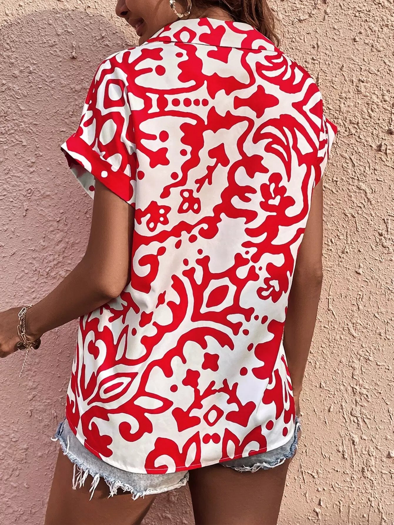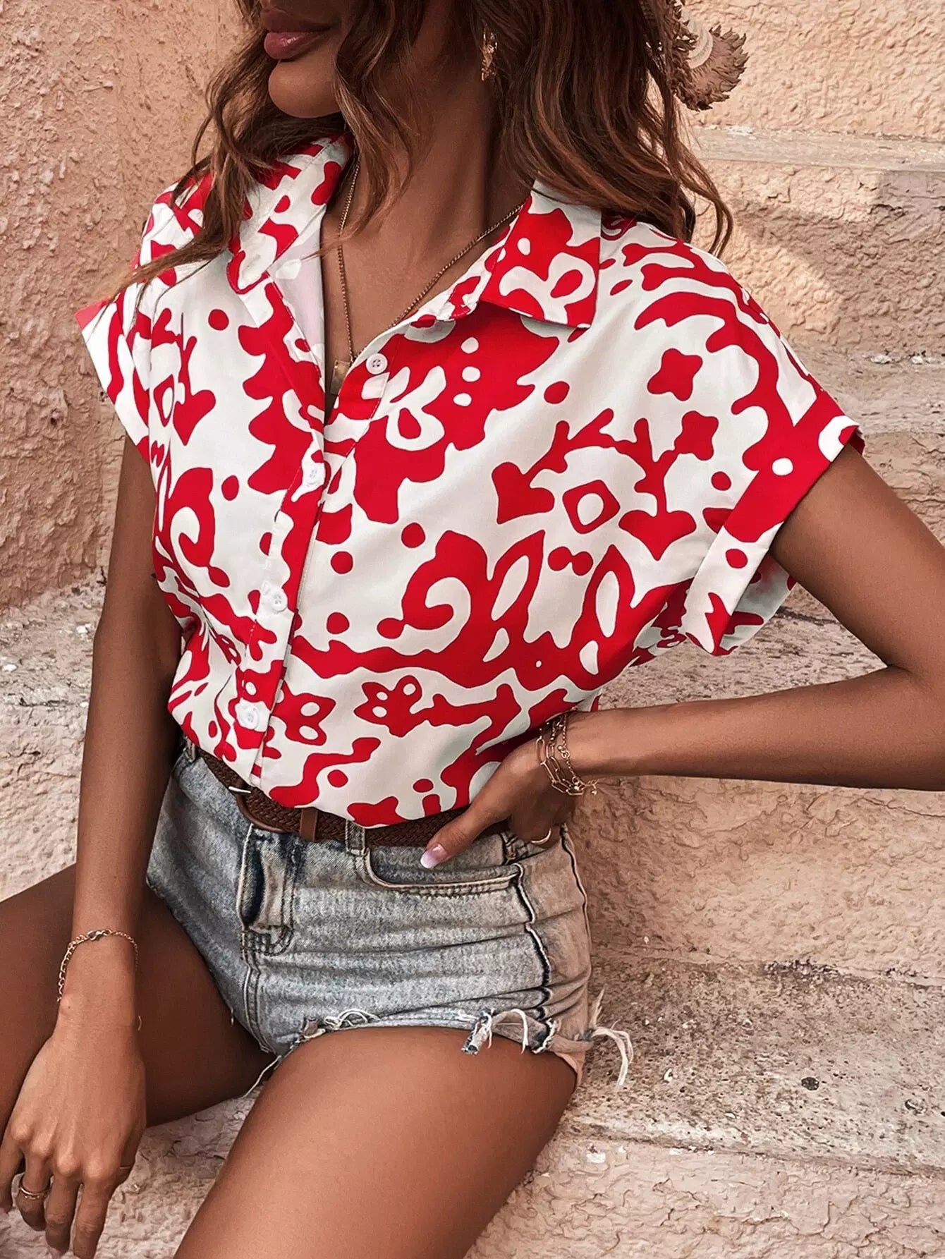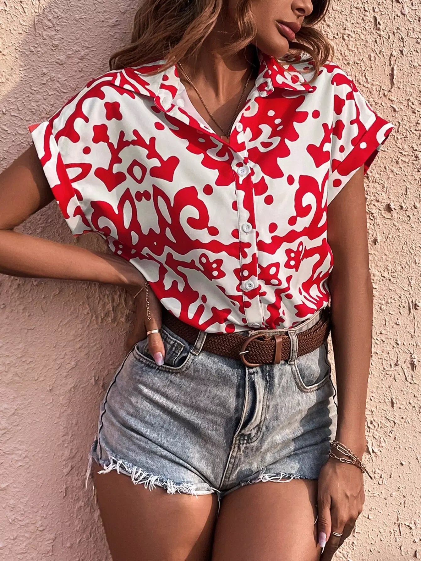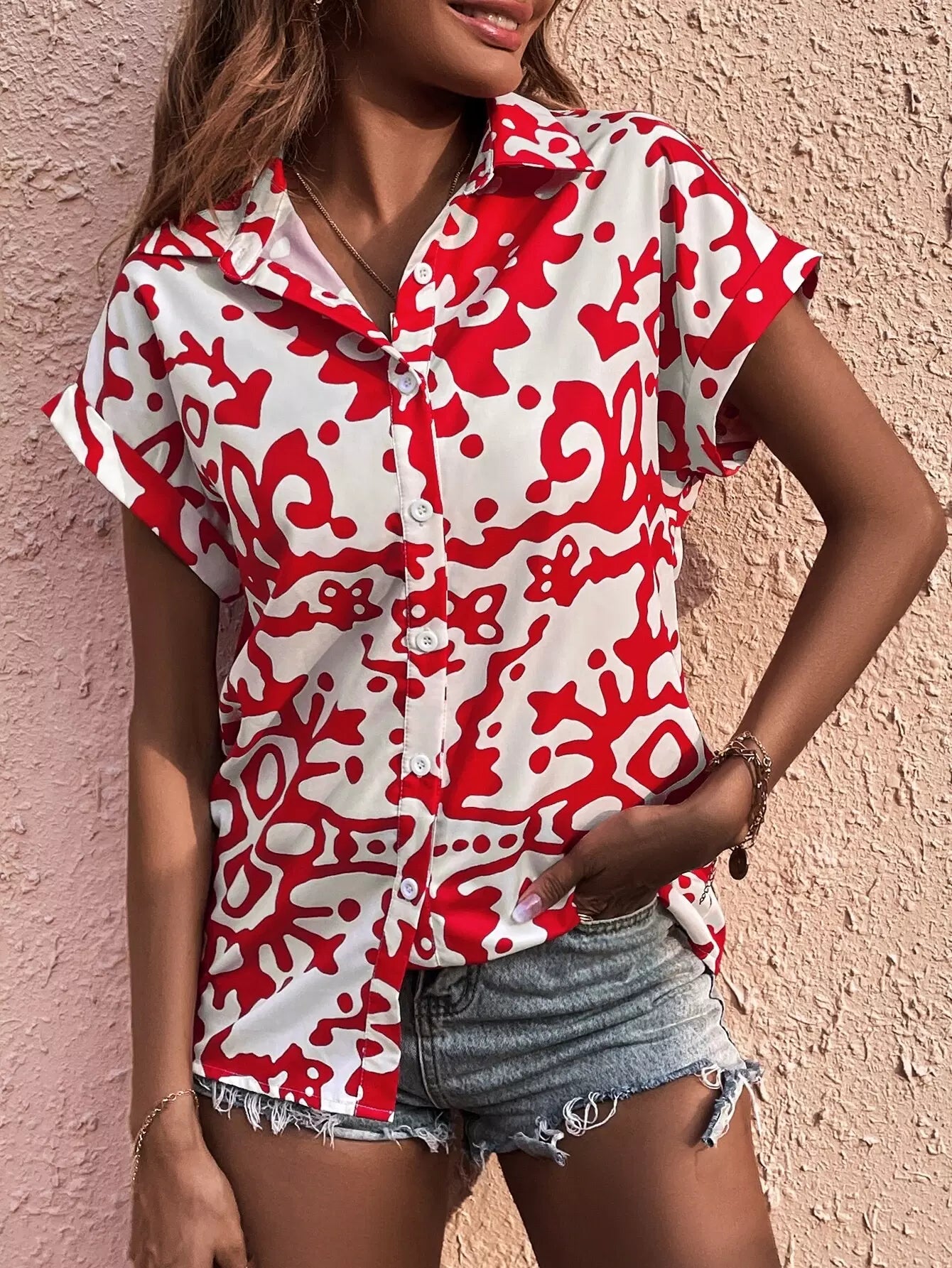 قميص بطباعة كاملة وأكمام مطوية وأزرار