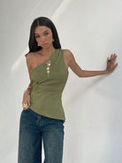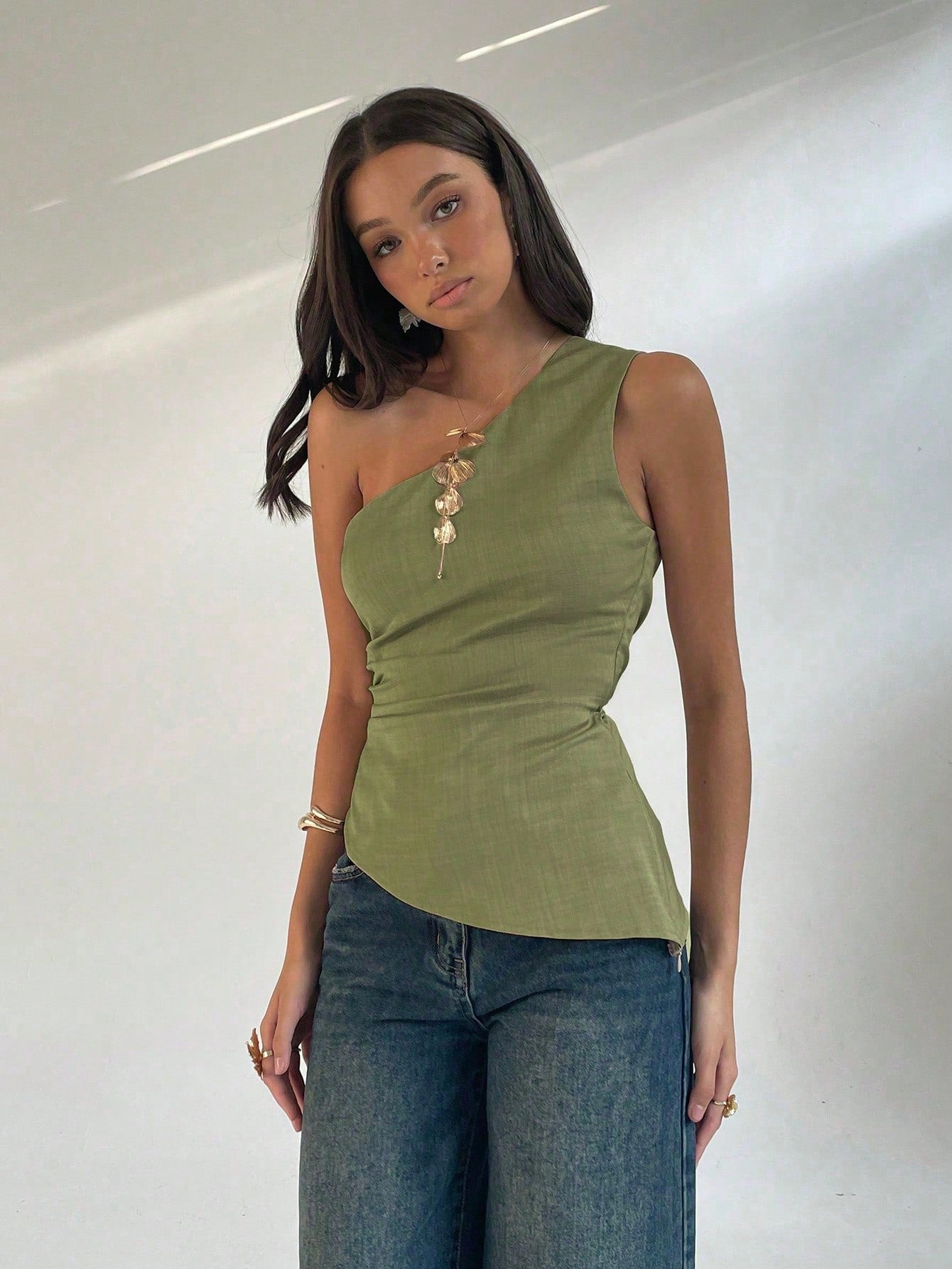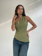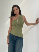 women Aloruh Sleeveless Oblique Collar Side Ruched Commuting Fashionable Women Blouse