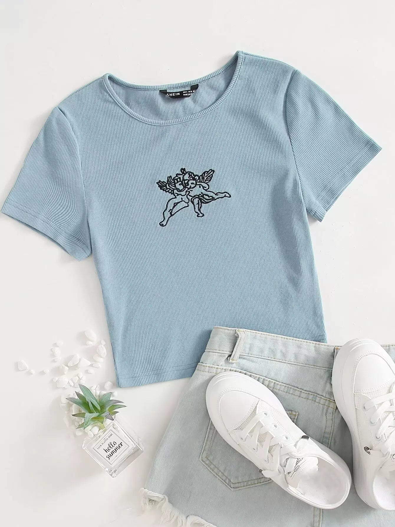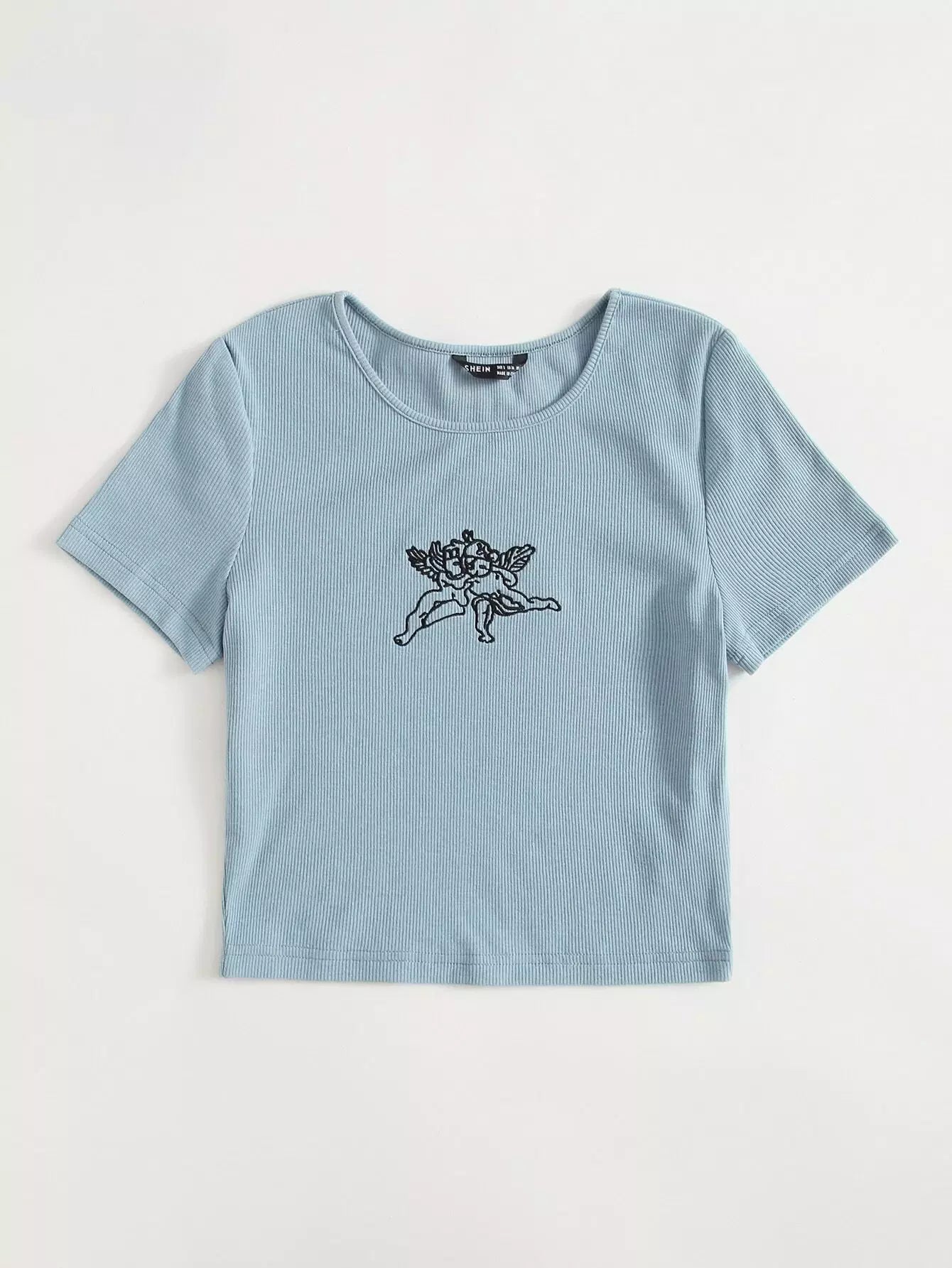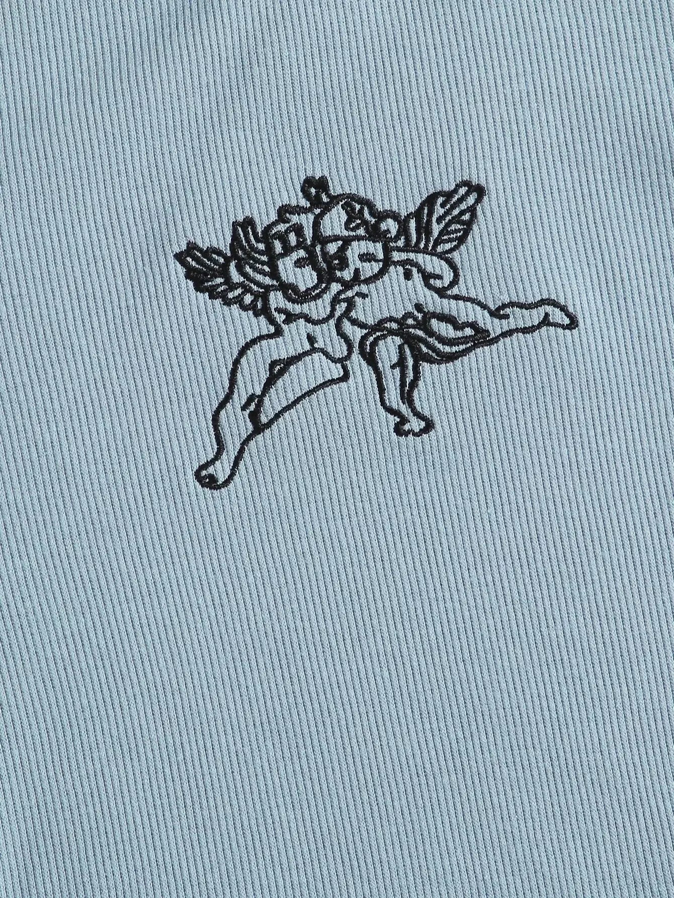 بلوزة قصيرة محبوكة بتطريزات ملاك بتطريزات مضلعة
