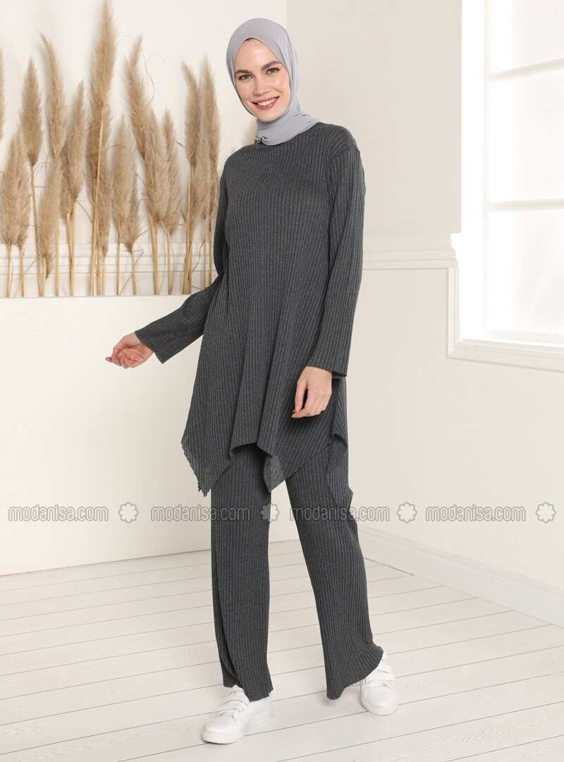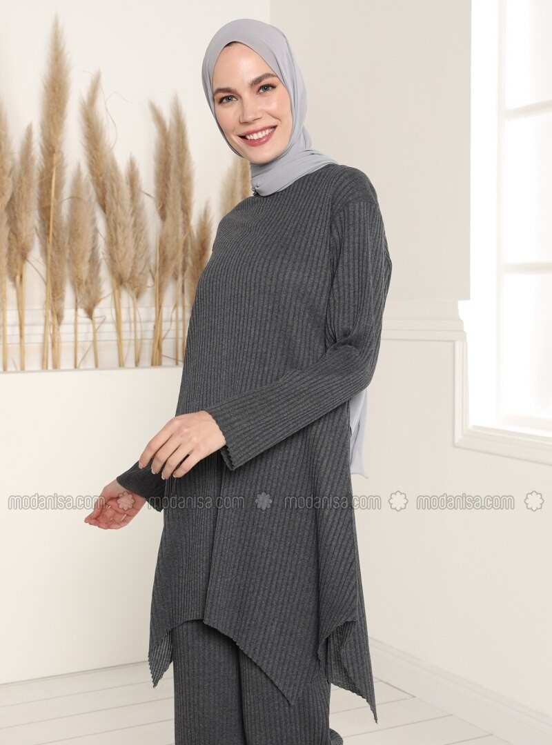 أنثراسيت طاقم الرقبة سترة