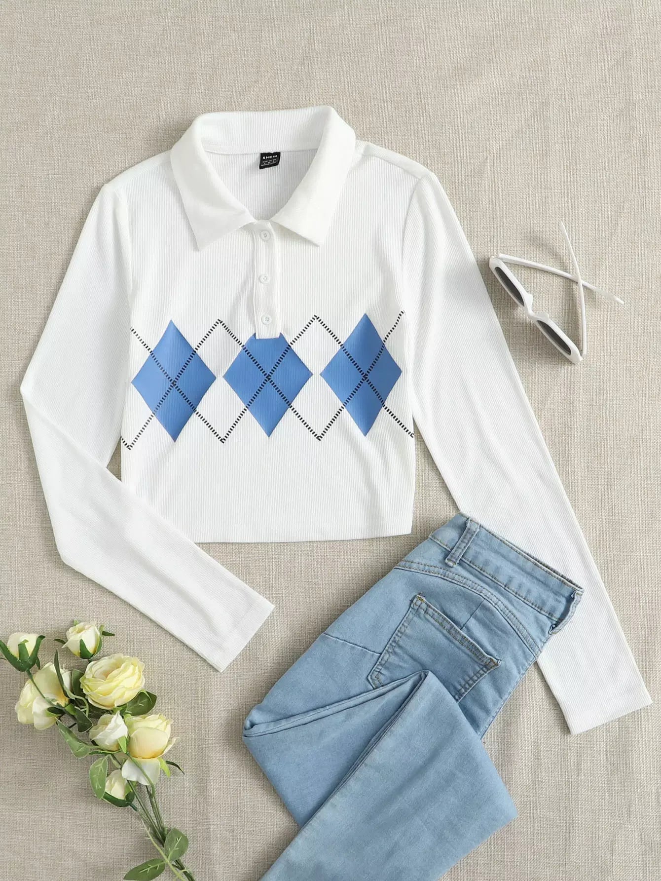تي شيرت بولو برقبة عنق بولو بطبعة أرجيل