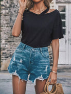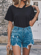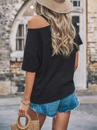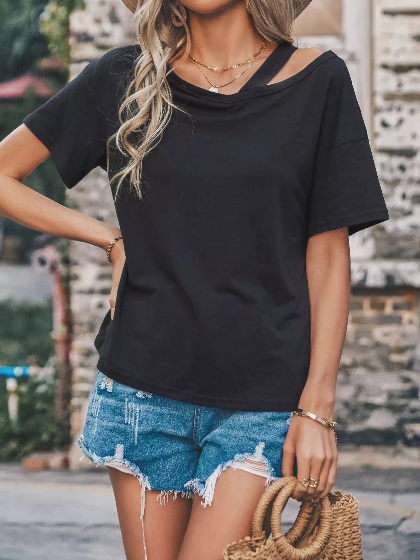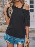 تي شيرت برقبة غير متناسقة منسدلة الكتفين