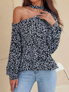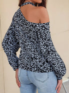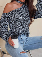بلوزة برقبة غير متناظرة بطبعة جلد النمر