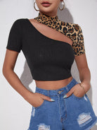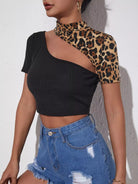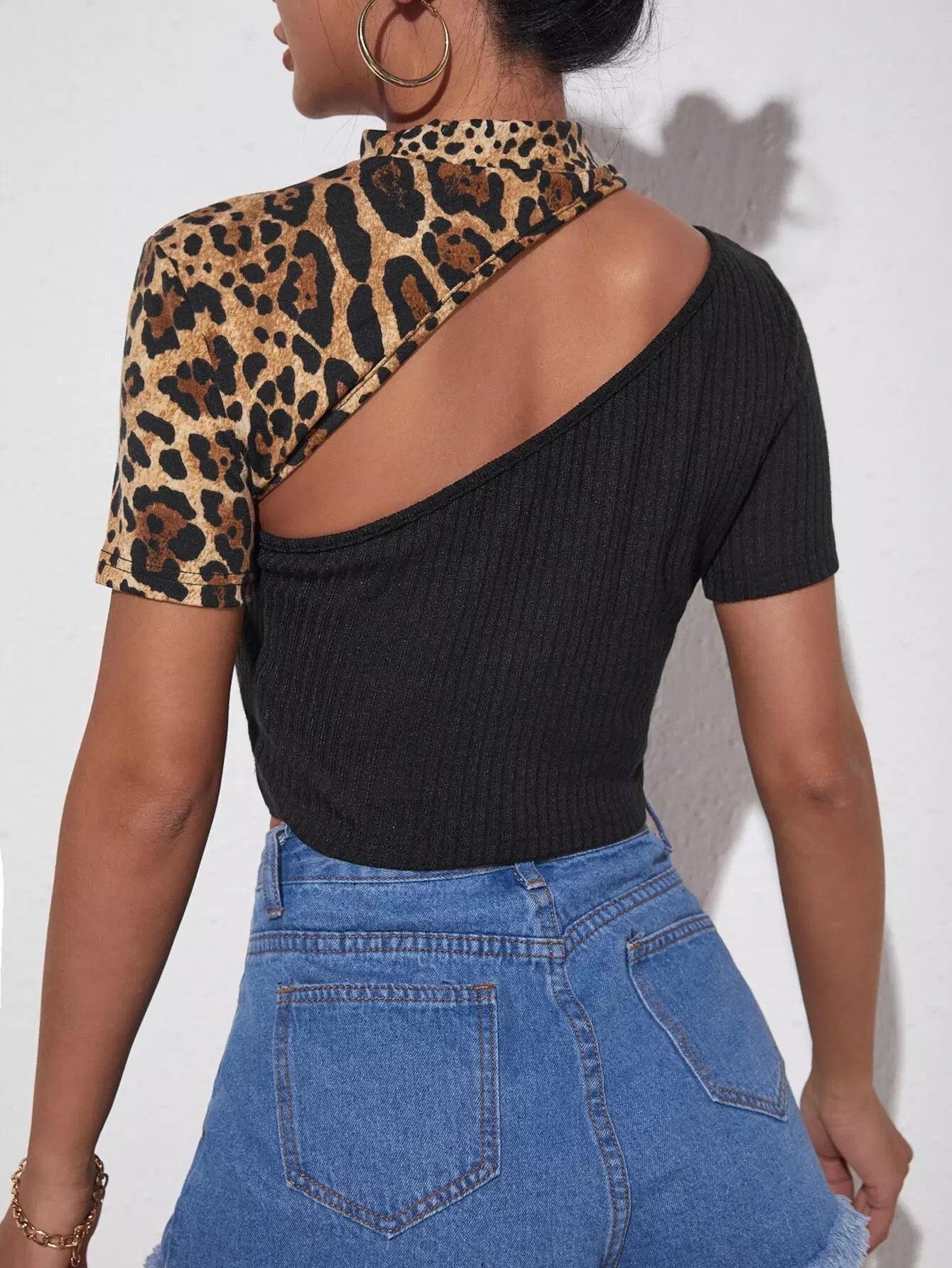 تي شيرت برقبة غير متناظرة على شكل جلد النمر