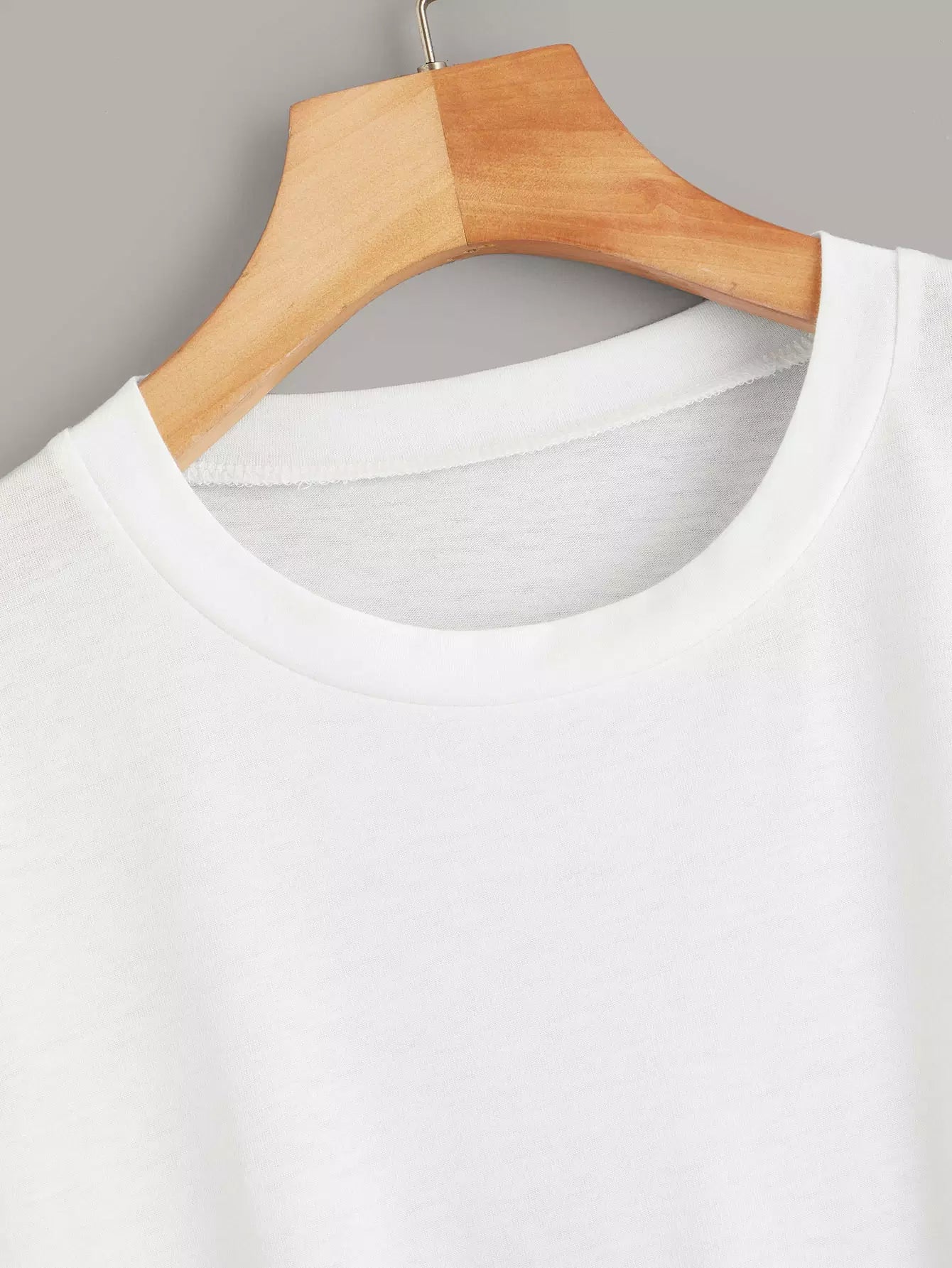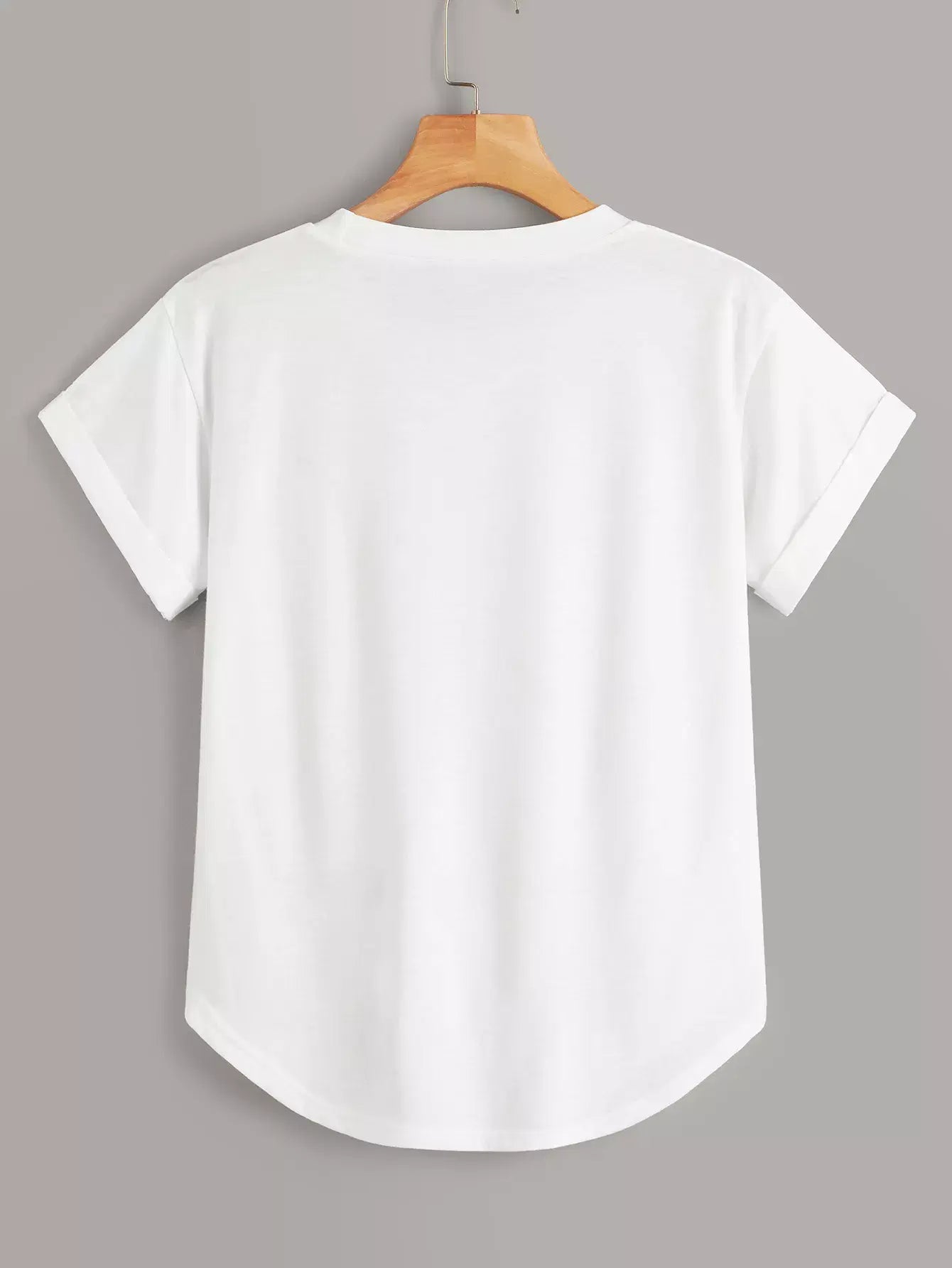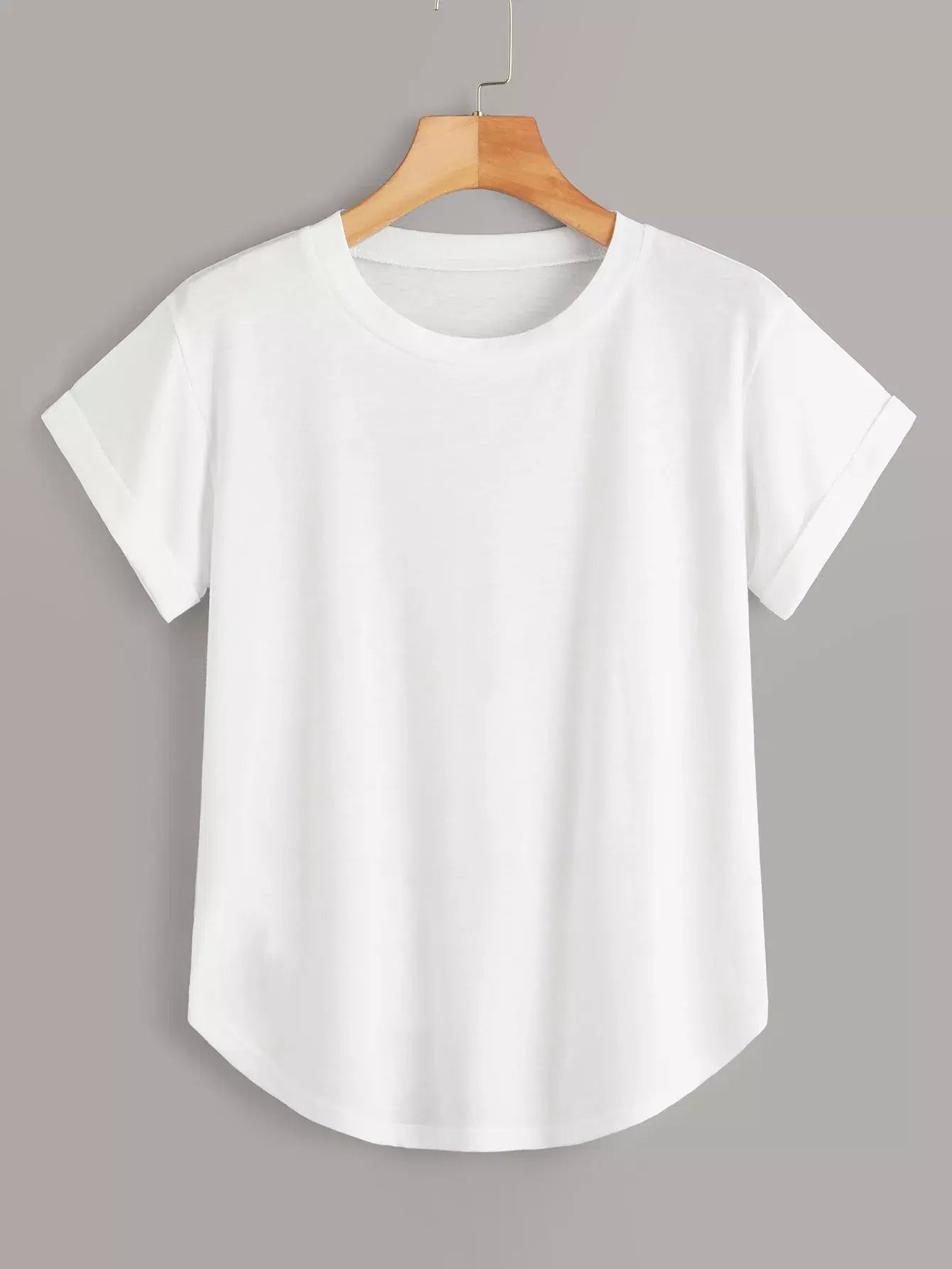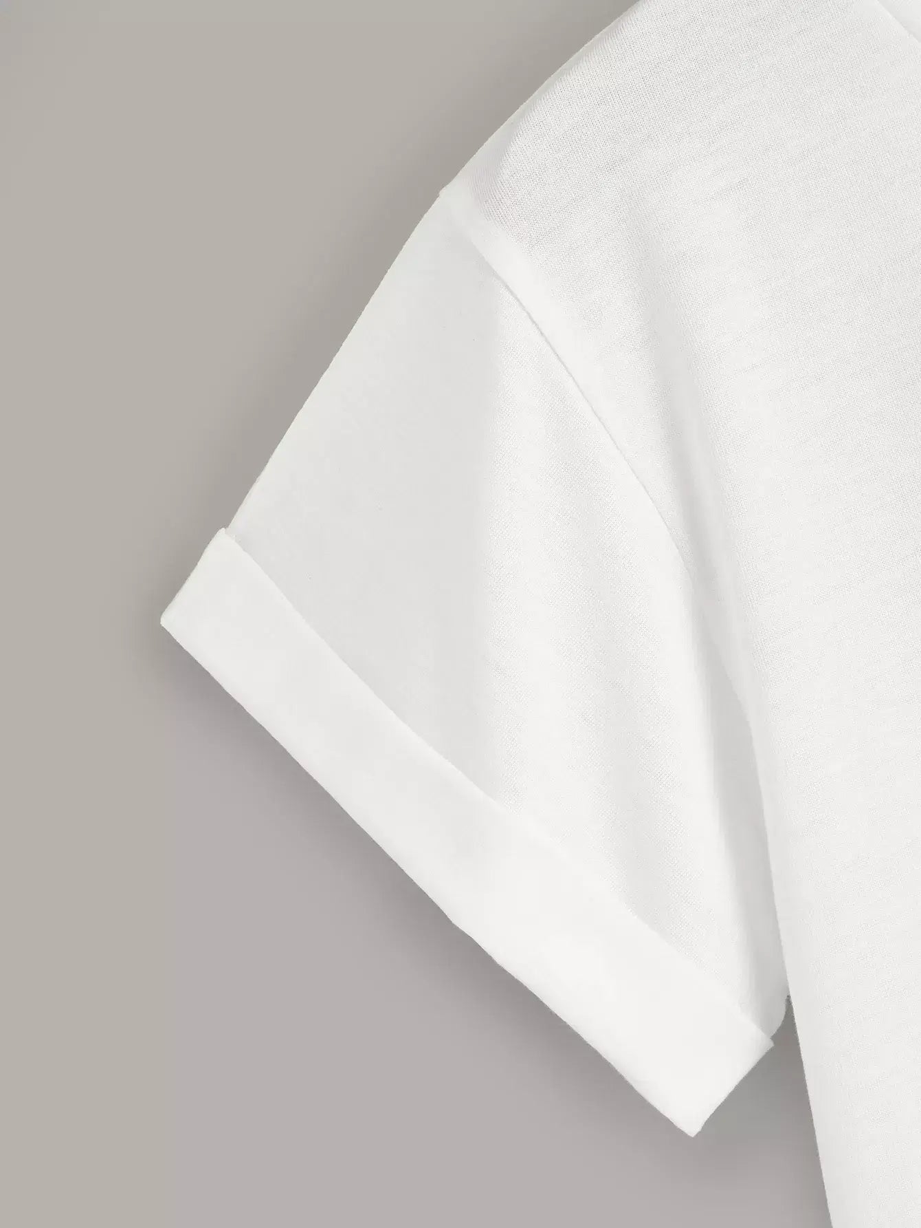 تي شيرت أساسي سادة بفتحة أكمام سادة ملفوفة منحنية