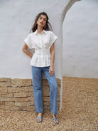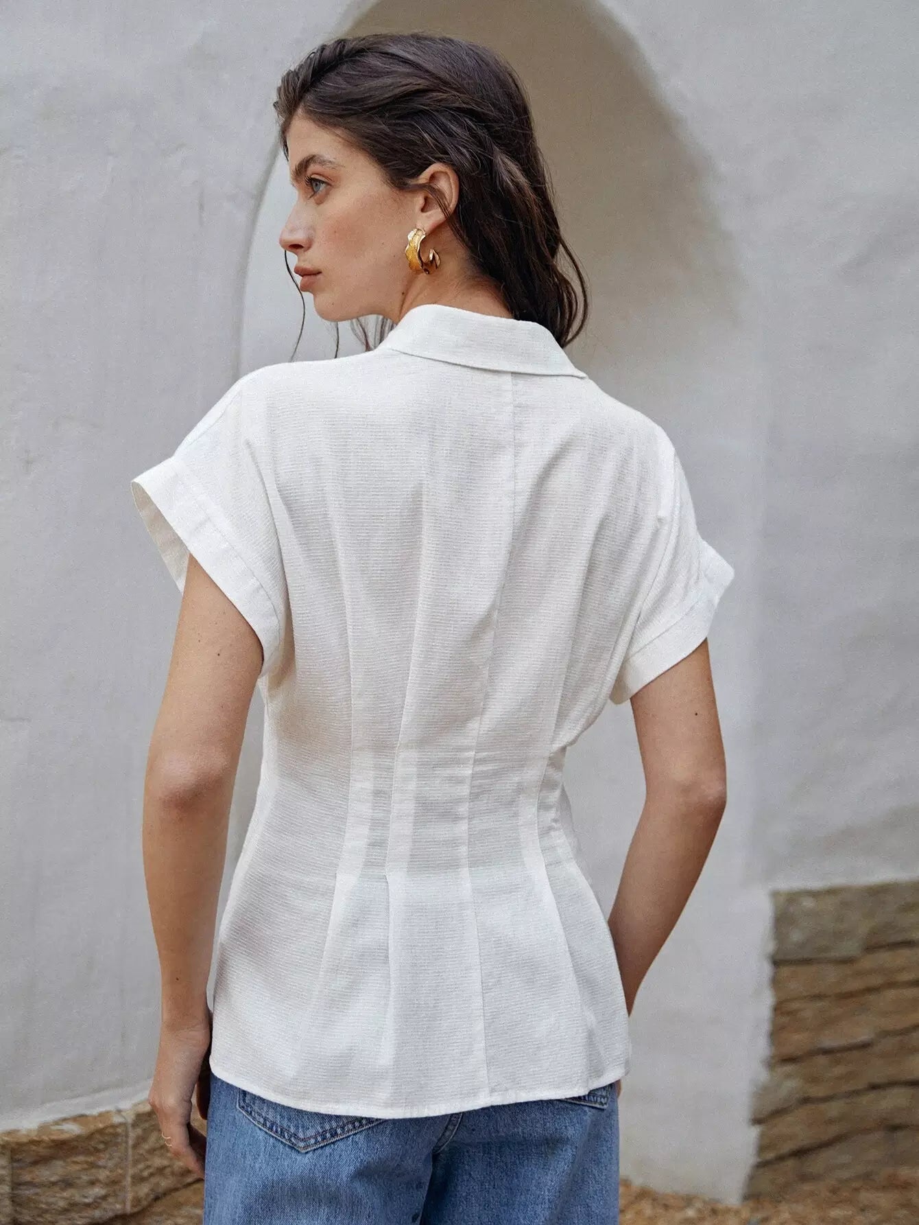 قميص بأكمام بأربطة أكمام منسدلة من الخلف