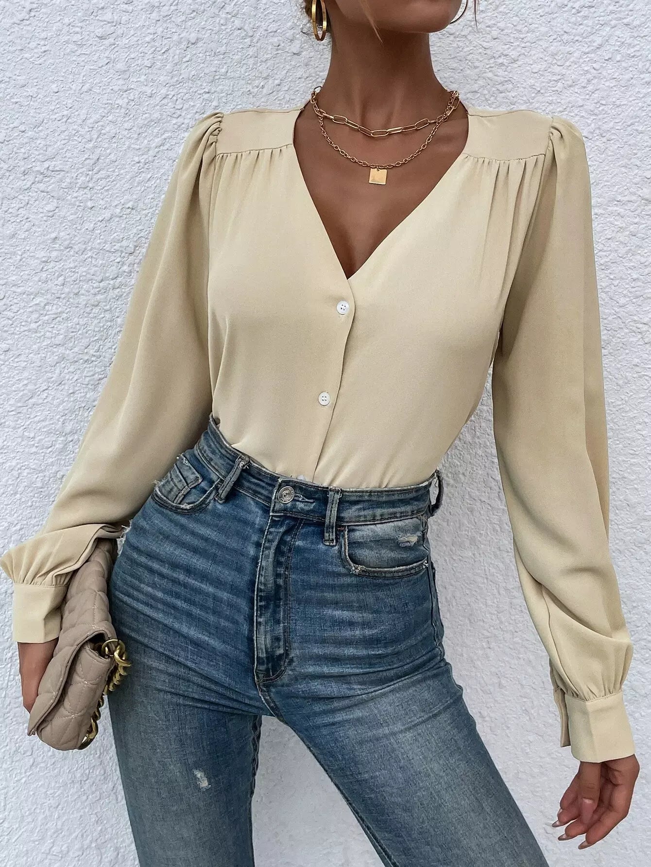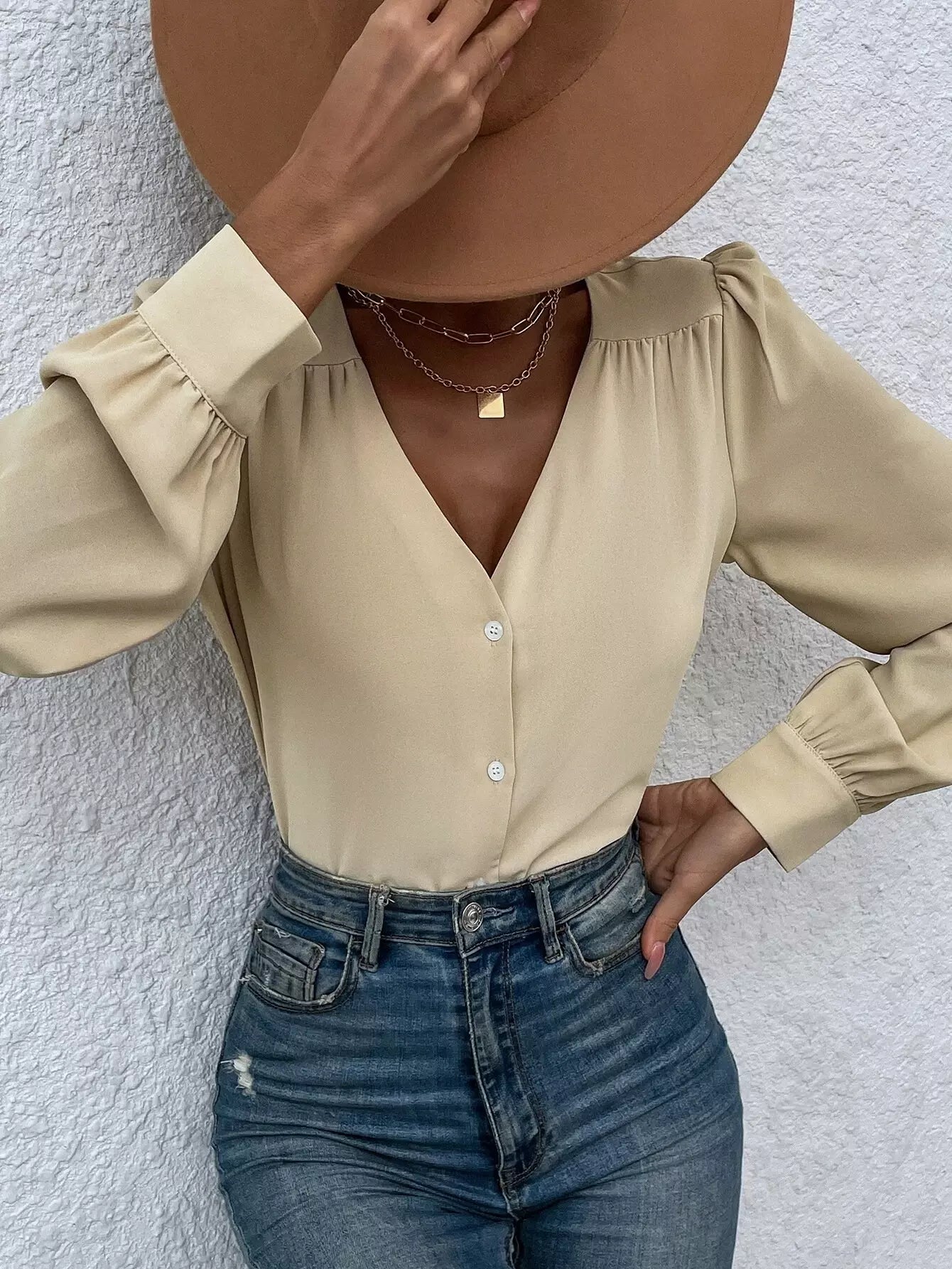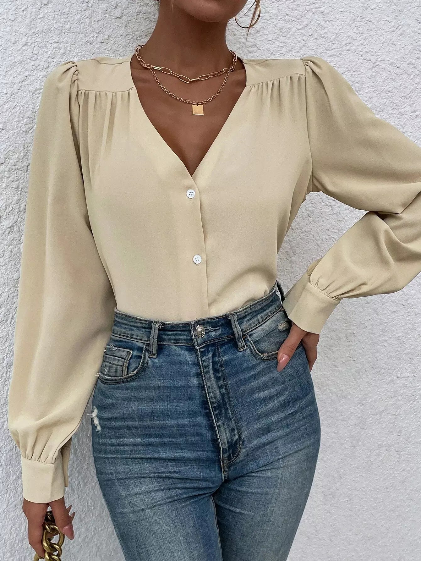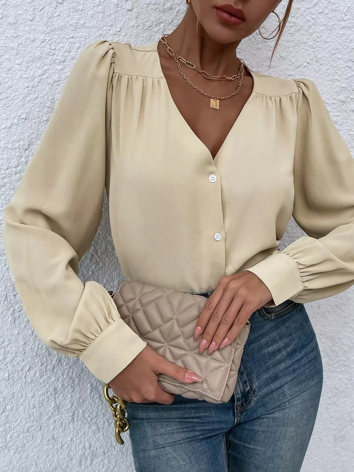 بلوزة بأكمام بلوسون مزينة بتفاصيل مرنة