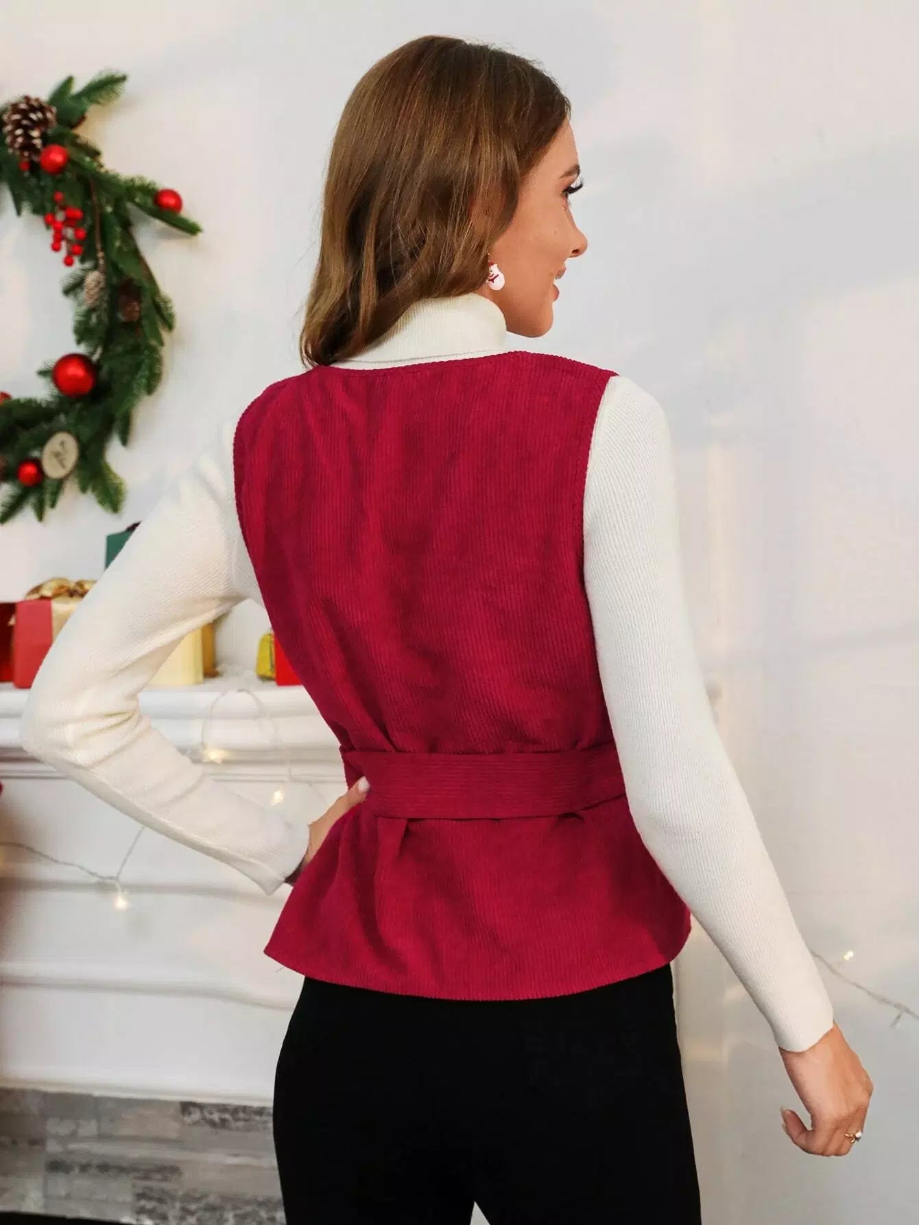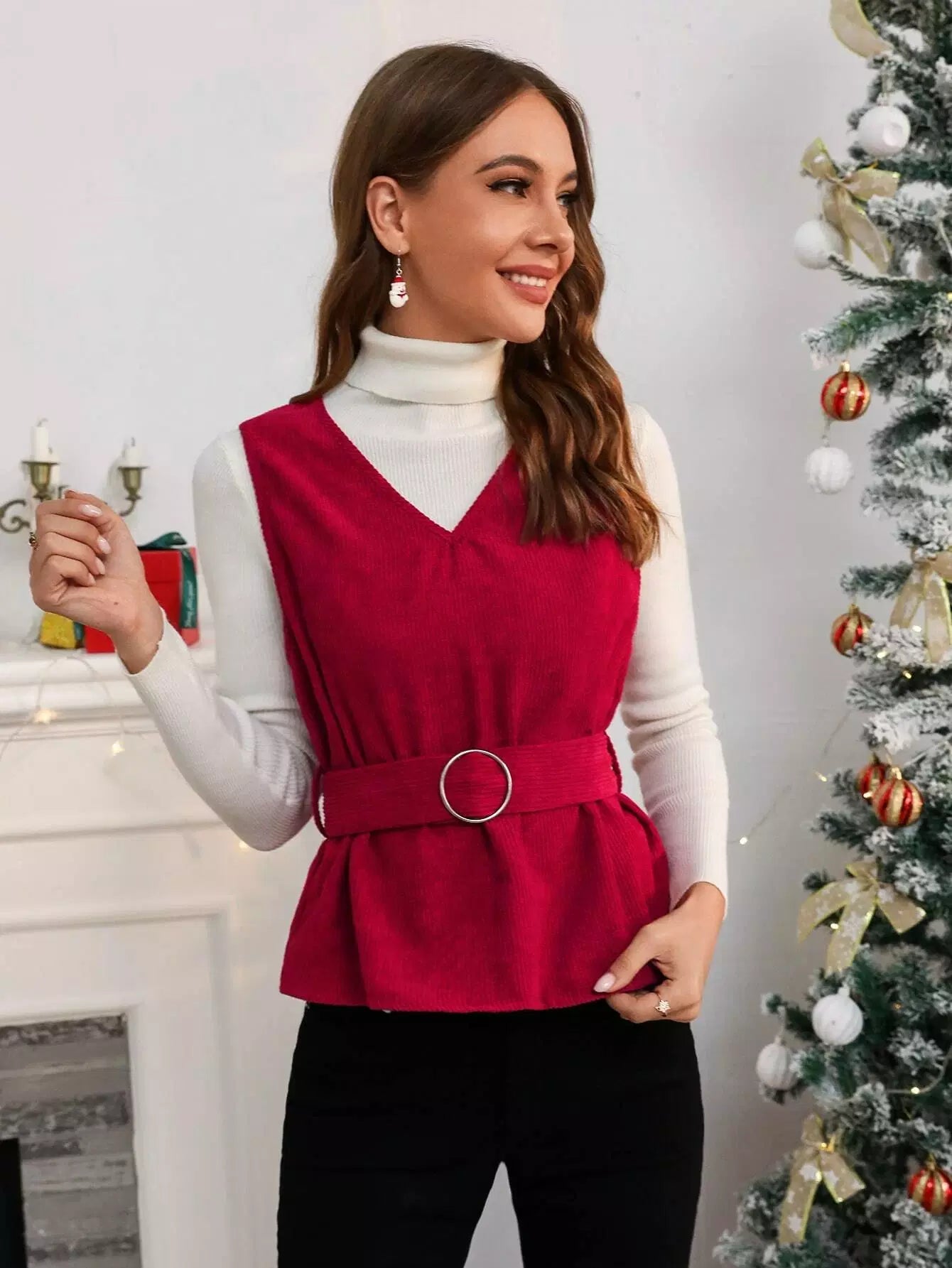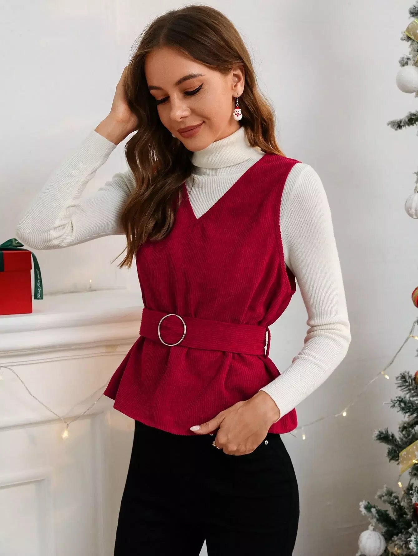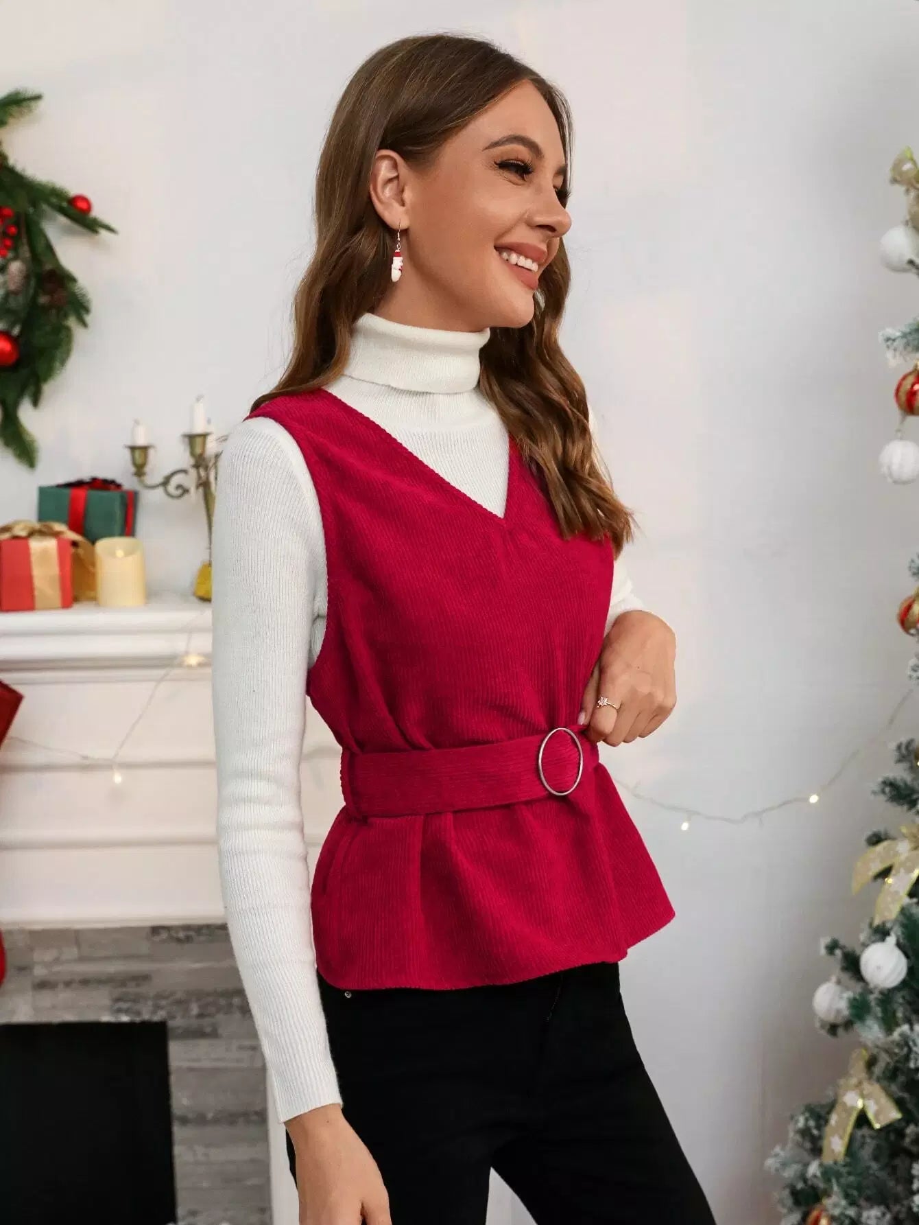 للنساء - بلوزة سروال قصير بدون أكمام وحزام بإبزيم بدون قميص