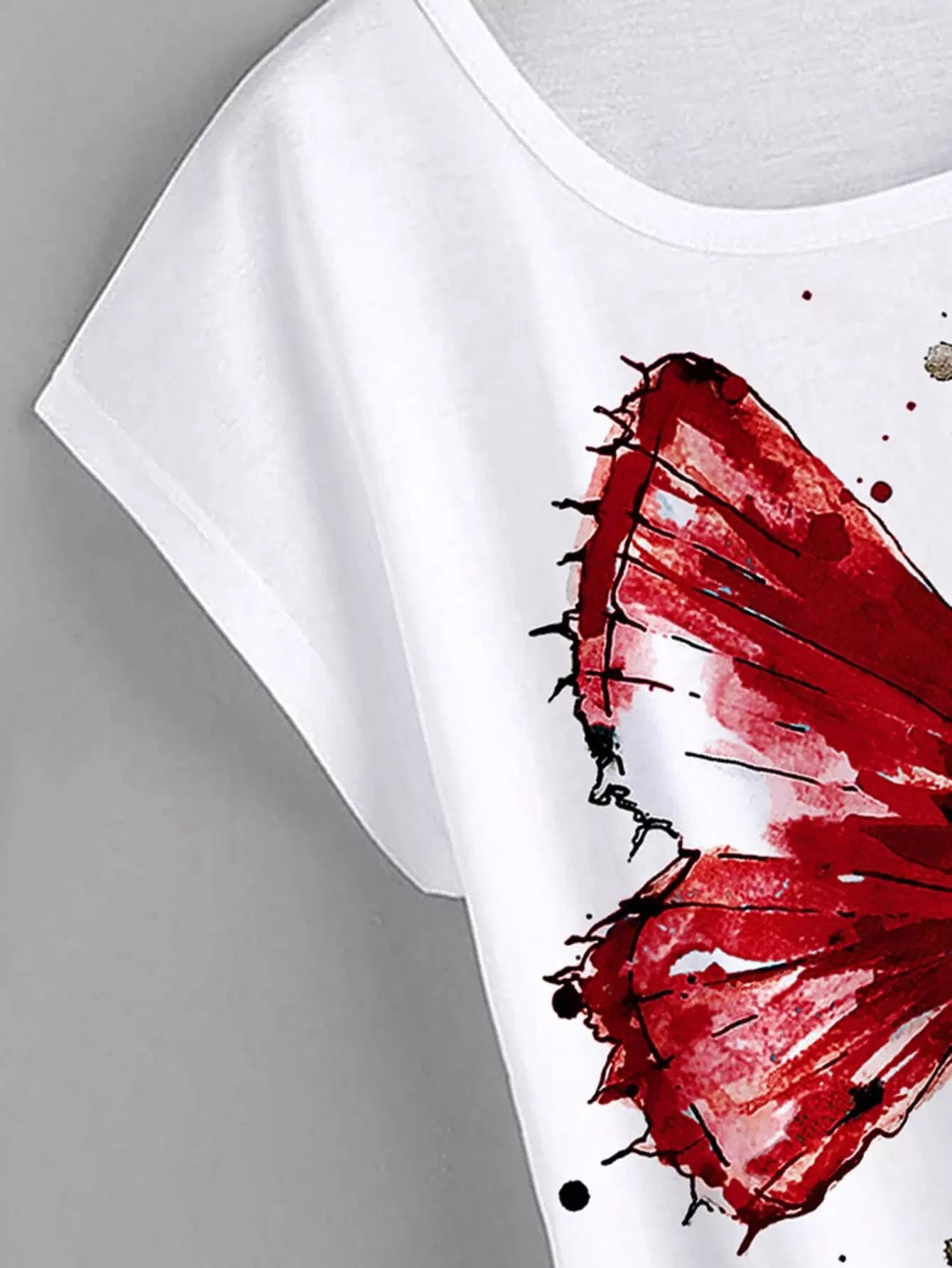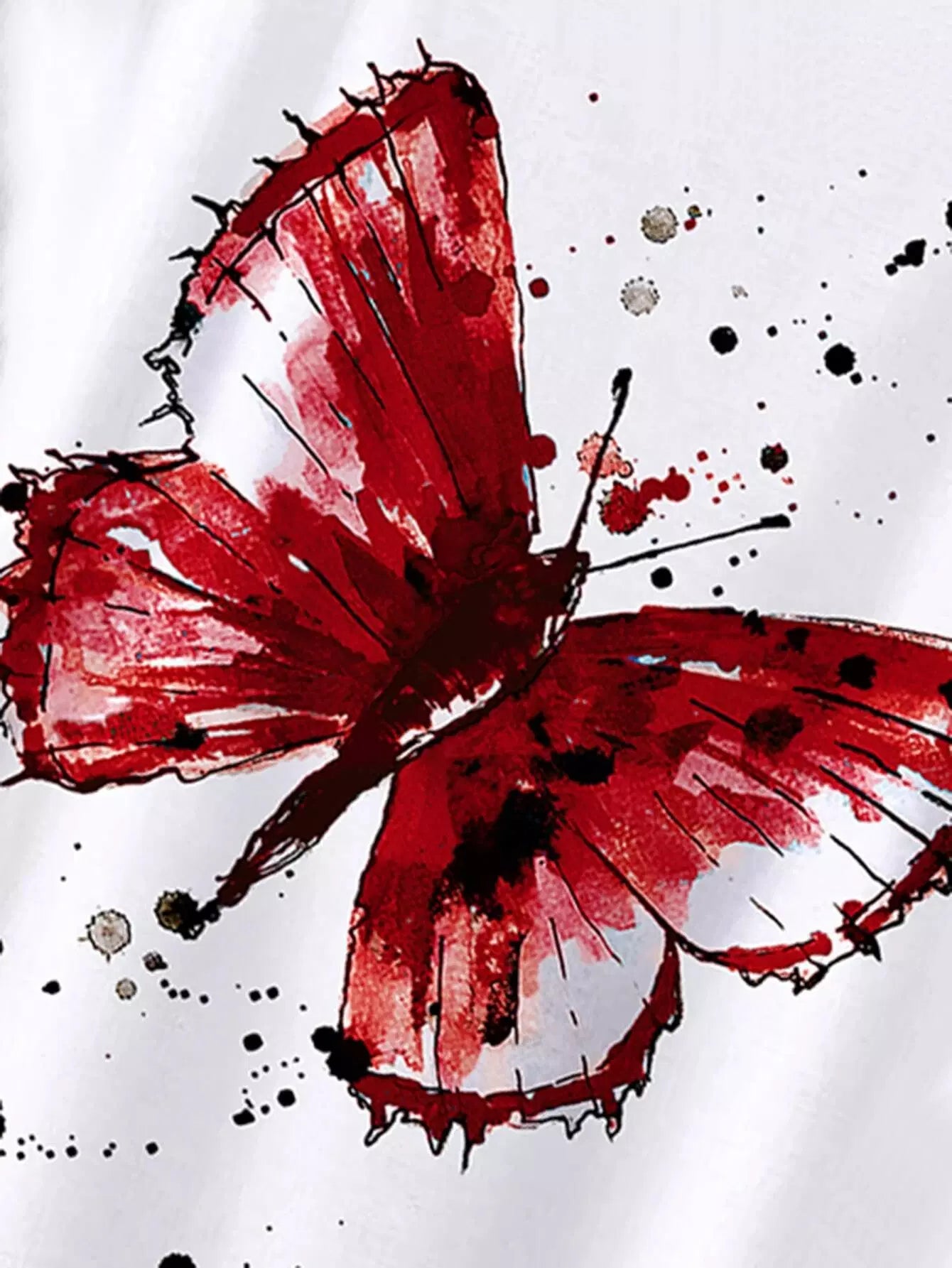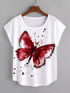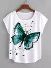 للنساء - تي شيرت بأكمام جناح الخفاش وطبعة فراشة