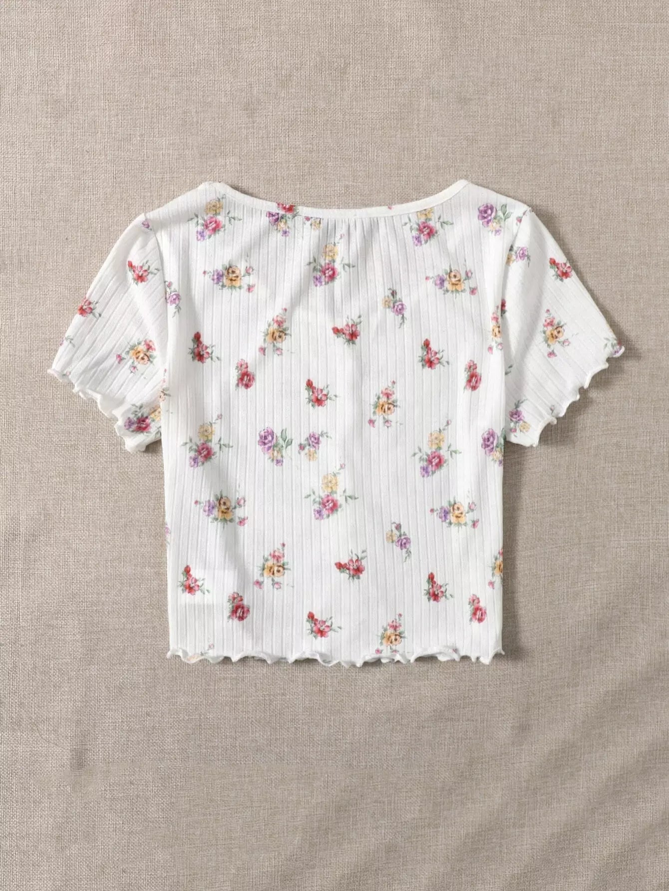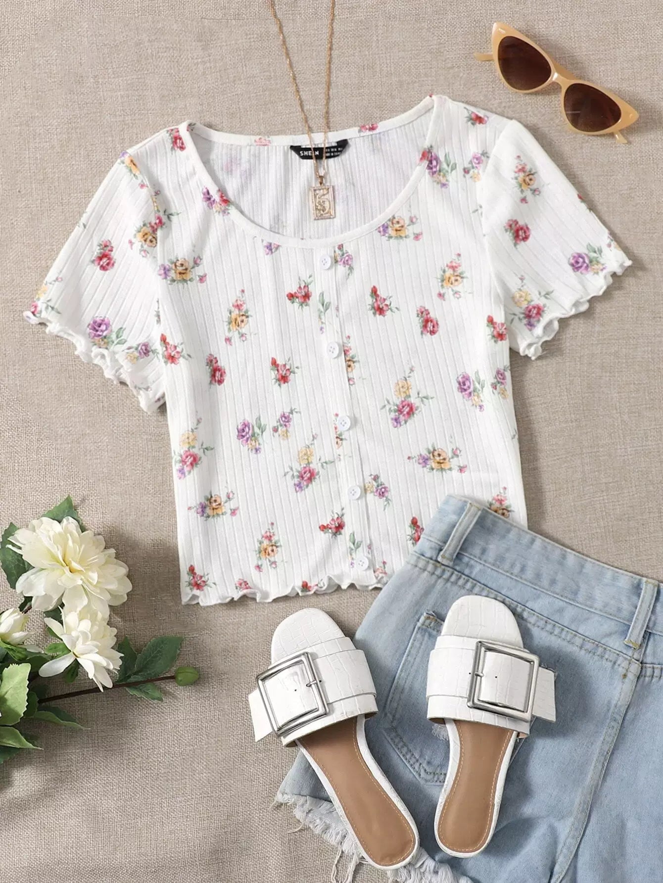 تي شيرت بأزرار أمامية بأزرار من الأمام بحافة الخس