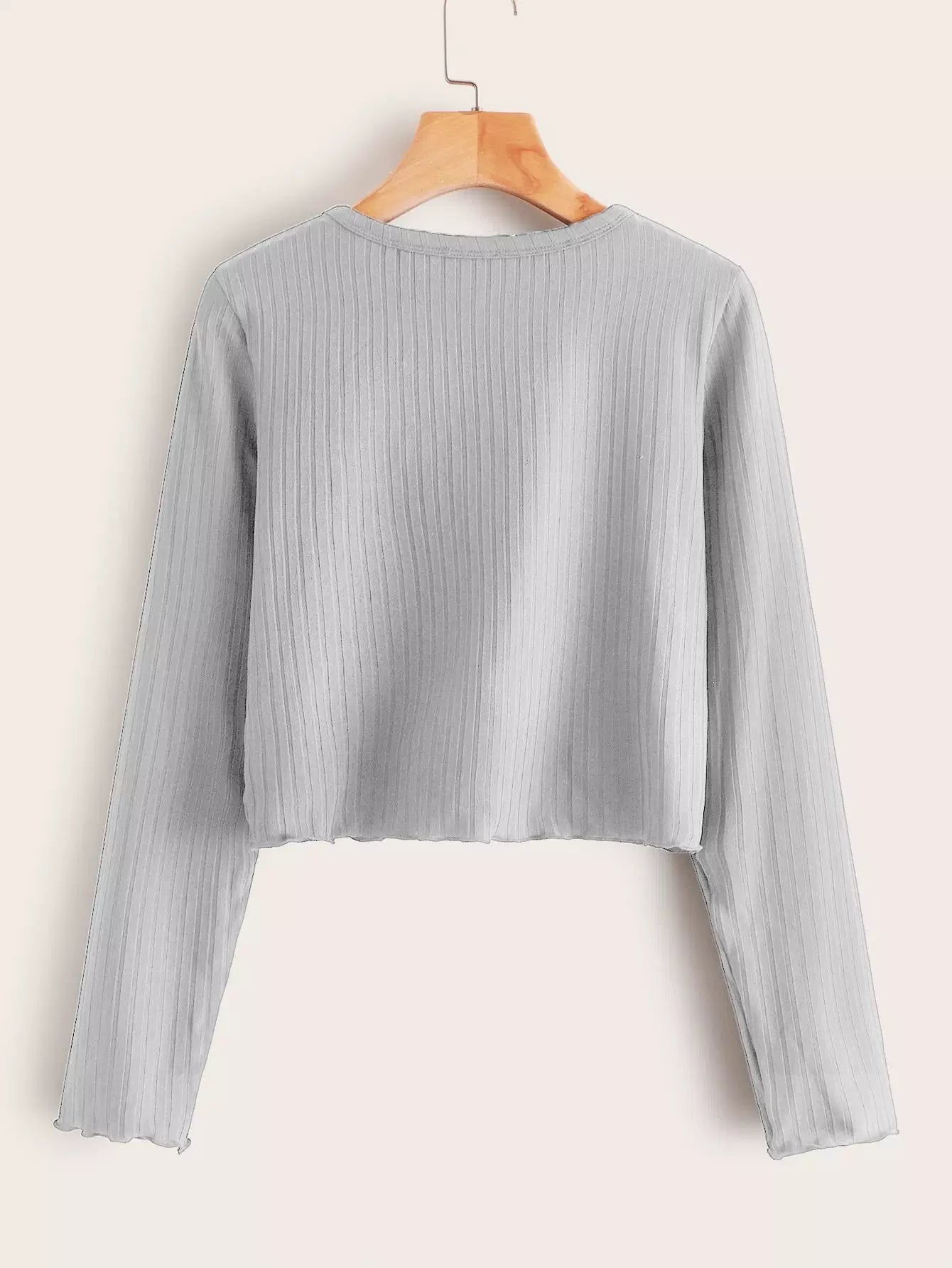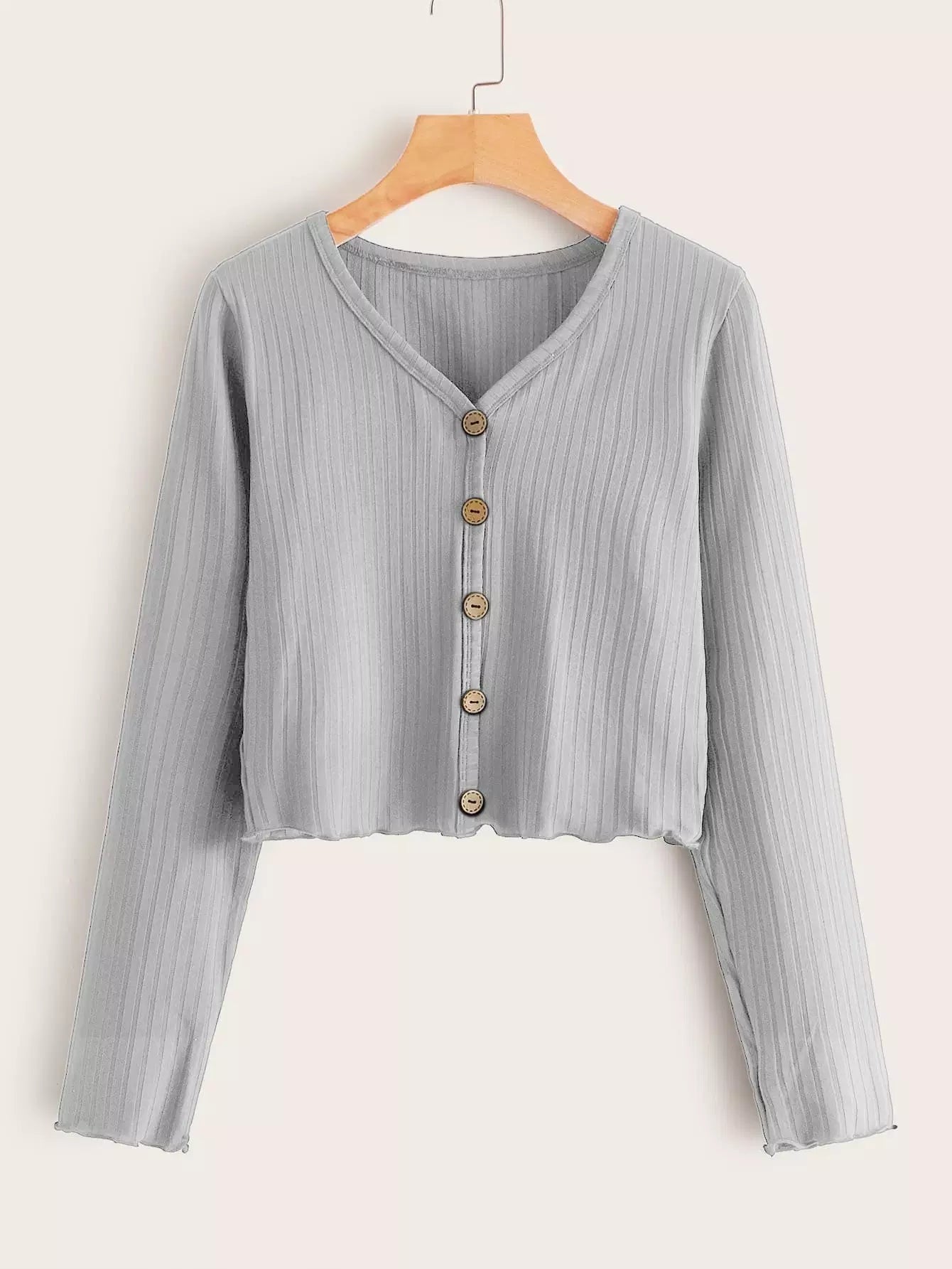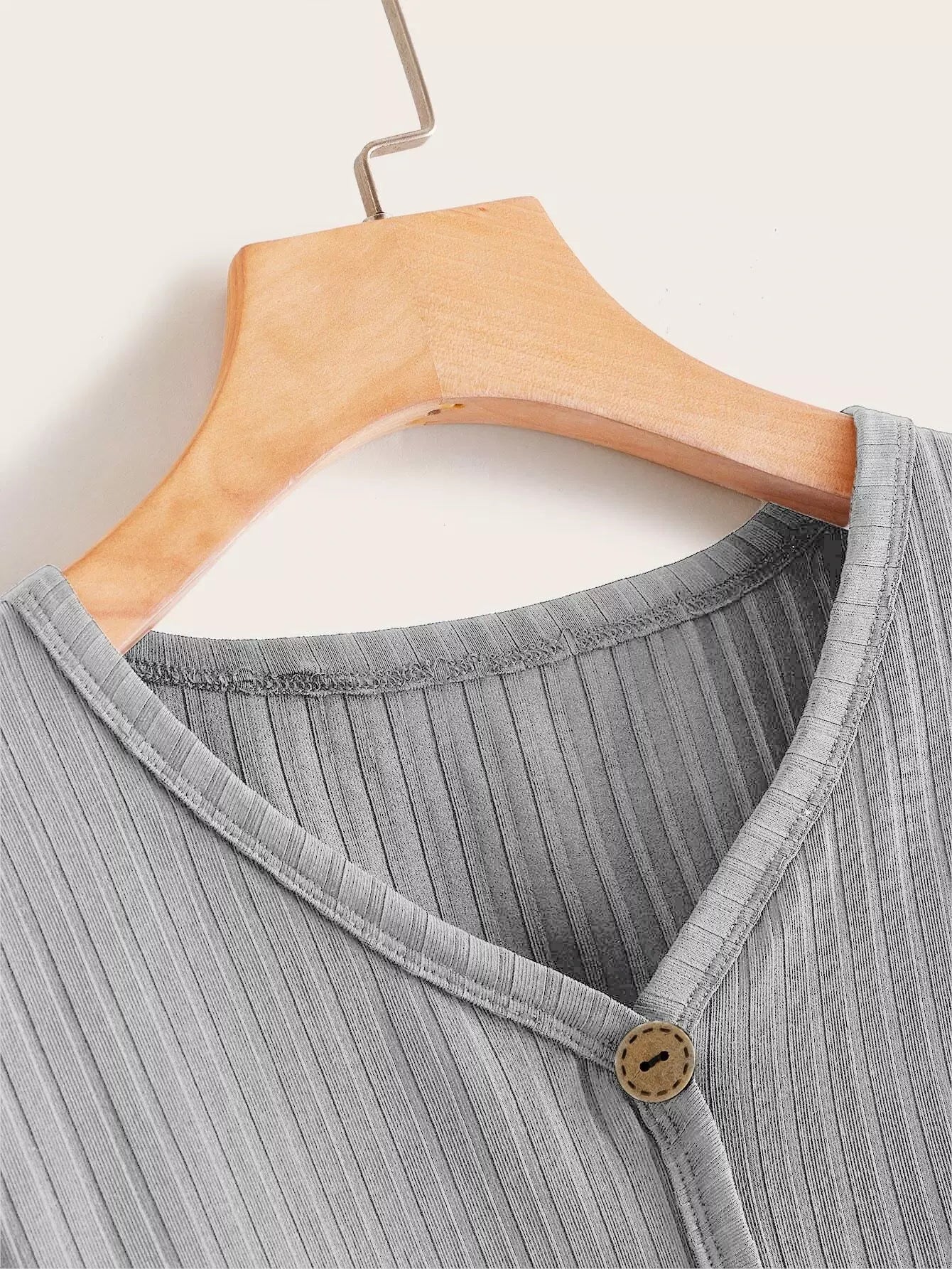 تي شيرت قصير محبوك بأزرار أمامية مضلعة ومحبوكة بأزرار