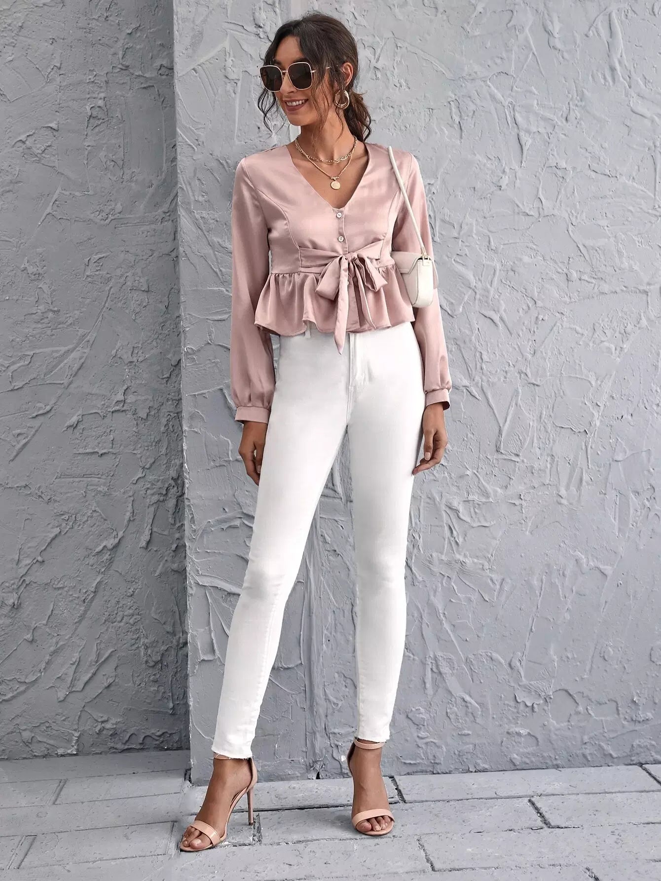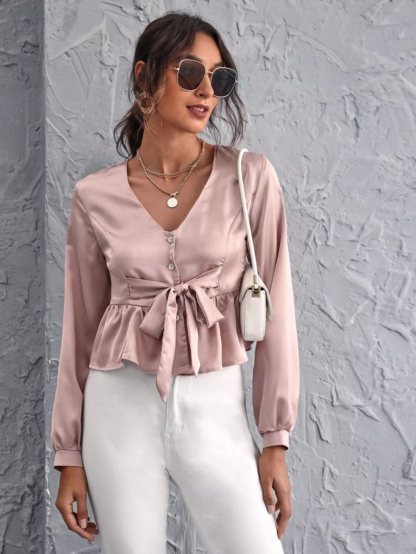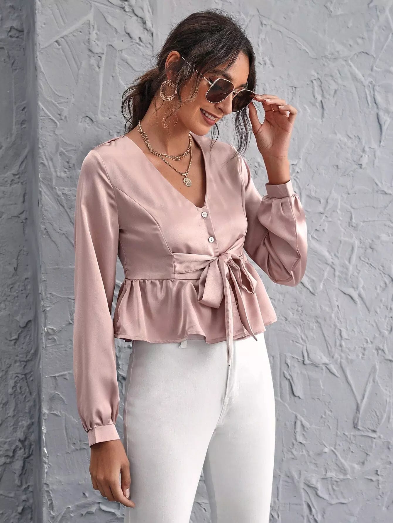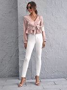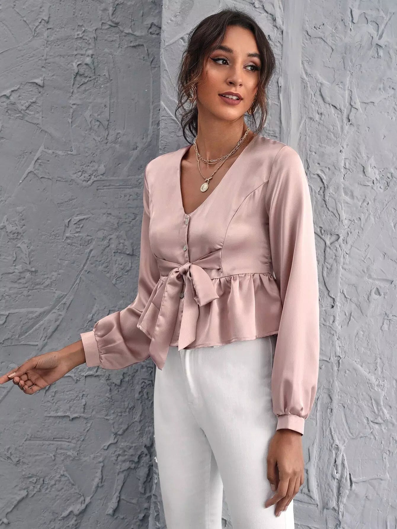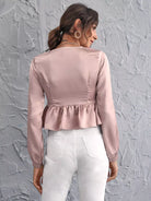 بلوزة ببلوم برباط أمامي وأزرار