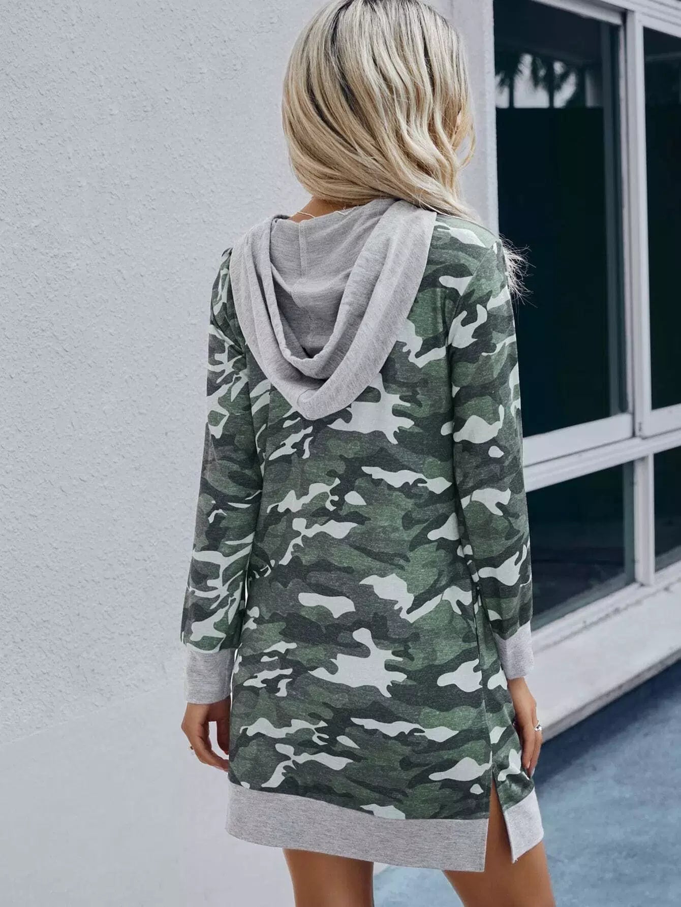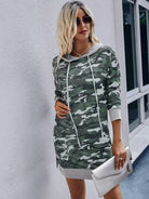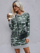 فستان سويت شيرت مطبوع بطبعة كامو بأربطة رباط